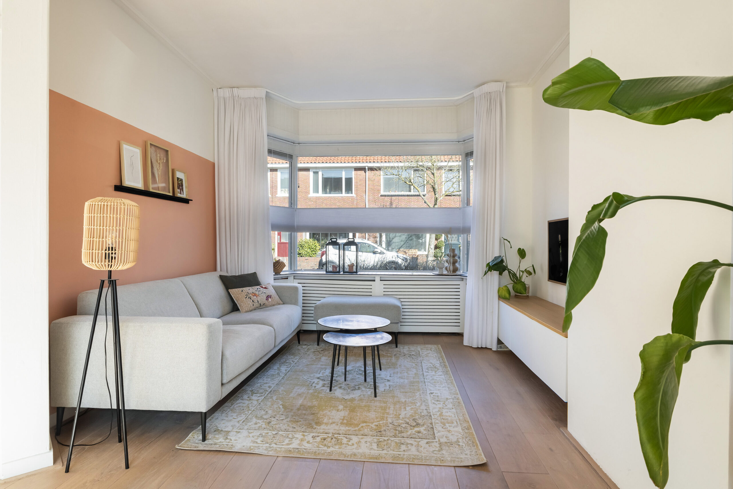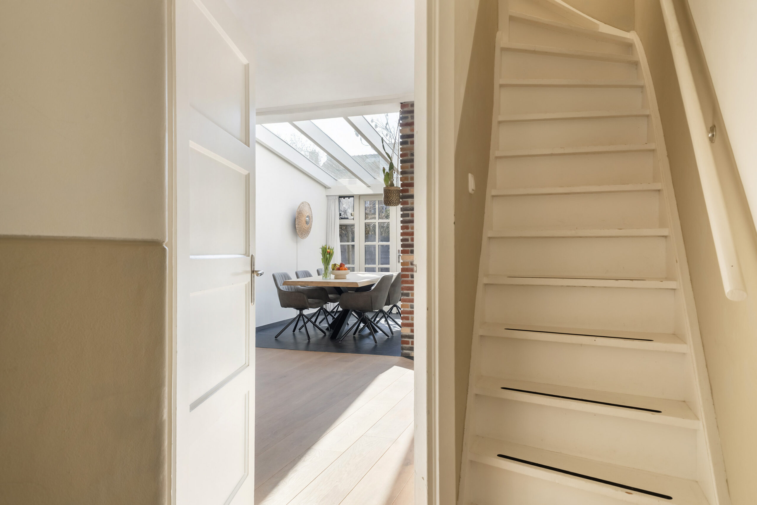 De woning beschikt over een lichte woonkamer, voorzien van een mooie eikenhouten vloer en met aangebouwde serre met open keuken. Dankzij de openslaande deuren naar de zonnige achtertuin op het zuidwesten en de grote raampartijen profiteert deze ruimte van een prettige lichtinval. De grote ramen en het vele daglicht dragen bovendien bij aan een lagere stookbehoefte. Op de begane grond bevindt zich daarnaast een moderne badkamer uit 2020.