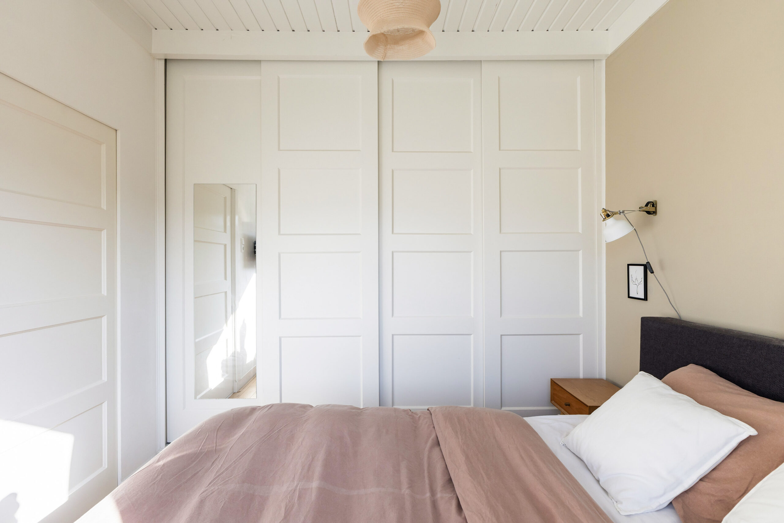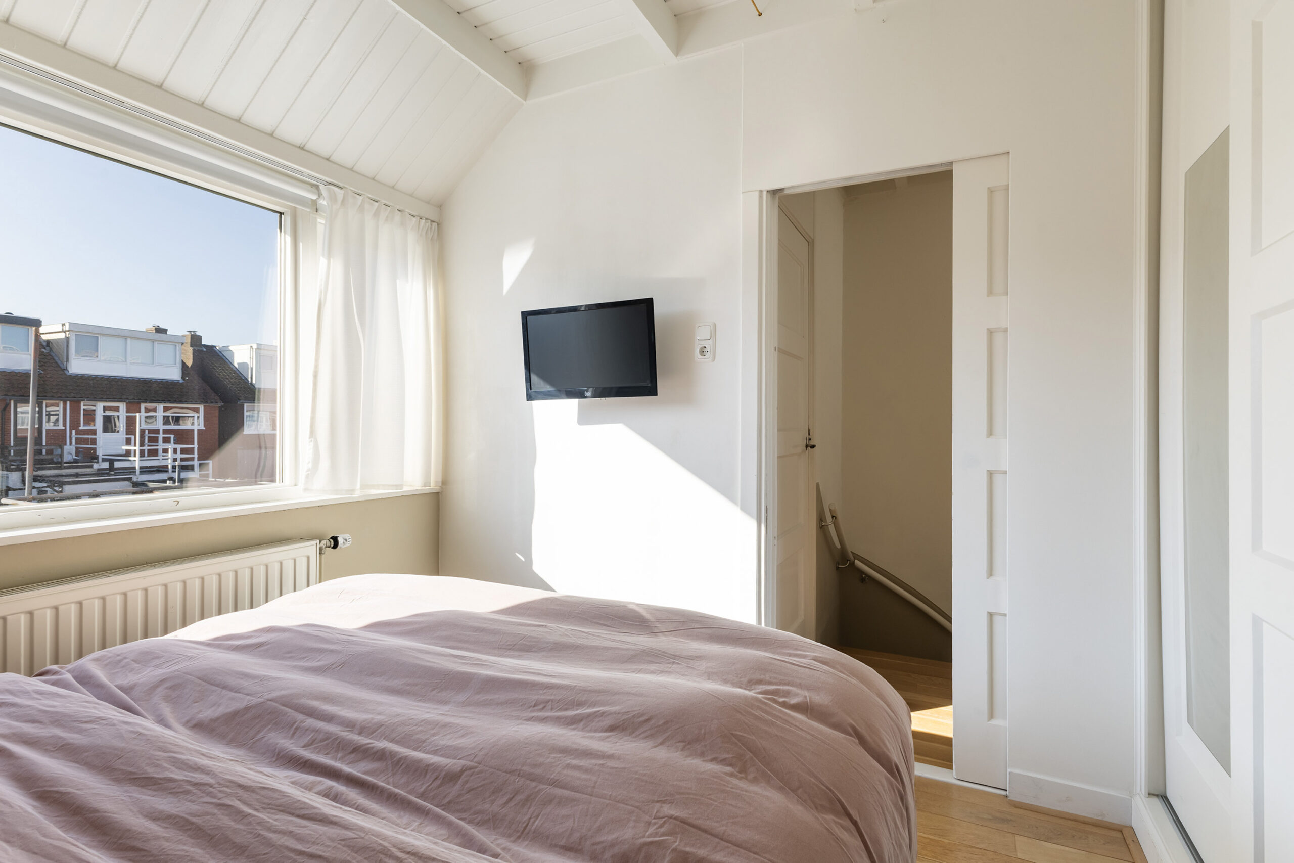 In totaal zijn er vier slaapkamers; drie op de eerste verdieping en een ruime zolder(slaap)kamer op de tweede verdieping. De slaapkamers op de eerste verdieping zijn voorzien van massief houten vloeren, balkenplafonds en authentieke paneeldeuren.