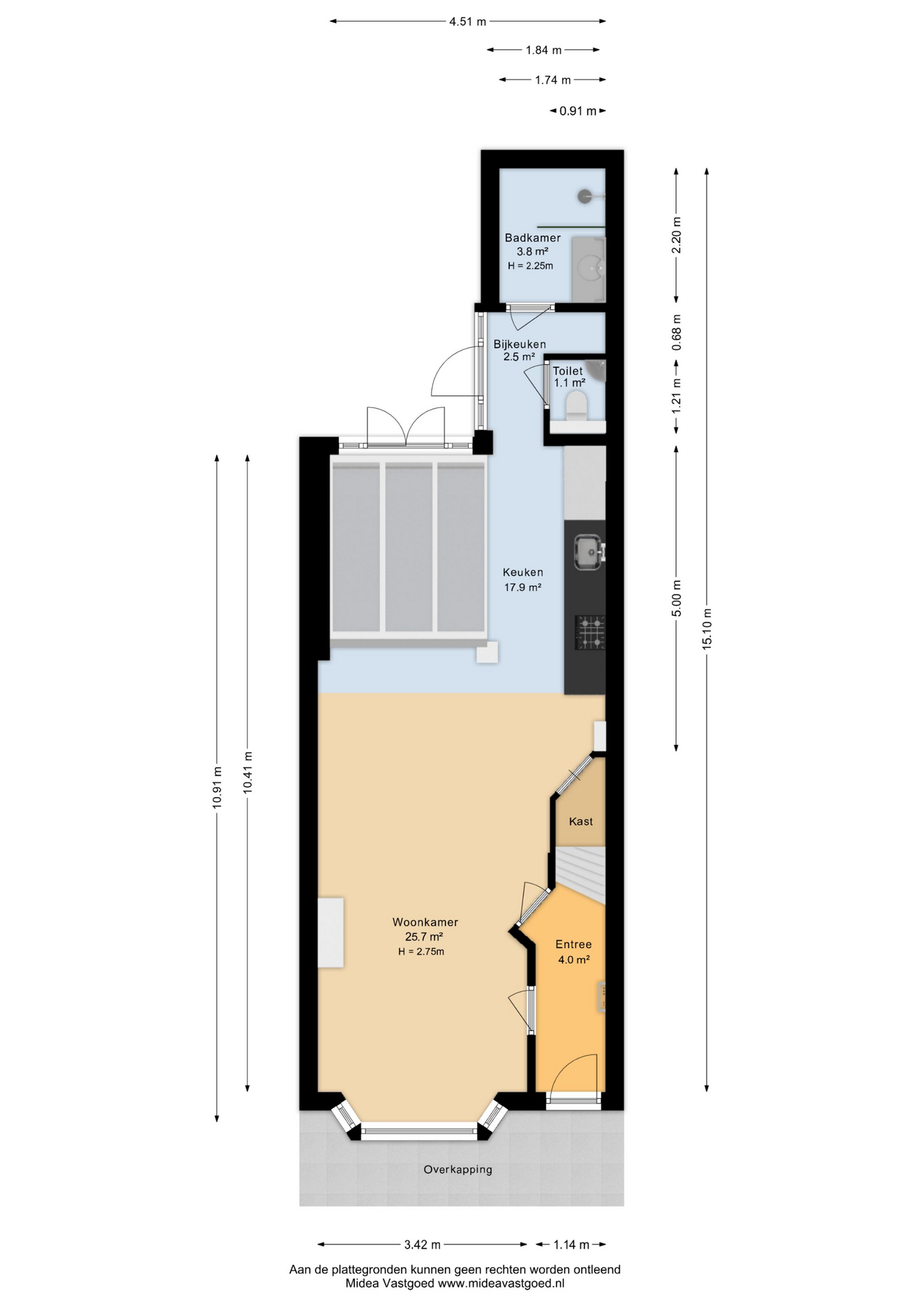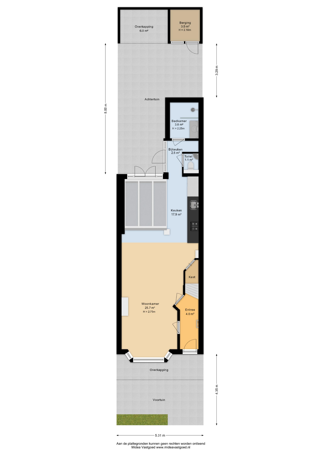 – bijkeuken naar de tuin, badkamer en toilet