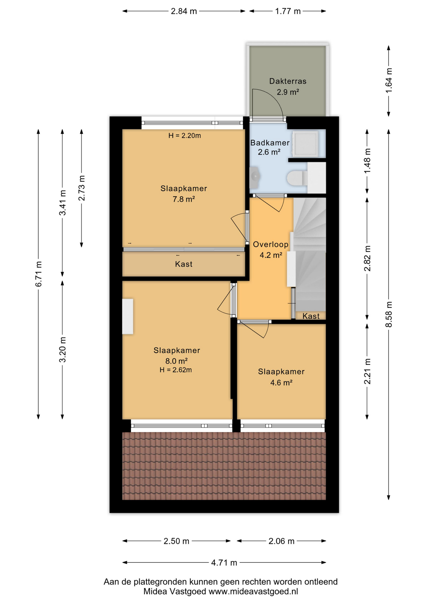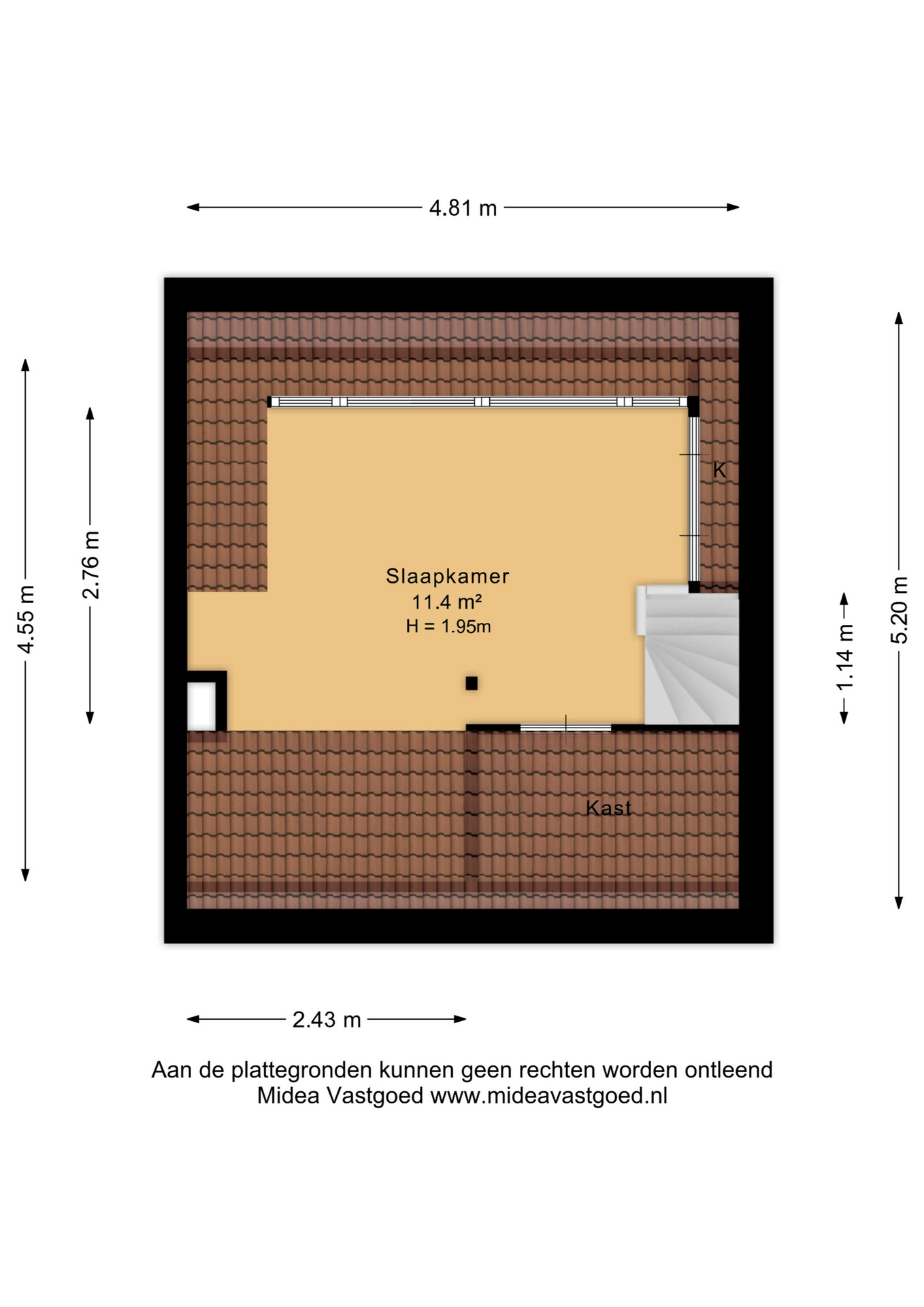 De oppervlakte van de 2e verdieping is meegenomen in de gebruiksoppervlakte, maar wordt door zijn beperkte hoogte (1,95 m) in het meetrapport gerekend als 33,8 m² overige inpandige ruimte.