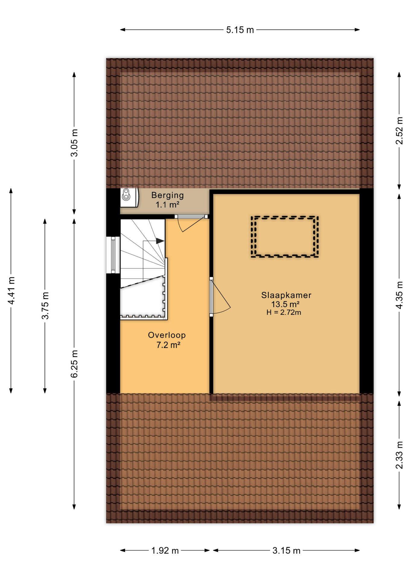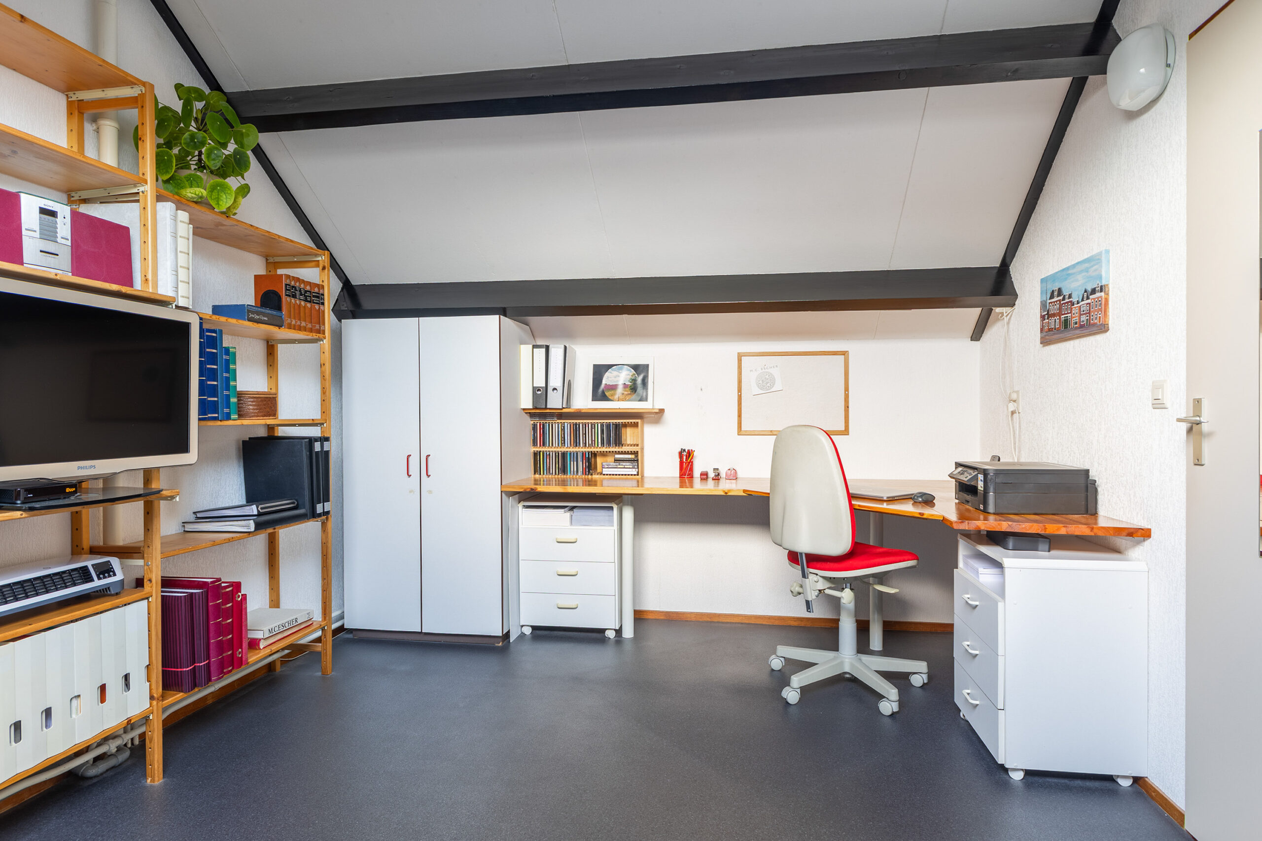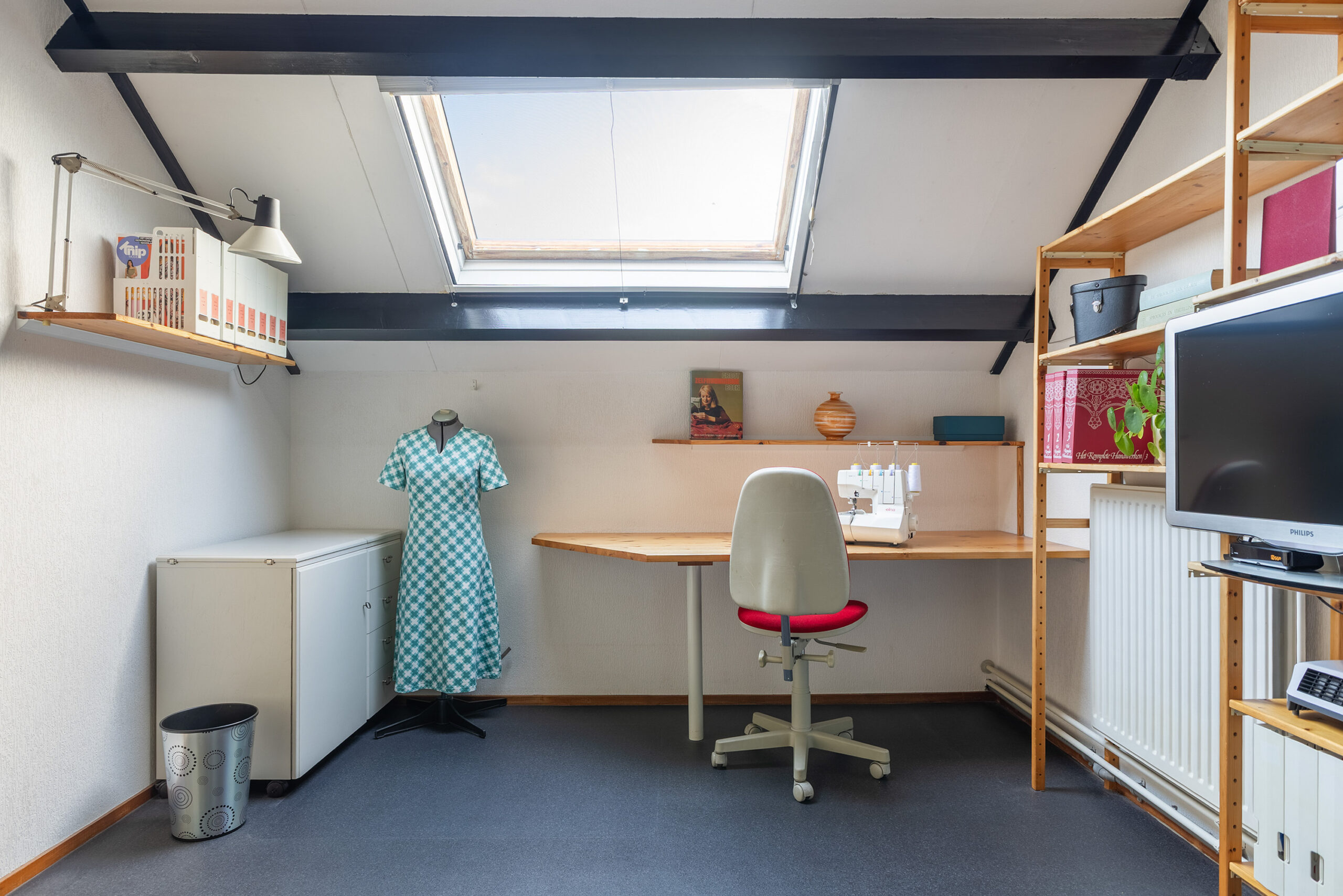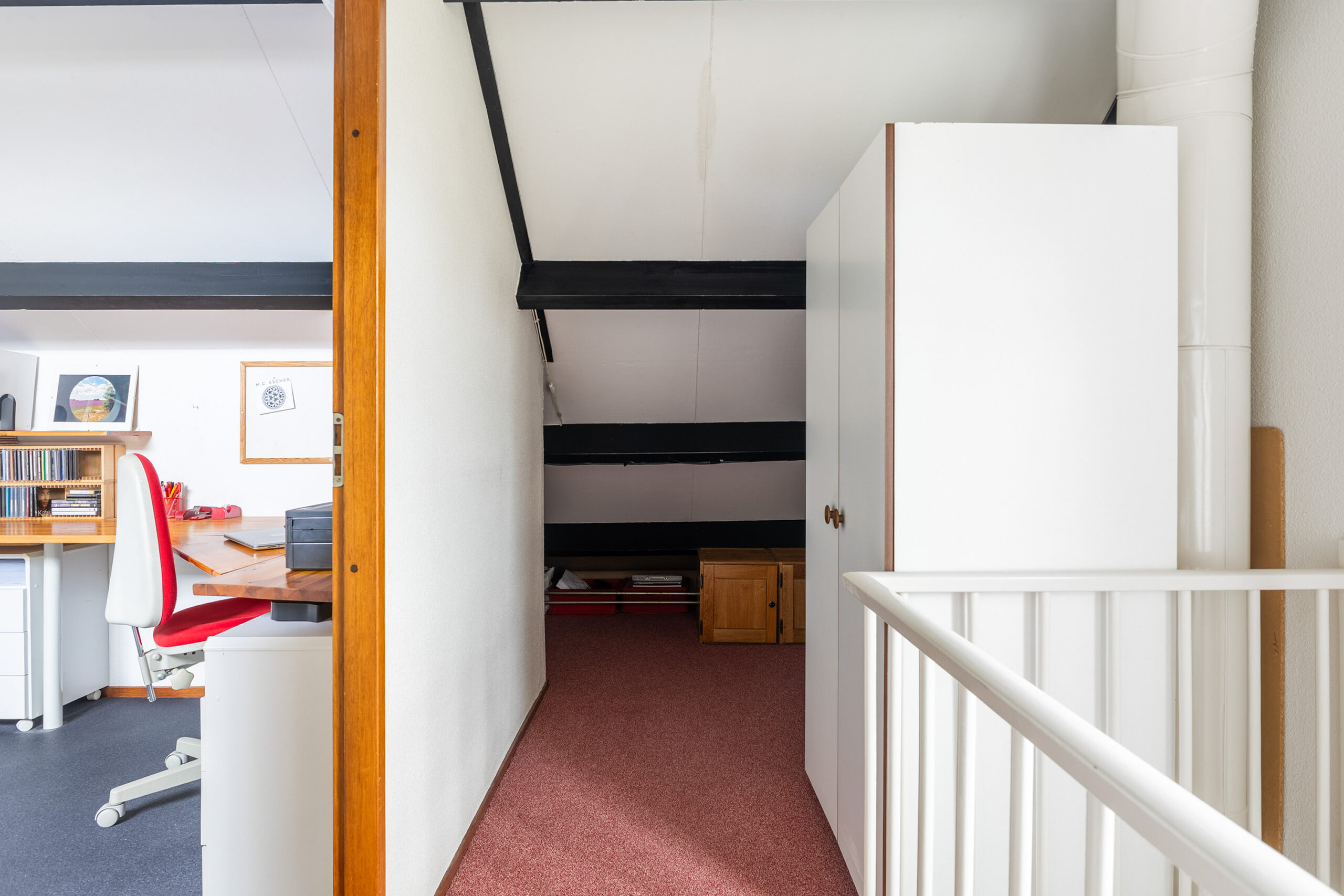 Middels een vaste trap bereikbare zolderverdieping. De ruime overloop biedt toegang tot de berging met cv-opstelling en een ruime 4e slaapkamer van 13,5 m2 met Velux dakraam.