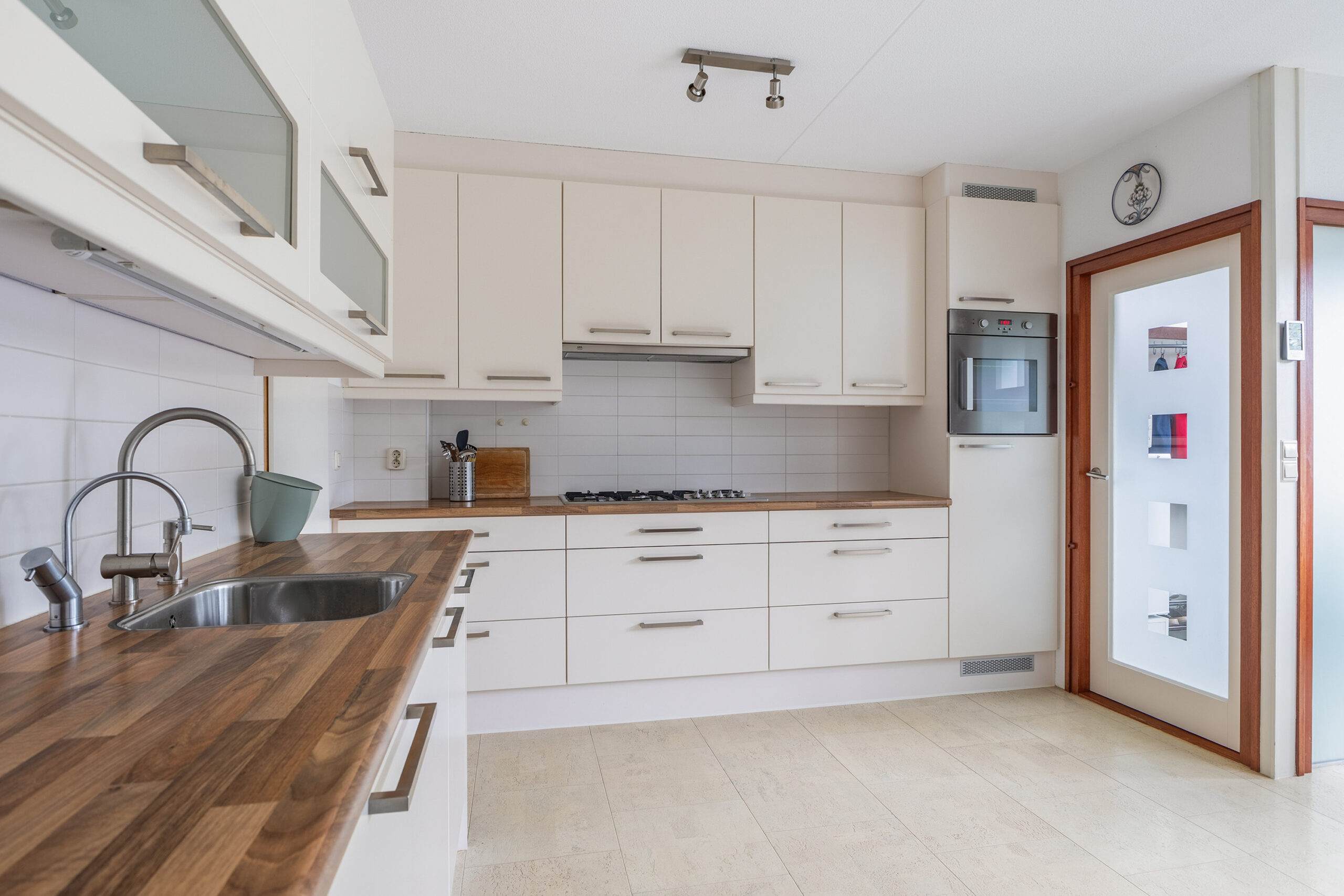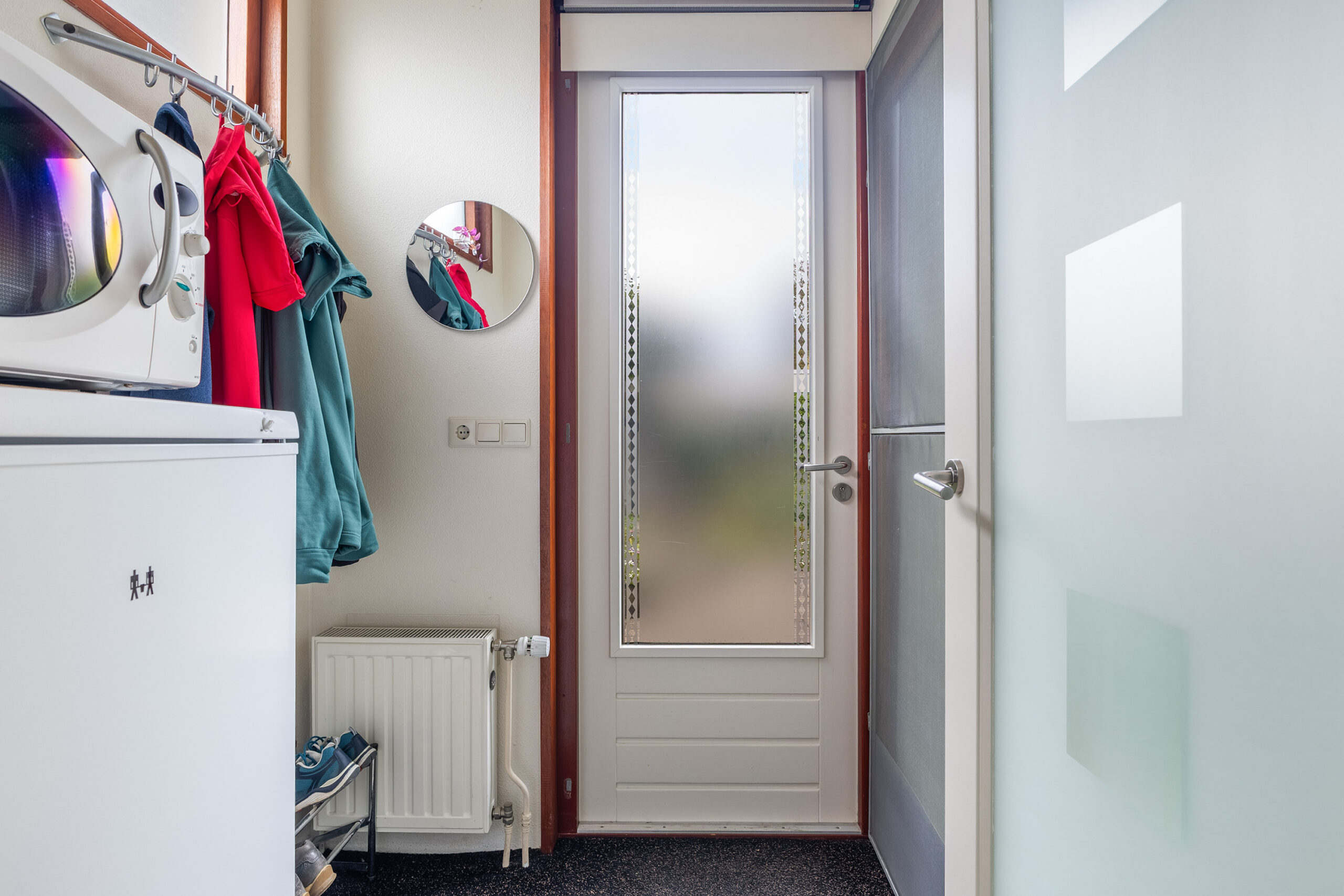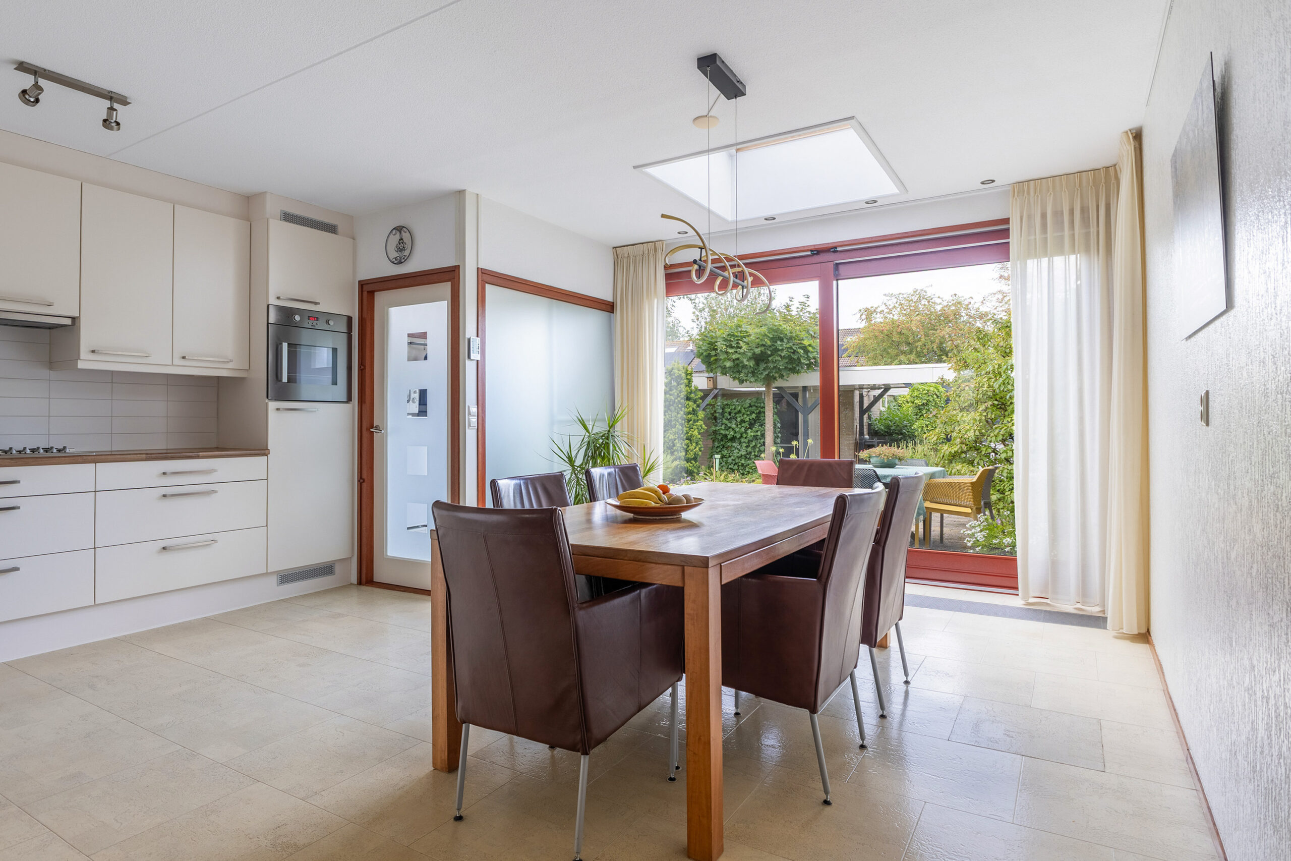 Entree aan de voorzijde. Binnenkomst in hal met meterkast en deur naar de woonkamer. Lichte woonkamer voorzien van inbouwhaard, vloer van kruktegels en toegang tot halletje met toilet en trapopgang neer de eerste verdieping. De open woonkeuken die in 2005 is uitgebouwd bevindt zich aan de achterzijde van de woning en biedt middels een grote schuifpui toegang tot de achtertuin. De keuken is voorzien van diverse inbouwapparatuur als een 5-pits gasfornuis, afzuigkap, oven, koelkast, vaatwasser (2019) en Quooker. Vanuit de keuken is er toegang tot de bijkeuken met loopdeur naar de achtertuin.