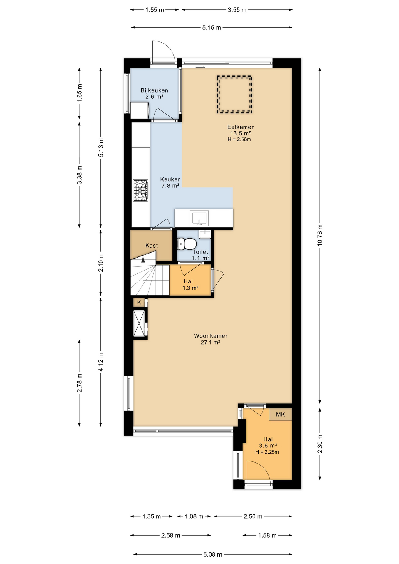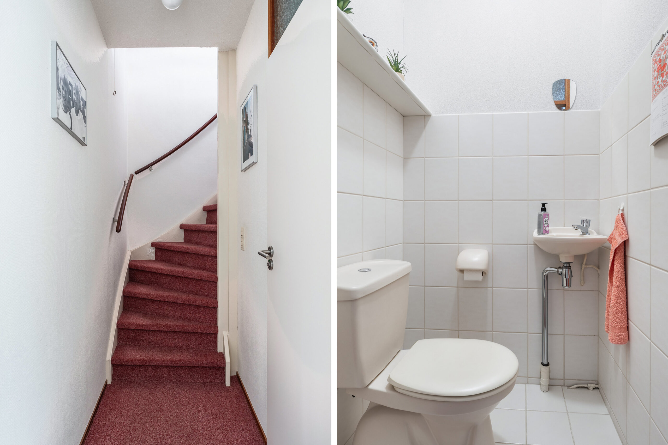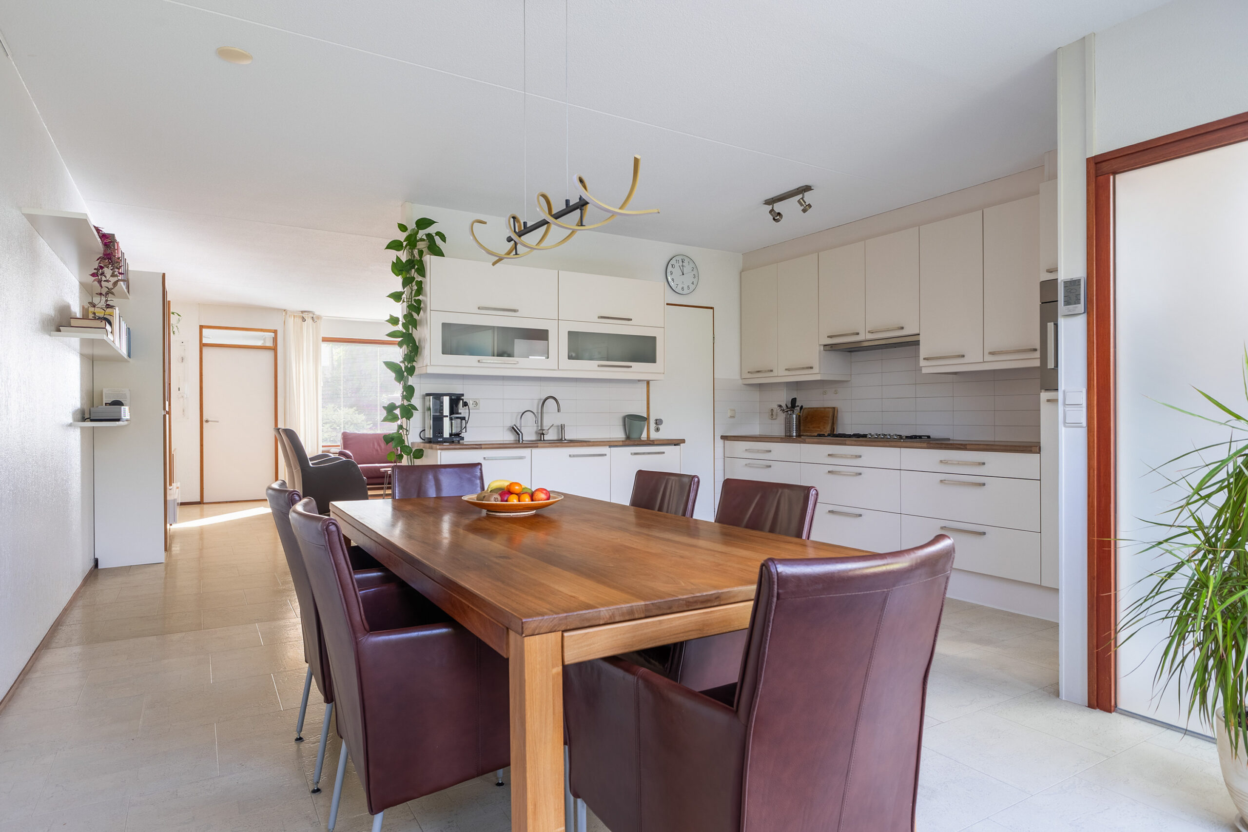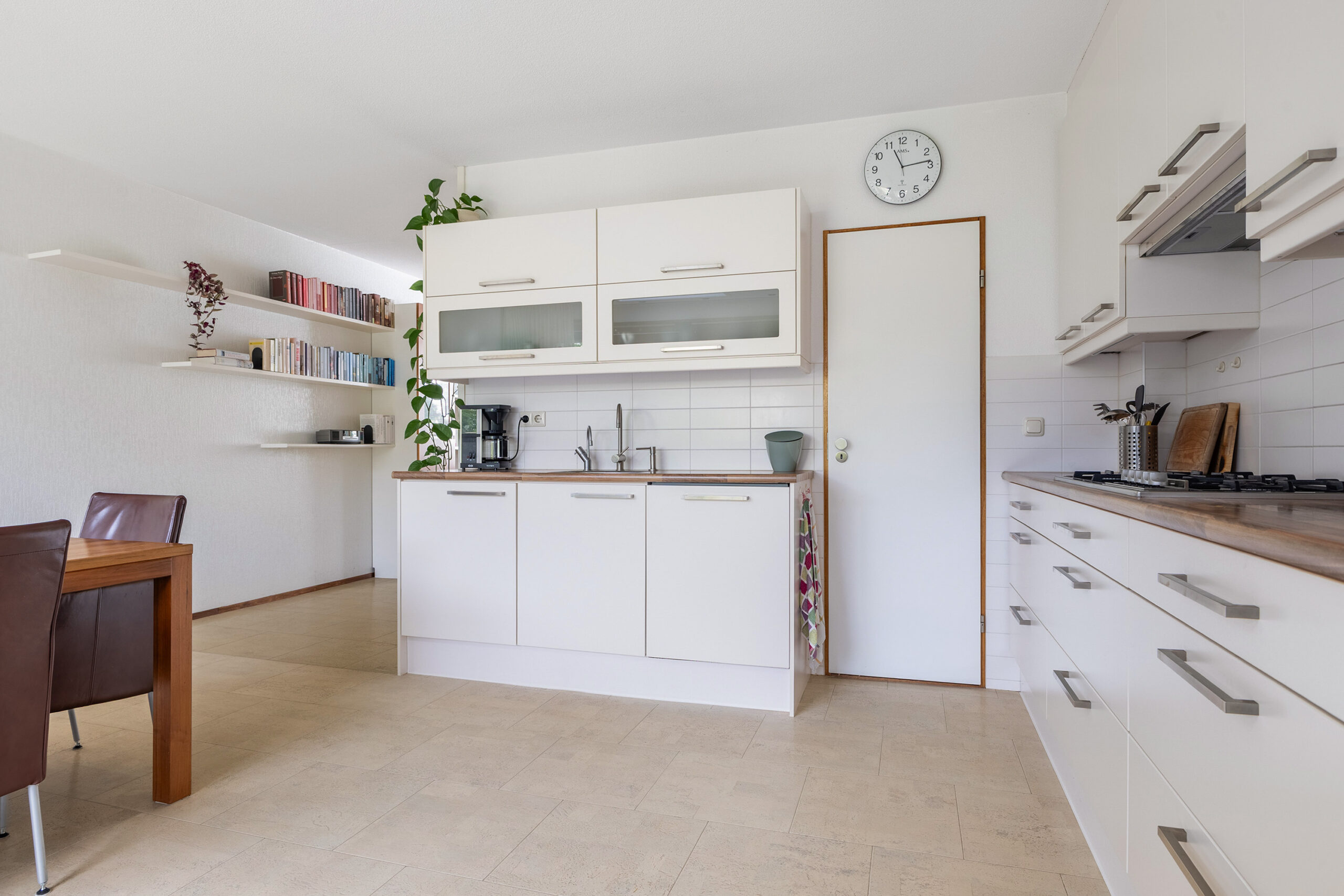 Entree aan de voorzijde. Binnenkomst in hal met meterkast en deur naar de woonkamer. Lichte woonkamer voorzien van inbouwhaard, vloer van kruktegels en toegang tot halletje met toilet en trapopgang neer de eerste verdieping. De open woonkeuken die in 2005 is uitgebouwd bevindt zich aan de achterzijde van de woning en biedt middels een grote schuifpui toegang tot de achtertuin. De keuken is voorzien van diverse inbouwapparatuur als een 5-pits gasfornuis, afzuigkap, oven, koelkast, vaatwasser (2019) en Quooker. Vanuit de keuken is er toegang tot de bijkeuken met loopdeur naar de achtertuin.