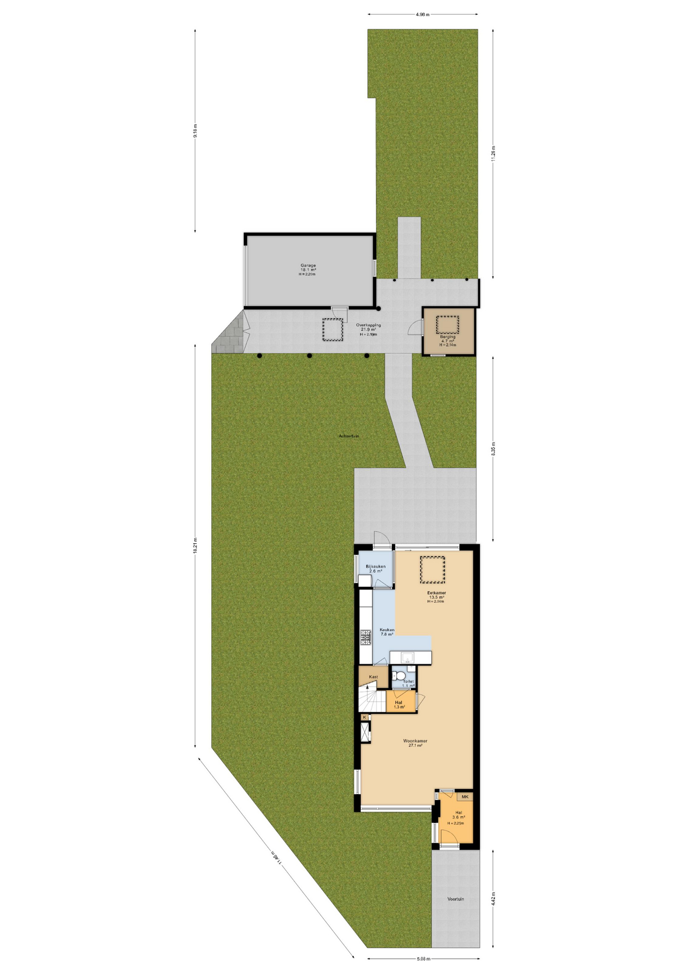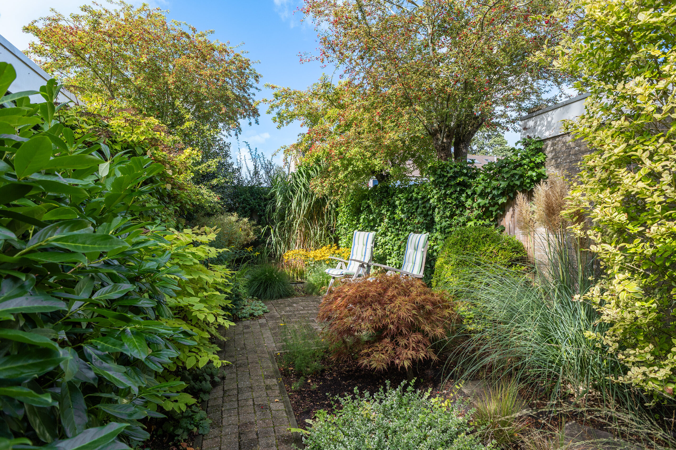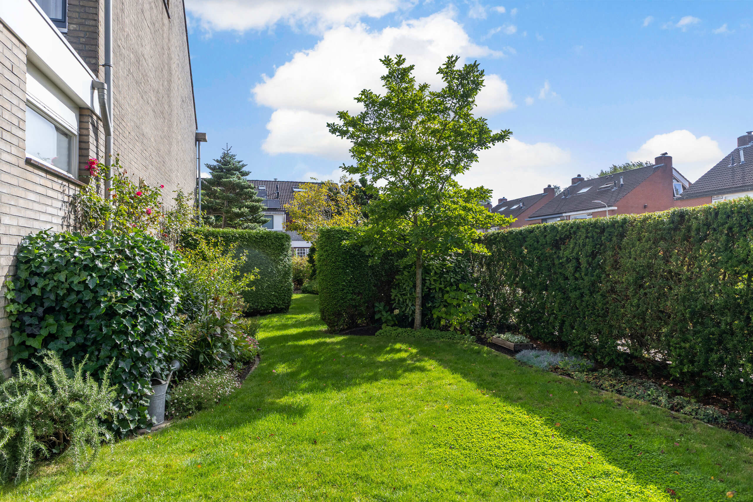 – groot perceel (412 m2) met dubbele achtertuin op het westen en royale zij-tuin op het zuiden