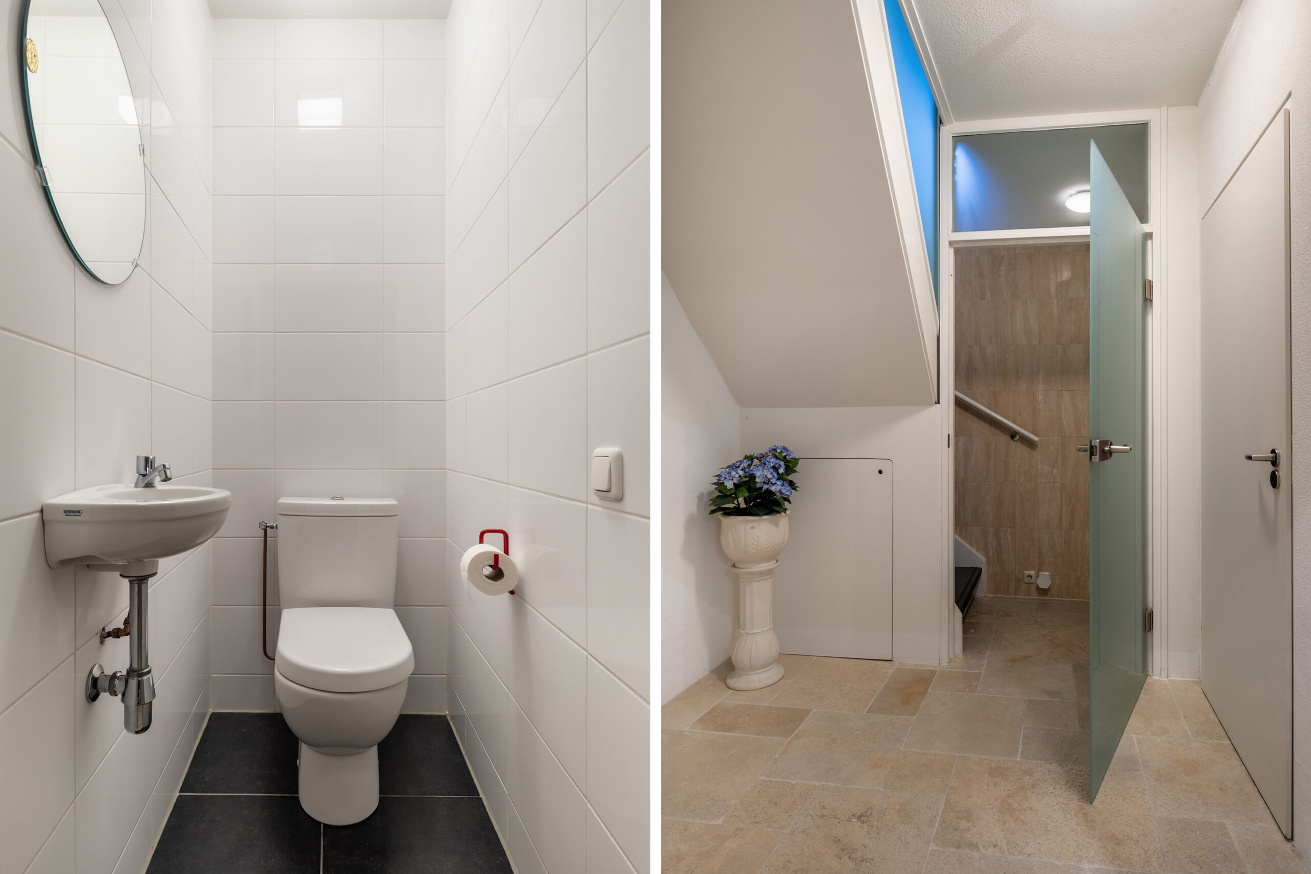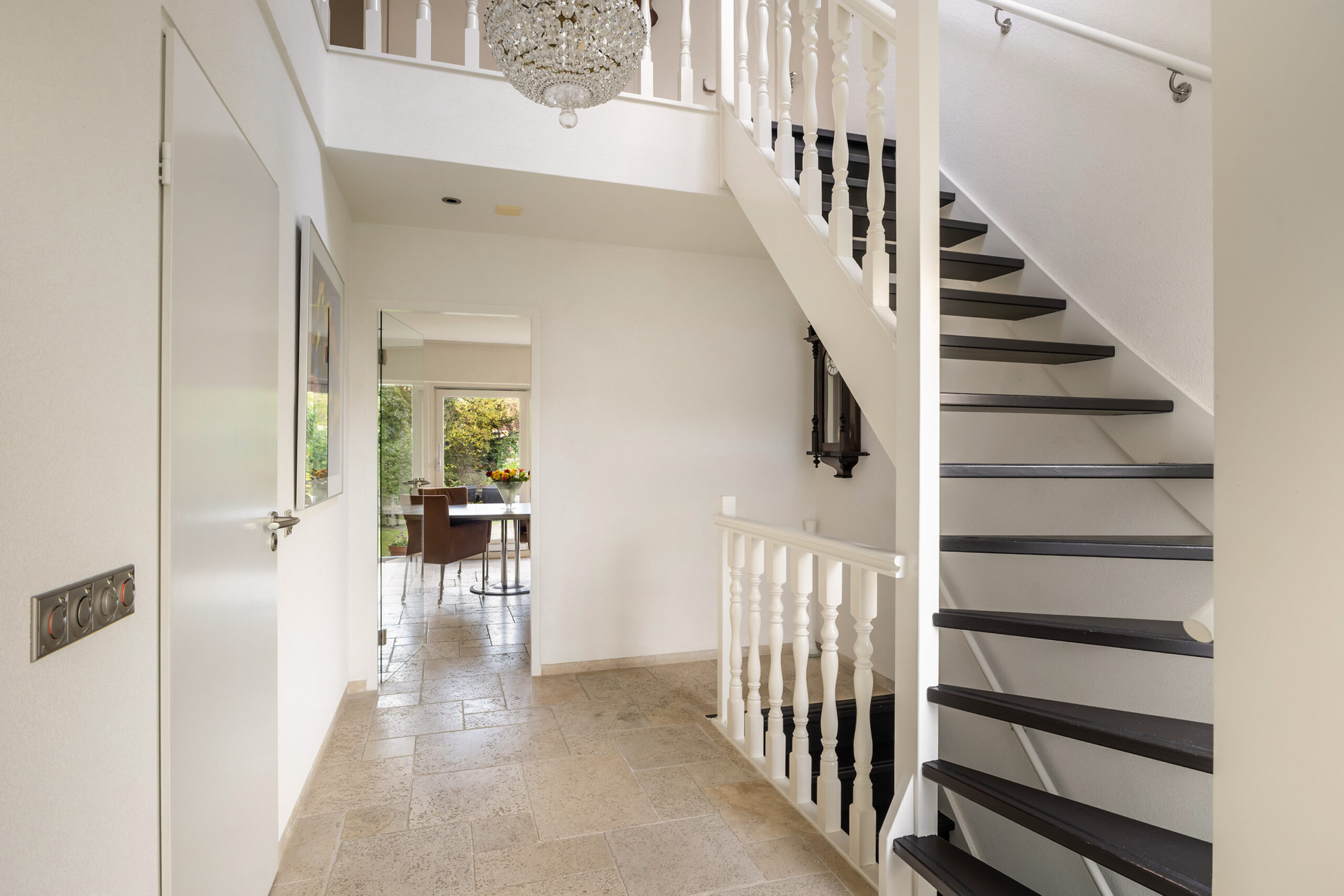 Entree in de ruime hal met garderobe, toilet, trapopgang, toegang naar het souterrain en doorloop naar de living.