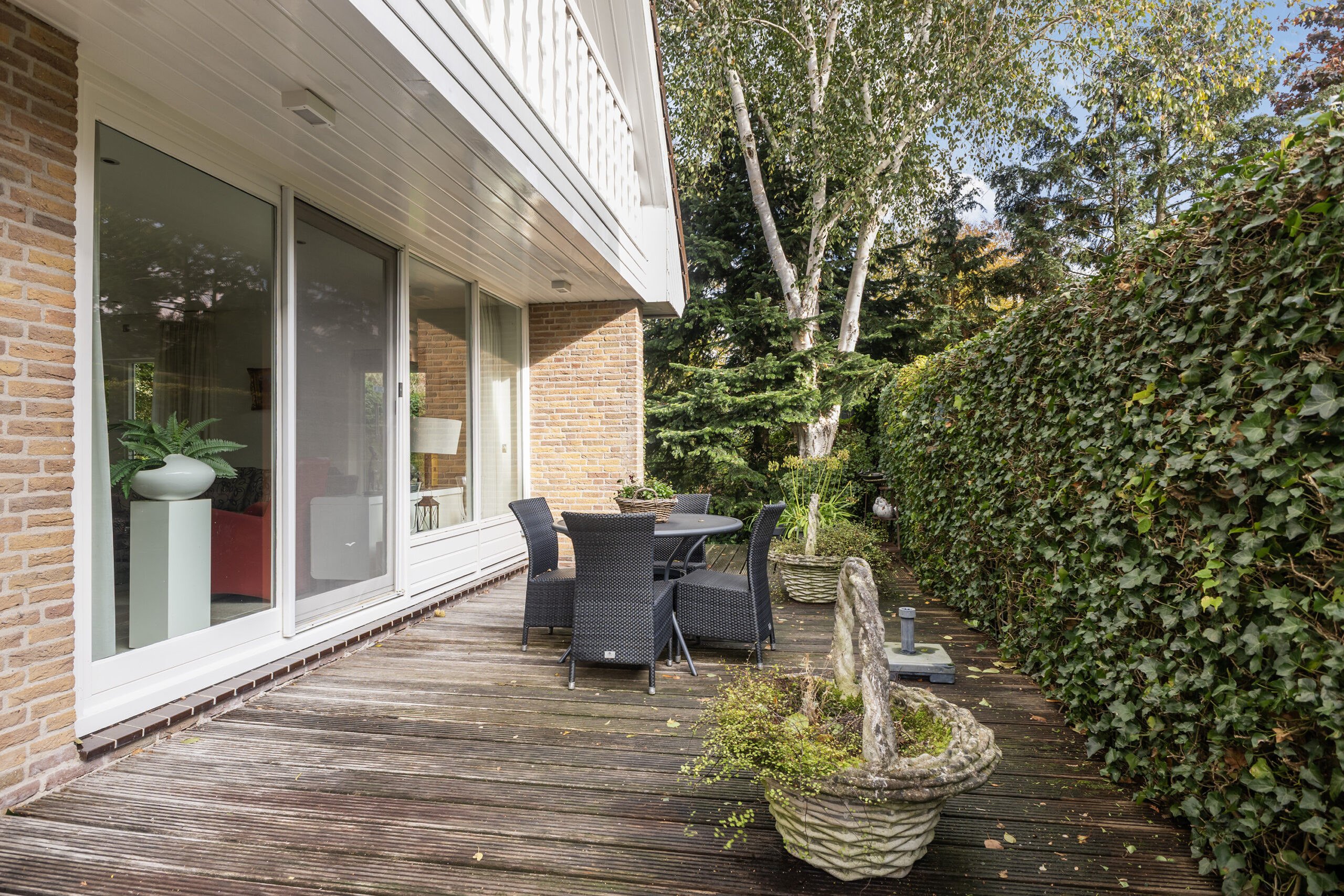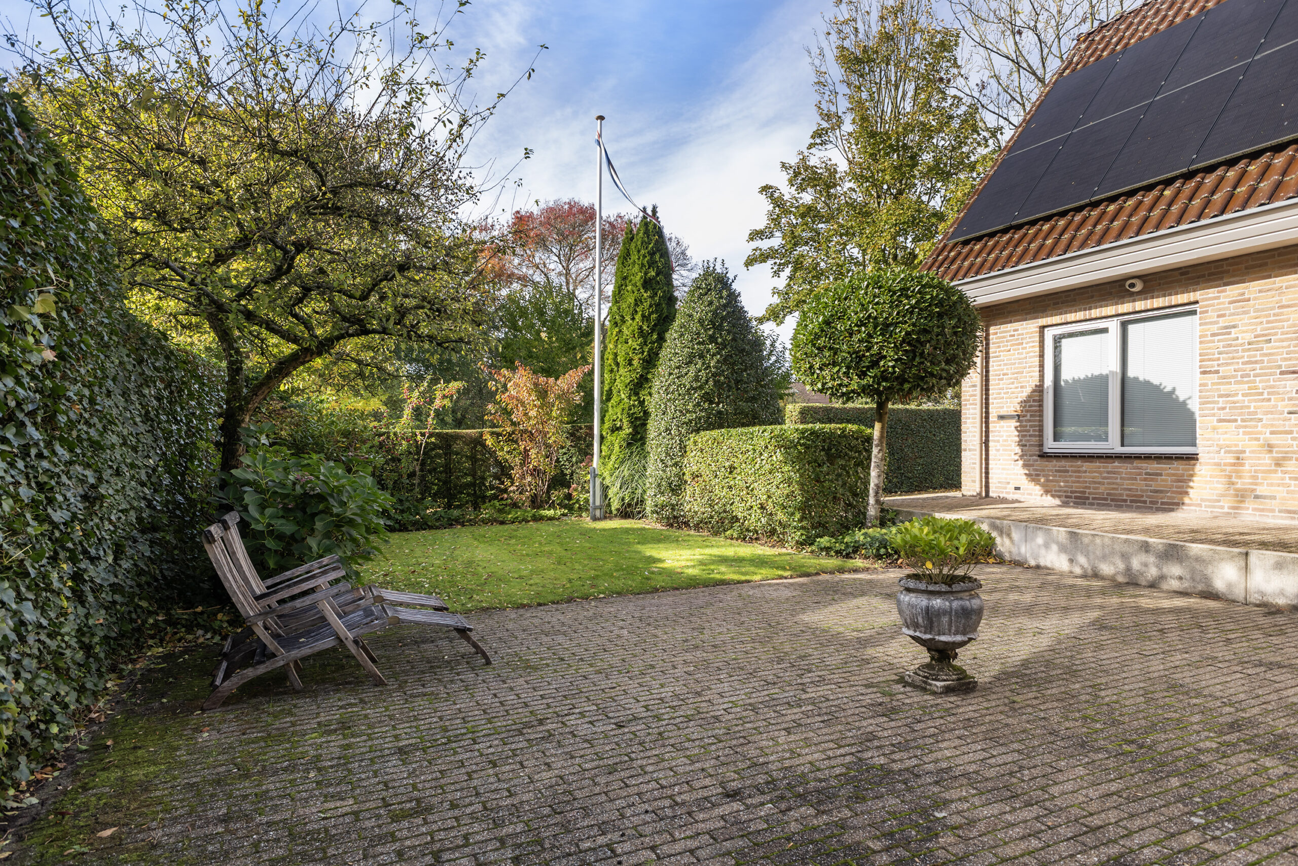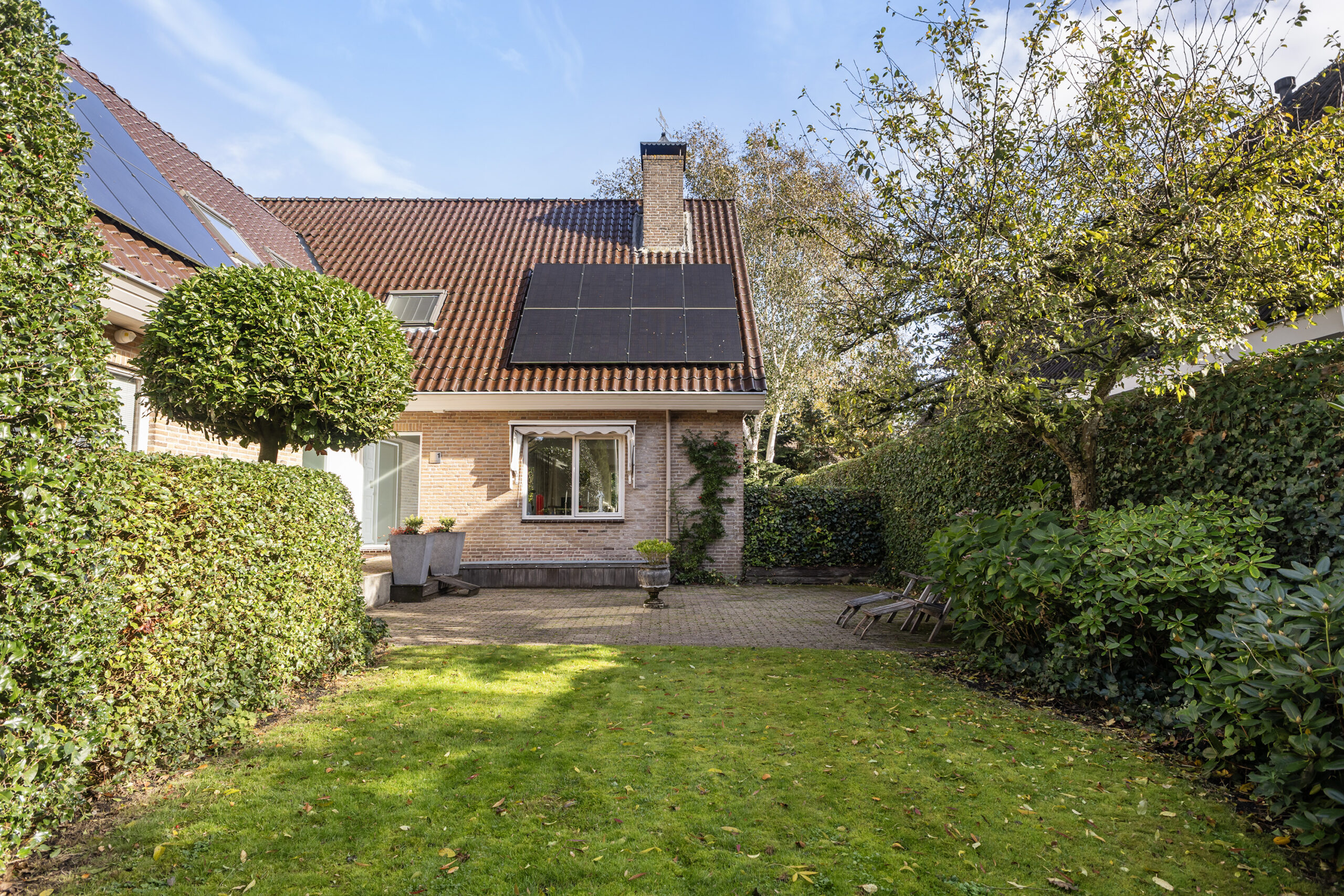 De villa ligt op een riant en rustig perceel van ruim 700 m2, waaraan geen doorgaande weg ligt. De parkachtige, zonnige tuin biedt veel privacy. Er zijn diverse zithoeken met o.a. een veranda om van het buitenleven te genieten.