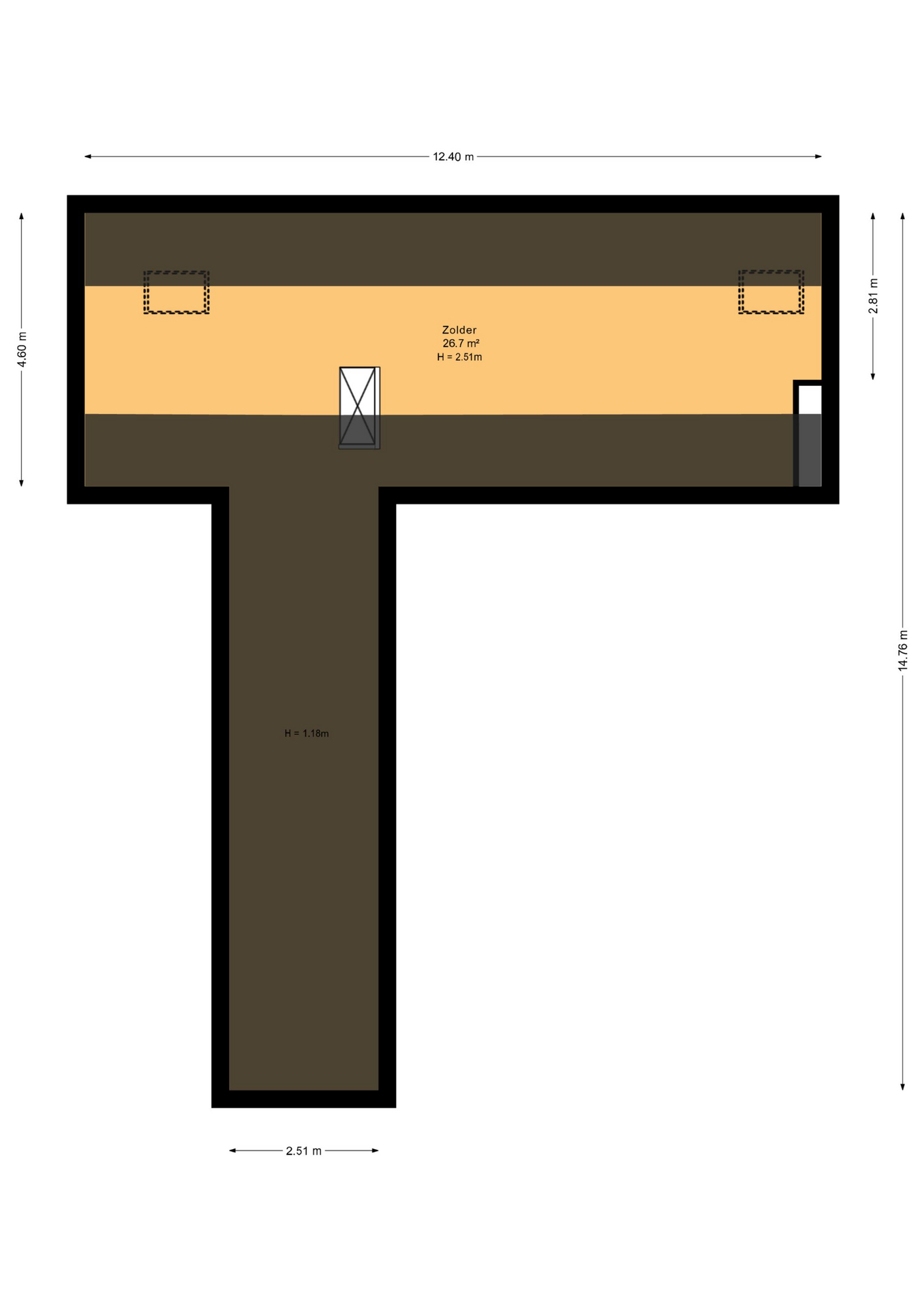 De ruime zolder/berging met 2 dakramen is ruim 26m² groot en te bereiken door middel van een vlizotrap.