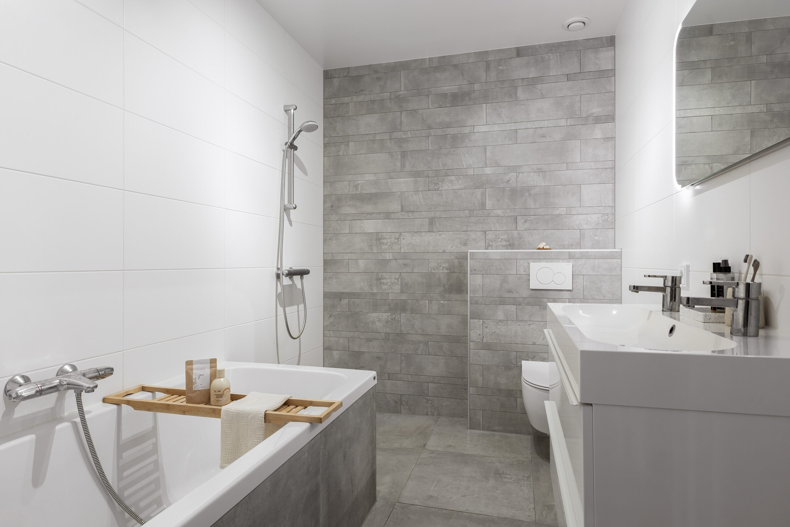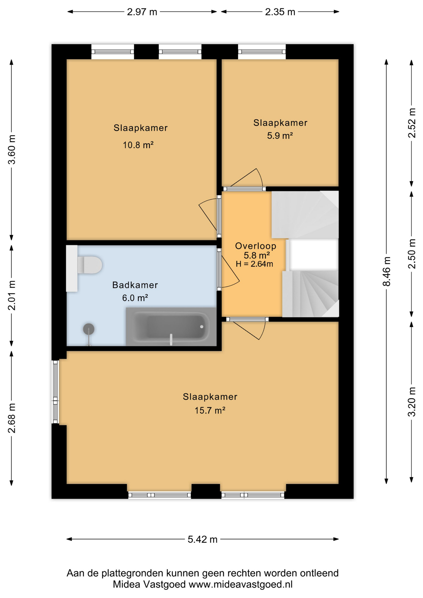 – 3 slaapkamers en een moderne badkamer (met ligbad, wastafelmeubel, douche en toilet) op de 1e verdieping