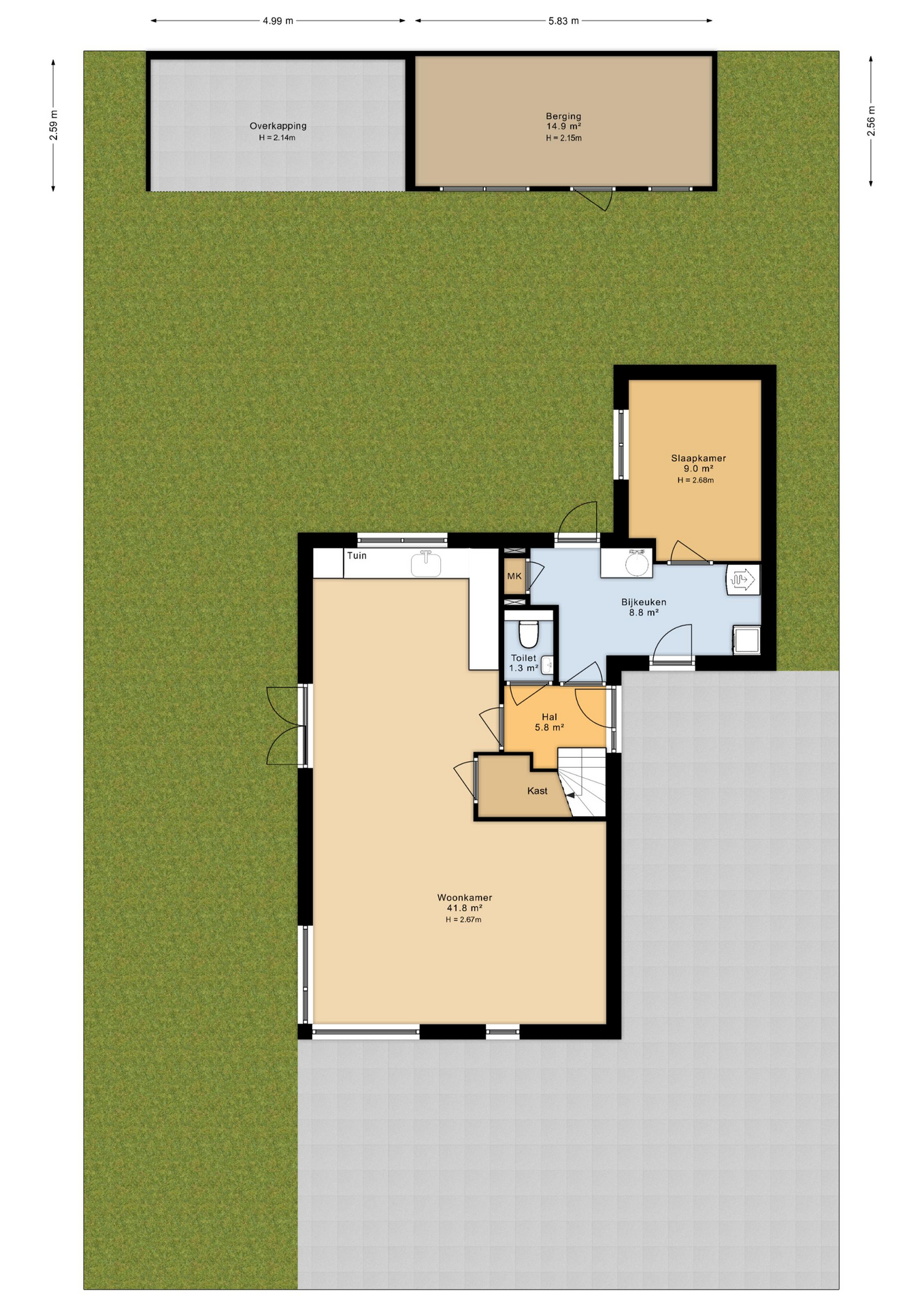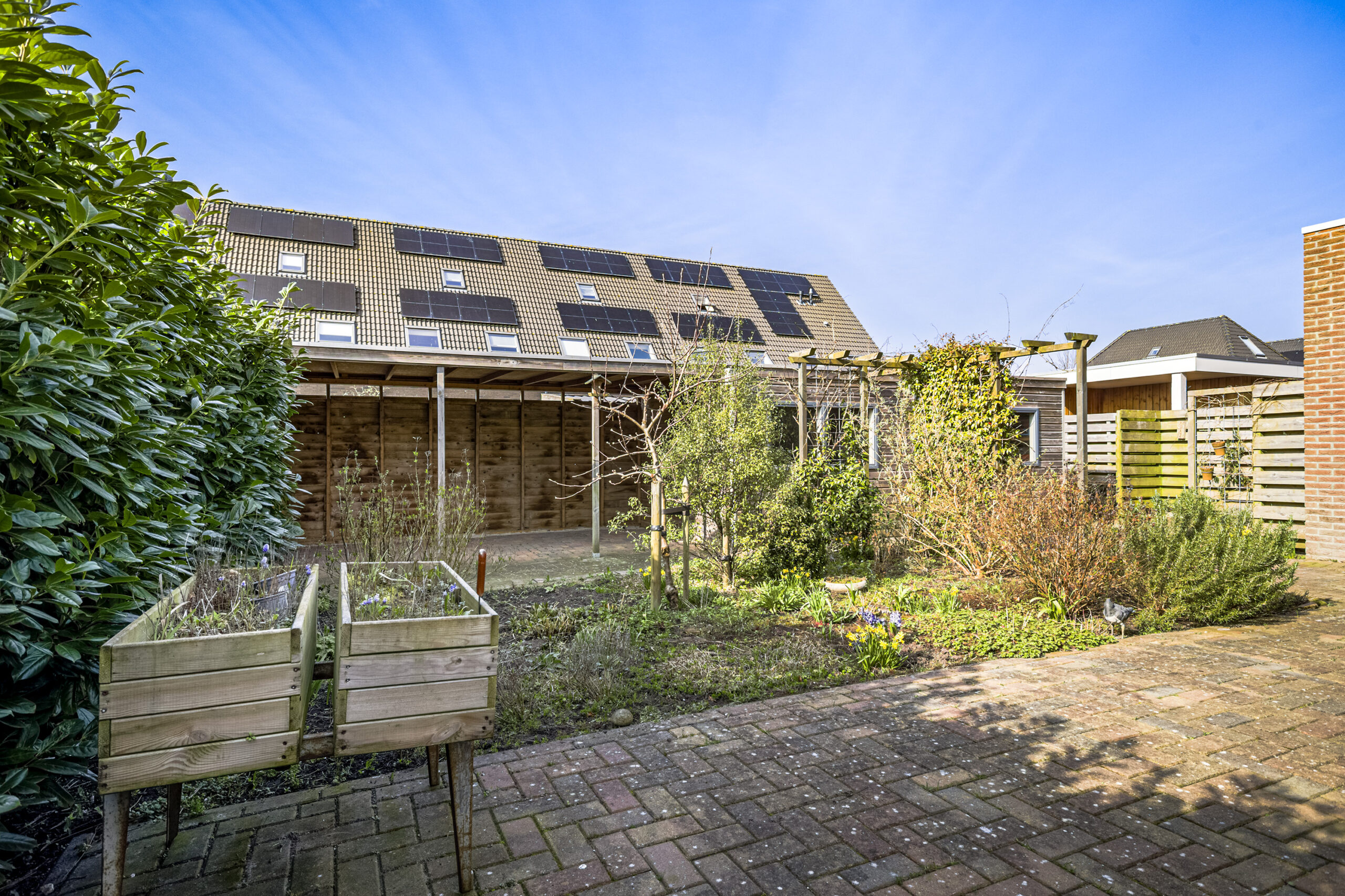 – tuin op het westen met berging en overkapping
