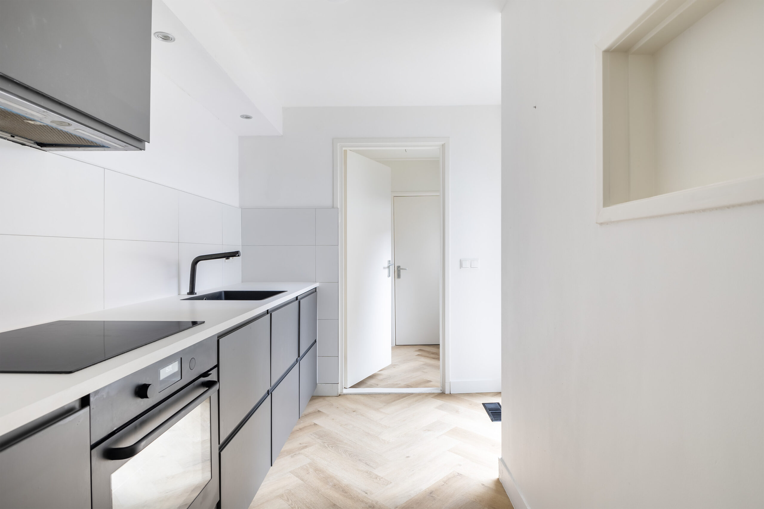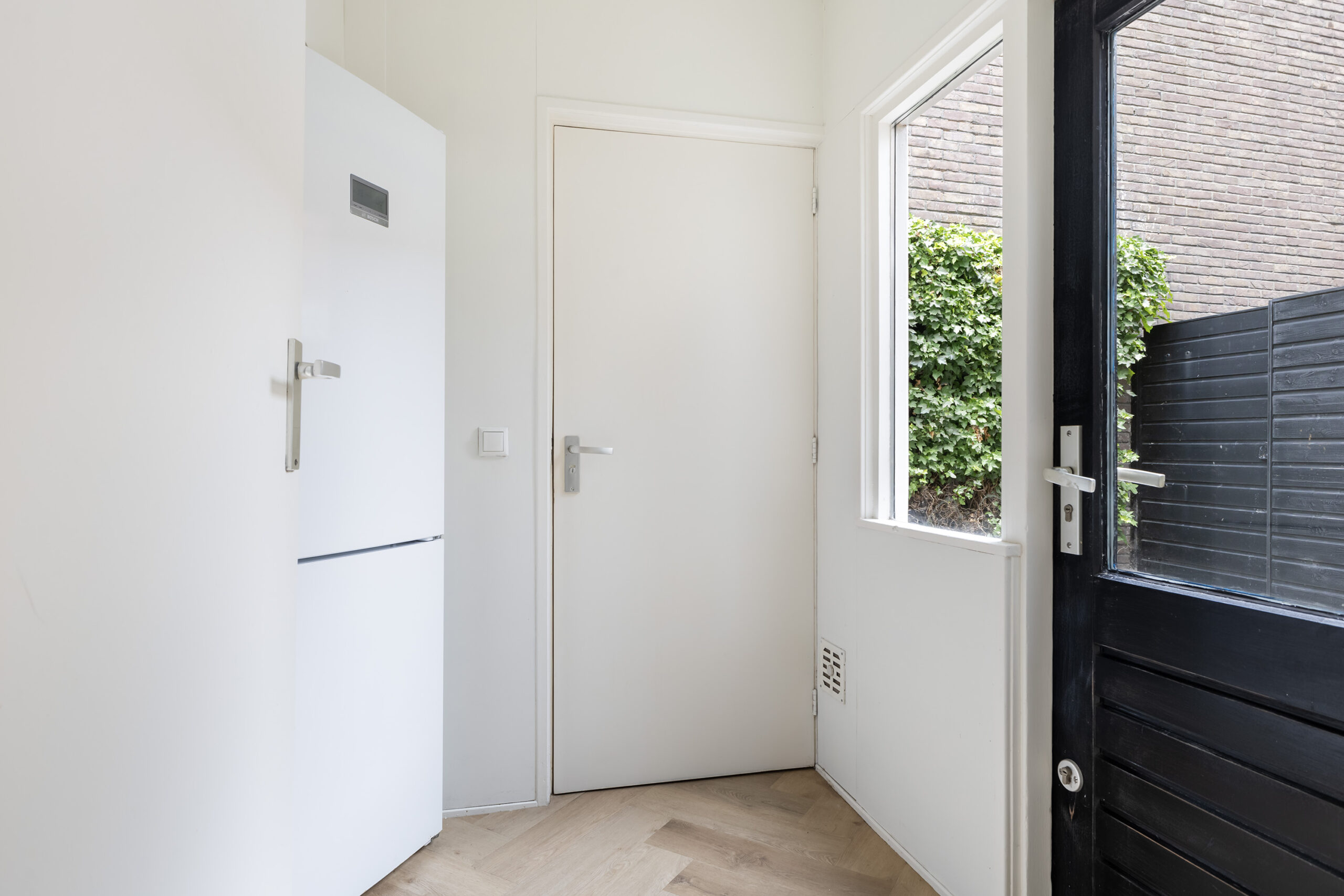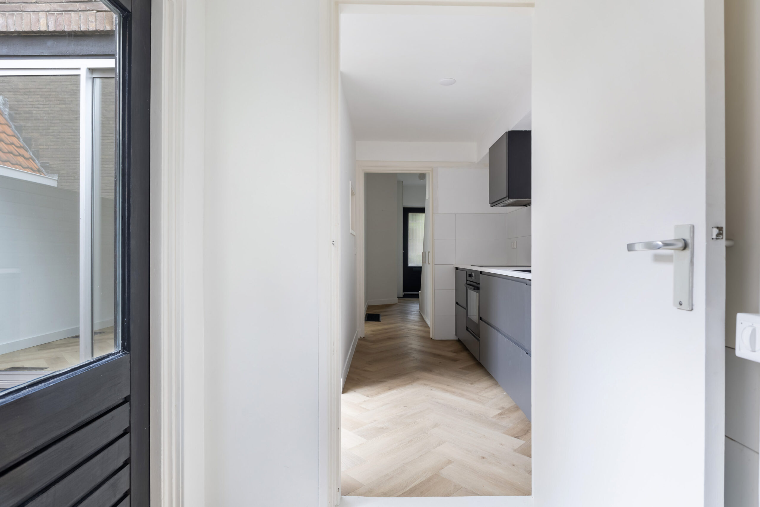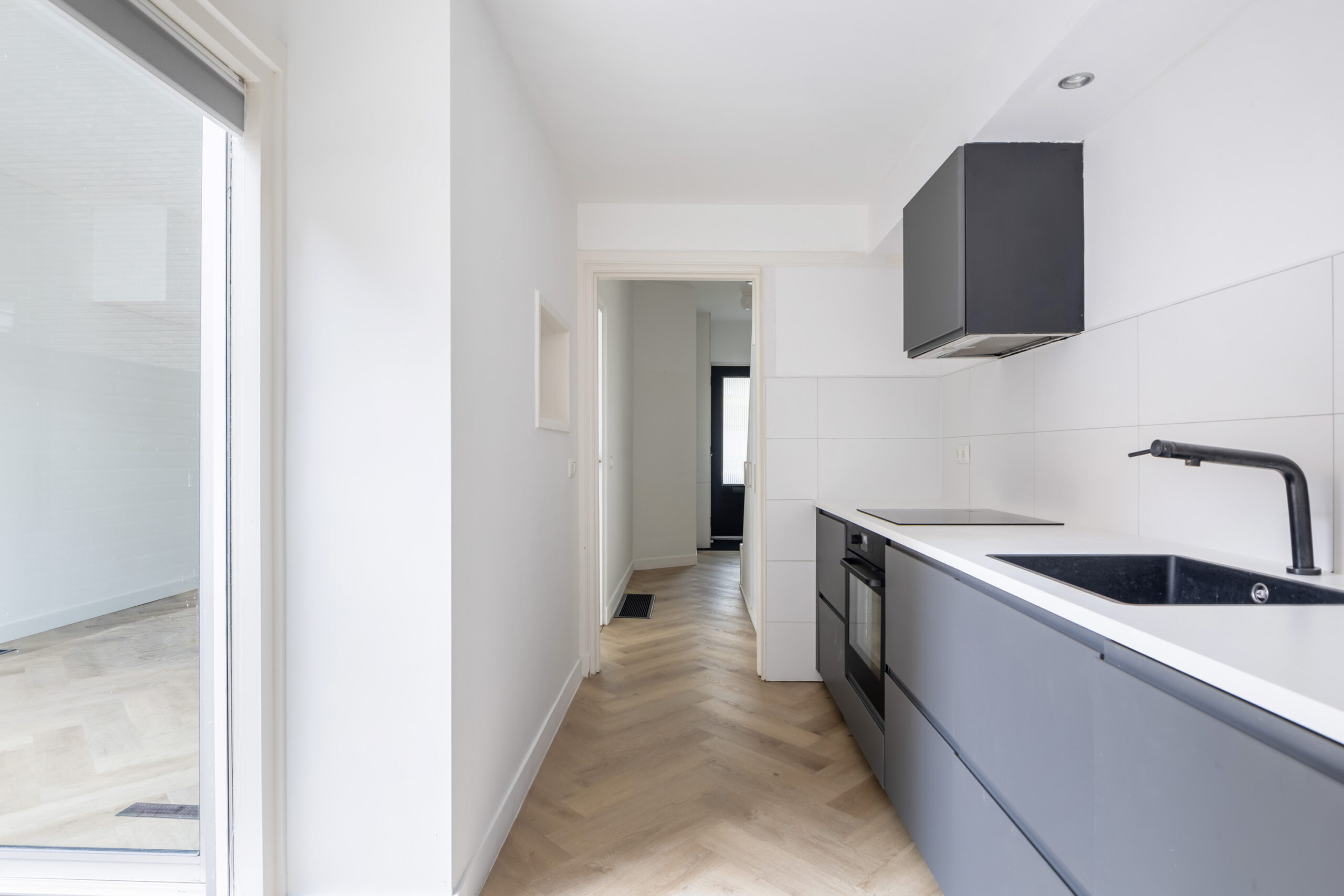 Via de vier meter diepe voortuin is de entree aan de voorzijde bereikbaar. De hal met trapopgang biedt toegang tot zowel de woonkamer als de keuken. Binnen valt direct de moderne afwerking op: strakke wanden, een eigentijdse vloer en een luxe keuken. Door de recente renovatie is de woning direct instapklaar. De woonkamer beschikt over een brede zithoek aan de voorzijde en voldoende ruimte aan de achterzijde voor een eethoek. Via een schuifpui is de achtertuin toegankelijk. De keuken is uitgevoerd in wandopstelling en voorzien van diverse inbouwapparatuur, waaronder een inductiekookplaat, combi-oven, koelkast en vaatwasser. Aangrenzend aan de keuken bevindt zich de bijkeuken met CV-opstelling, toilet en een loopdeur naar de achtertuin. De achtertuin van is gesitueerd op het noorden en beschikt over een achterom.