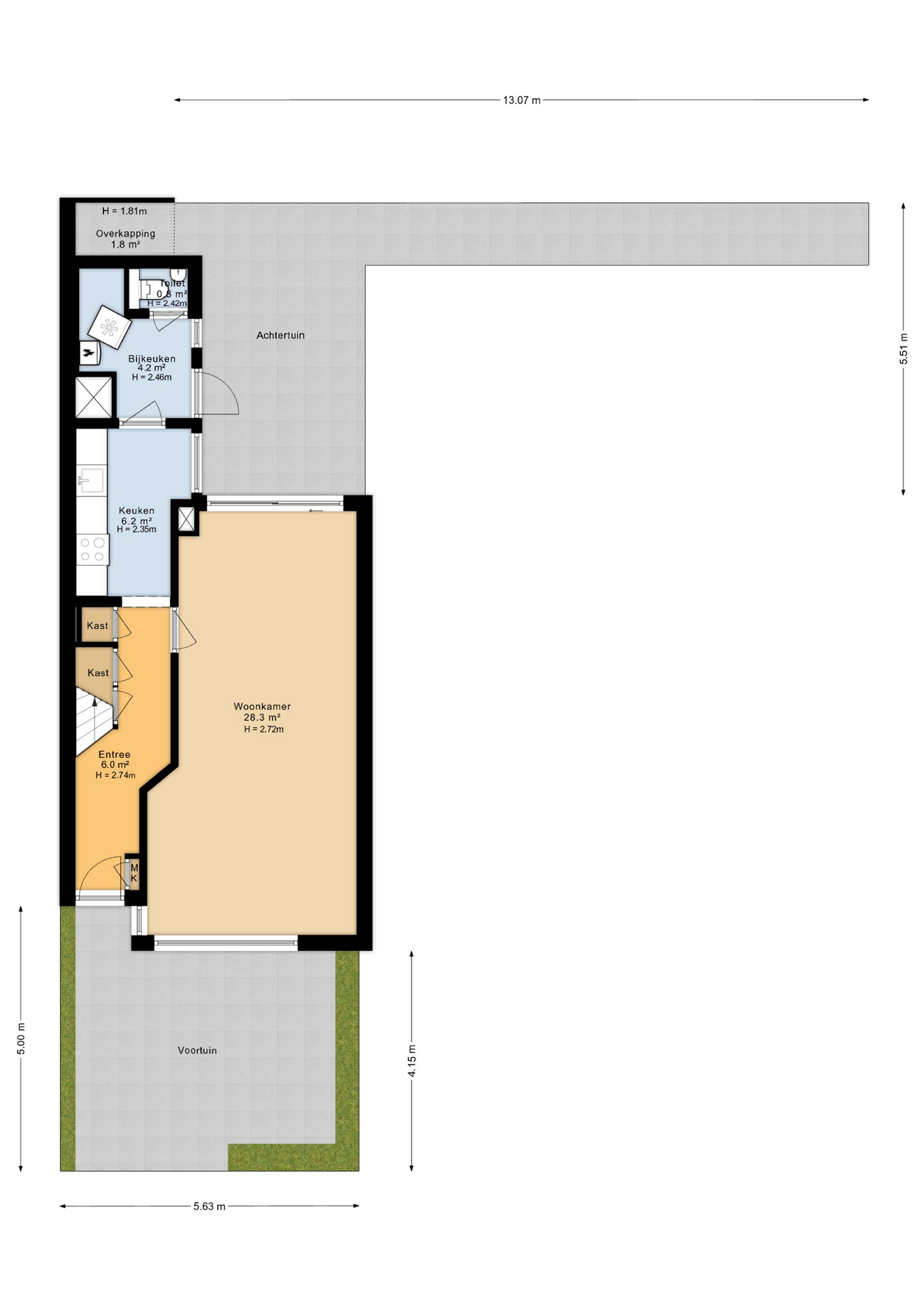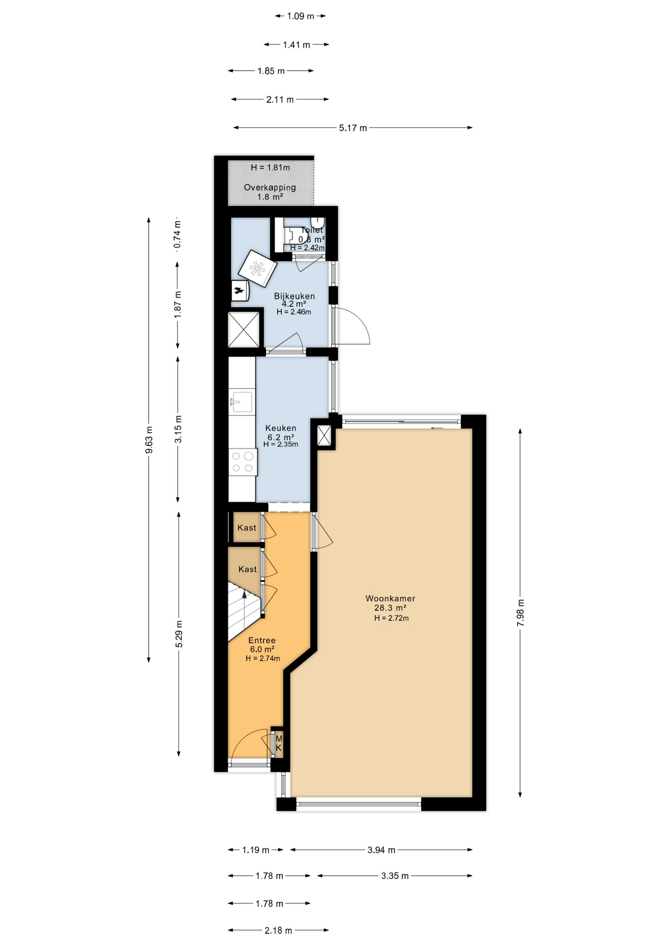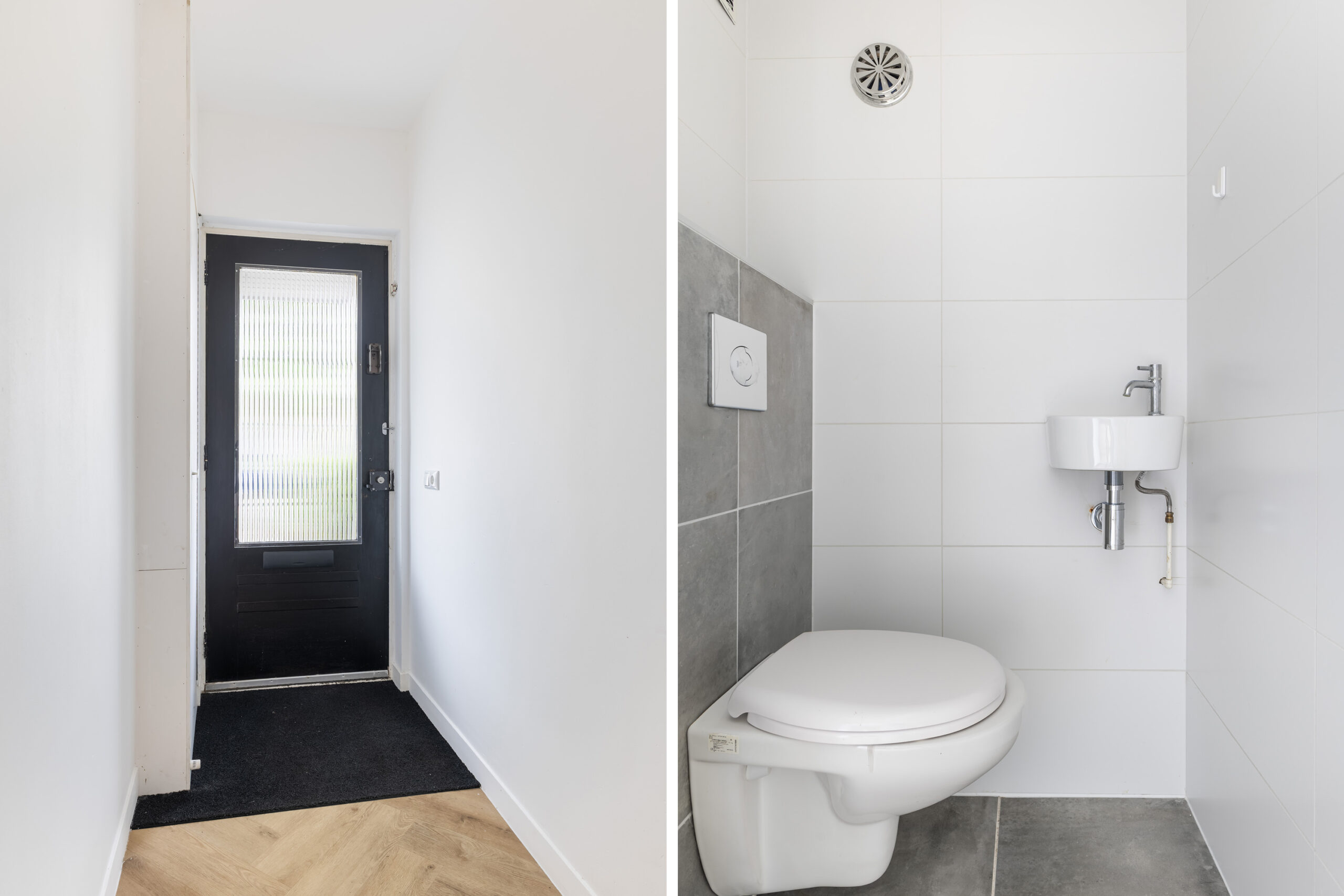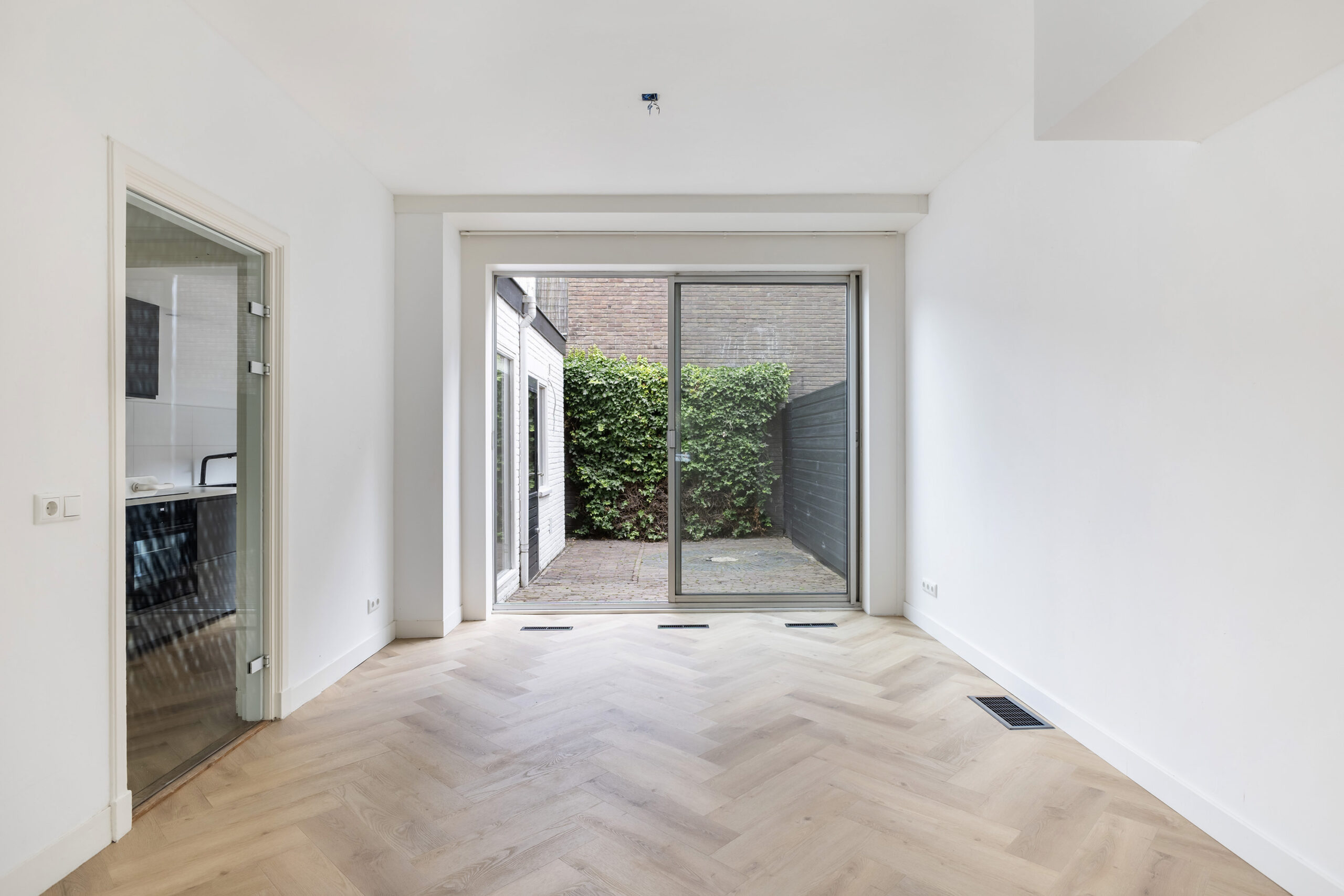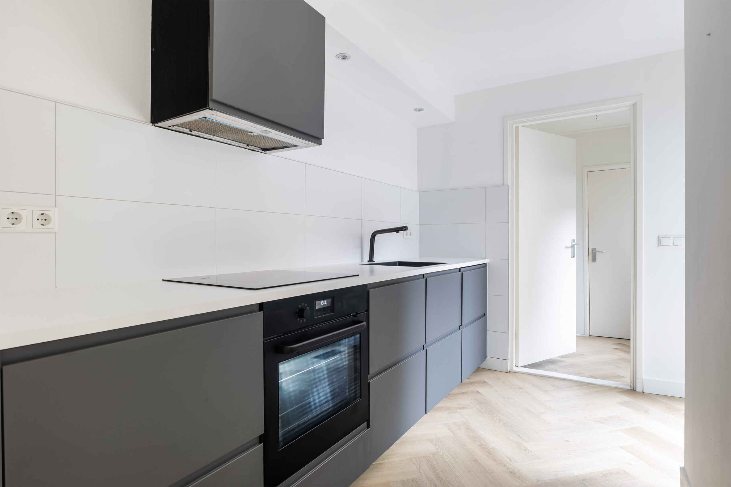 Via de vier meter diepe voortuin is de entree aan de voorzijde bereikbaar. De hal met trapopgang biedt toegang tot zowel de woonkamer als de keuken. Binnen valt direct de moderne afwerking op: strakke wanden, een eigentijdse vloer en een luxe keuken. Door de recente renovatie is de woning direct instapklaar. De woonkamer beschikt over een brede zithoek aan de voorzijde en voldoende ruimte aan de achterzijde voor een eethoek. Via een schuifpui is de achtertuin toegankelijk. De keuken is uitgevoerd in wandopstelling en voorzien van diverse inbouwapparatuur, waaronder een inductiekookplaat, combi-oven, koelkast en vaatwasser. Aangrenzend aan de keuken bevindt zich de bijkeuken met CV-opstelling, toilet en een loopdeur naar de achtertuin. De achtertuin van is gesitueerd op het noorden en beschikt over een achterom.