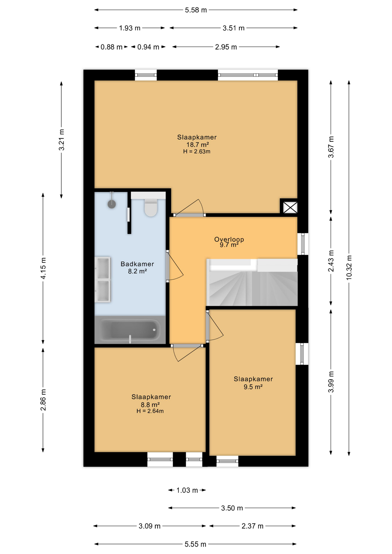 – royale 2e verdieping alwaar een 4e slaapkamer en mogelijkheid voor het creëren van een 5e slaapkamer