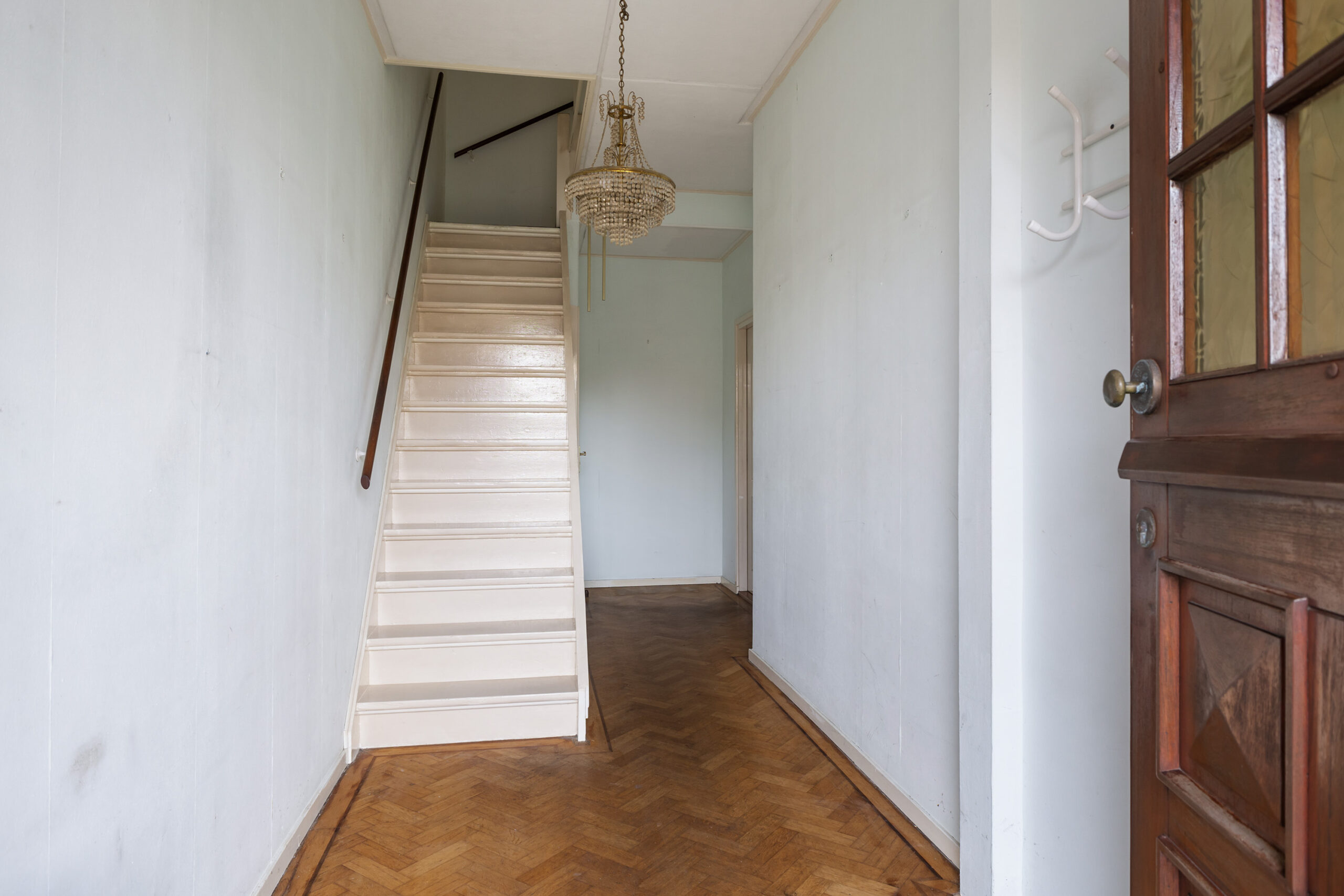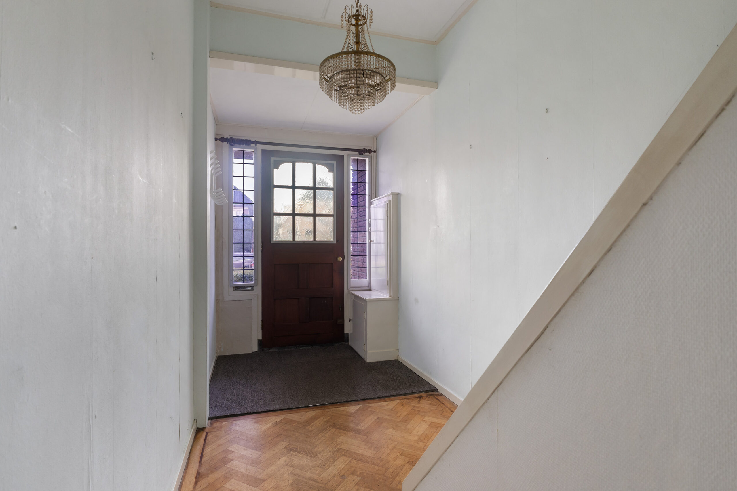 – middels overdekte entree binnenkomst in de ruime hal met trapopgang
