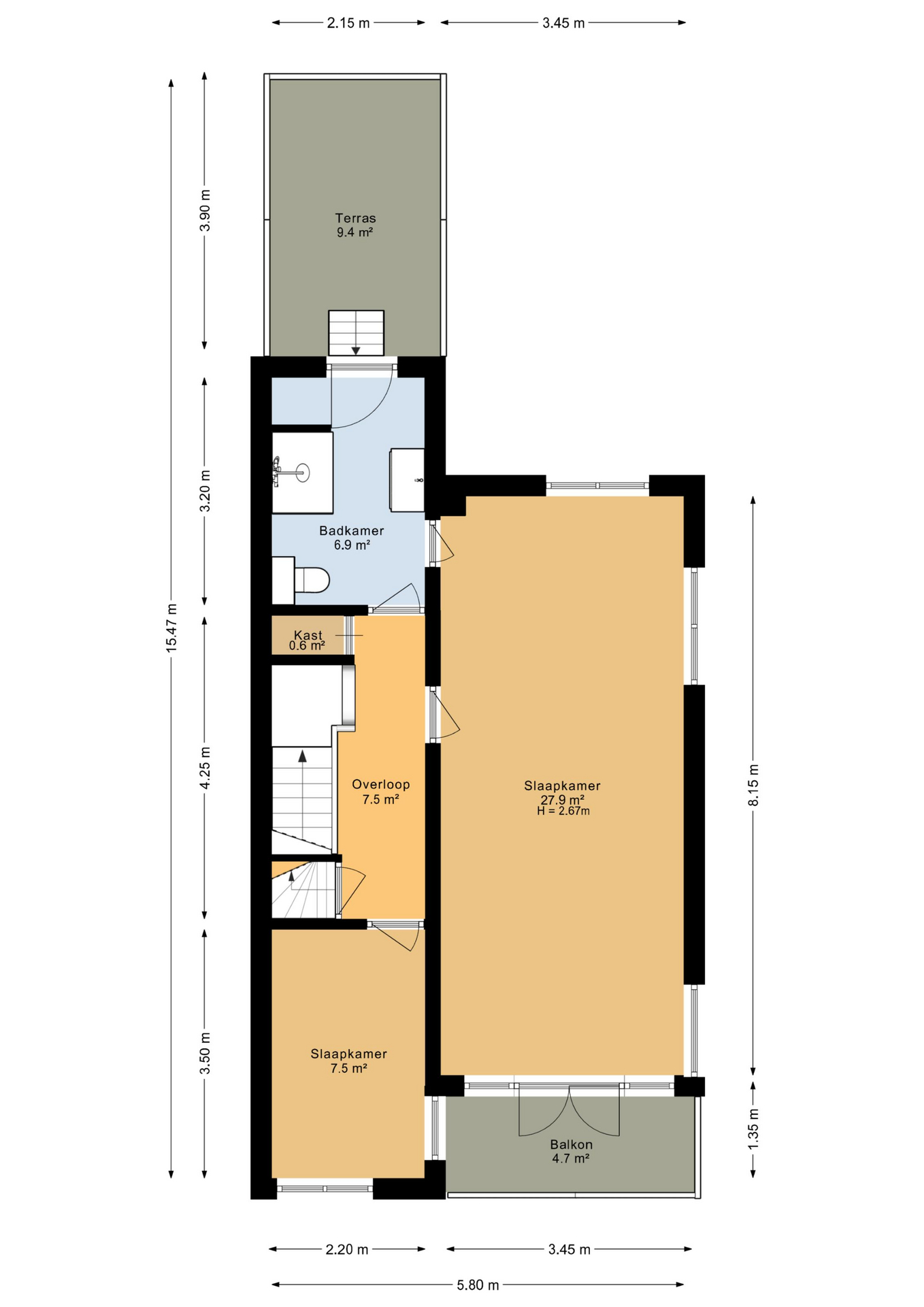 – aan voorzijde gelegen balkon, aan de achterzijde gelegen dakterras