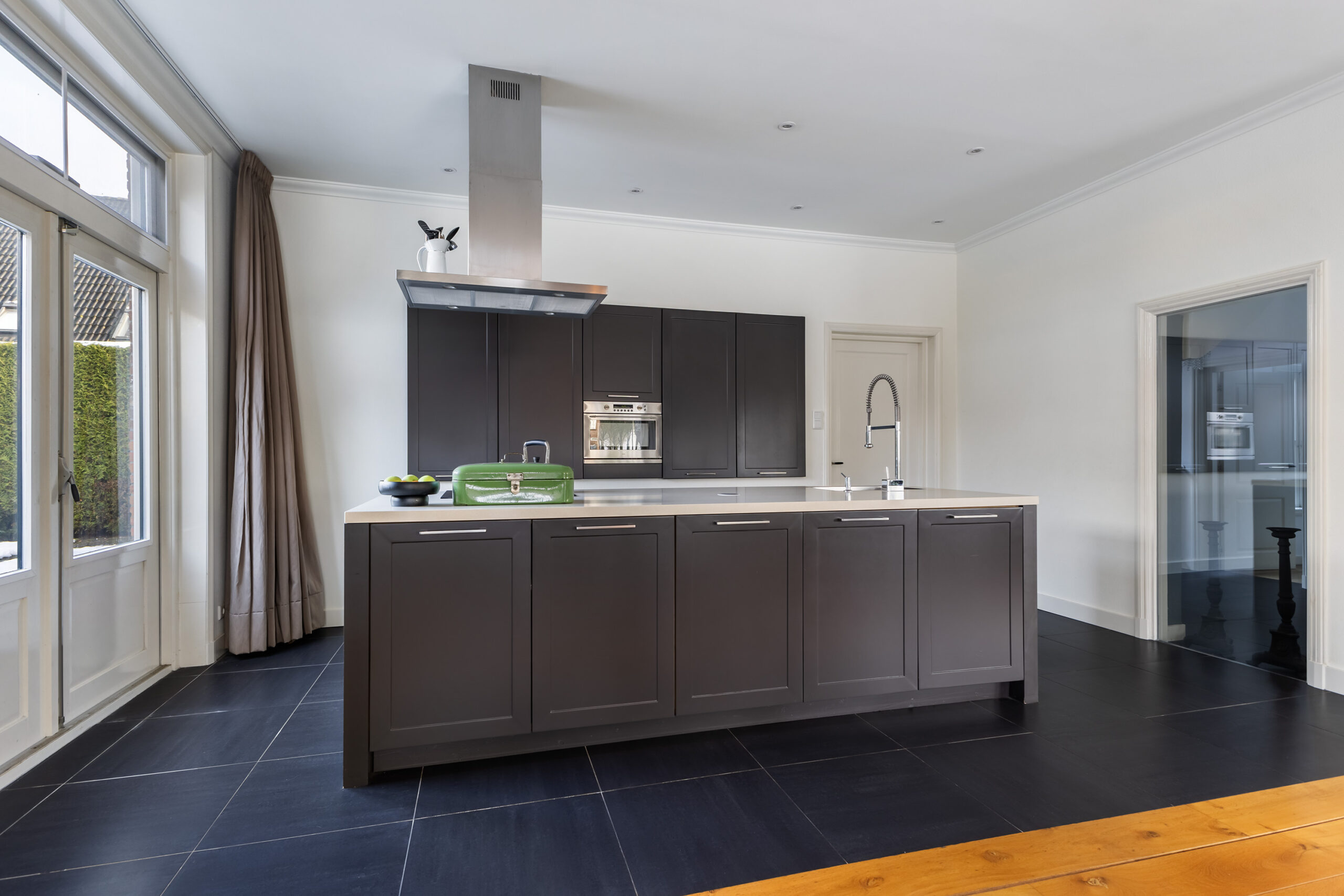 – keuken is voorzien van kook- en spoeleiland, ingebouwde kastenwand en voorzien van diverse inbouwapparatuur