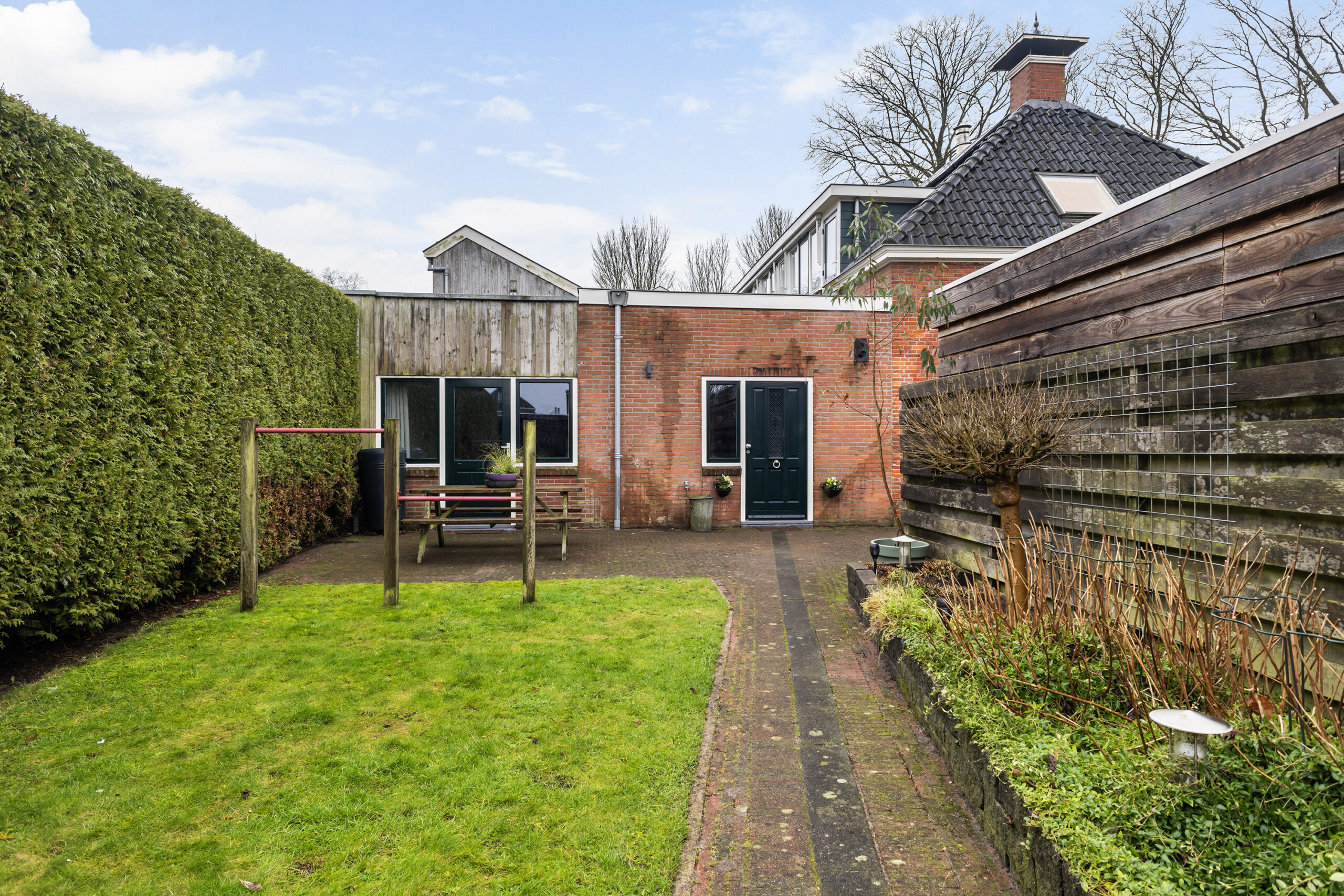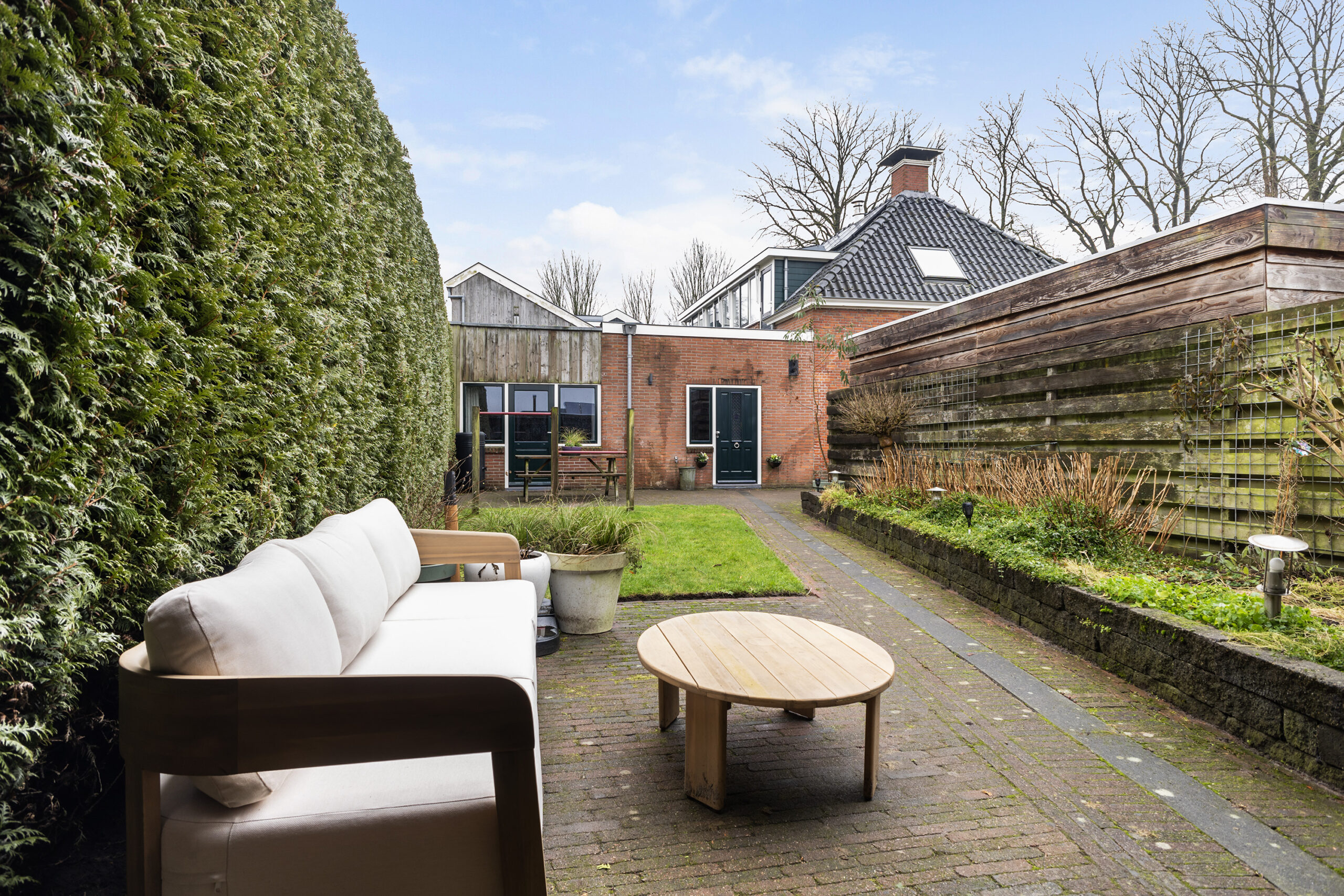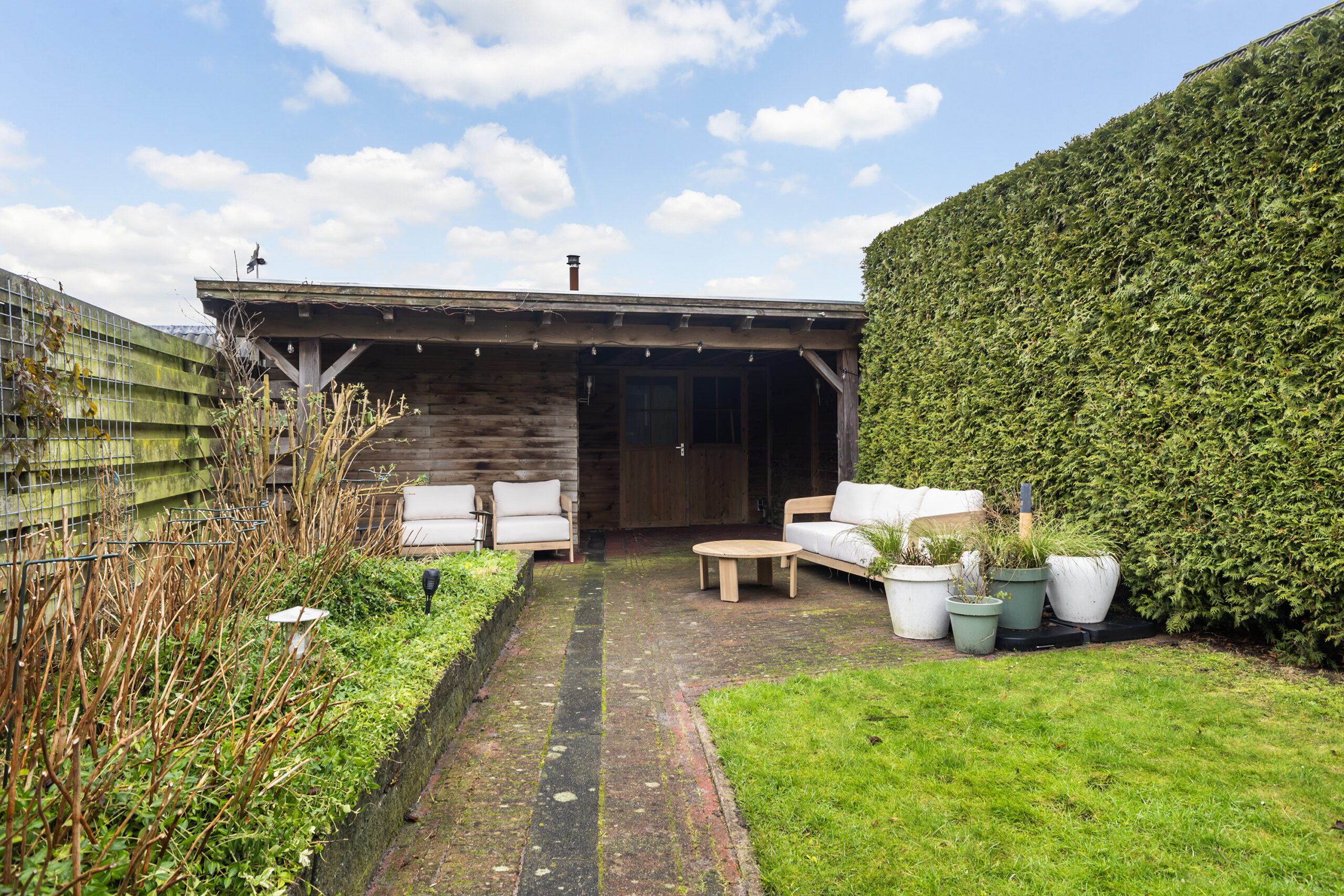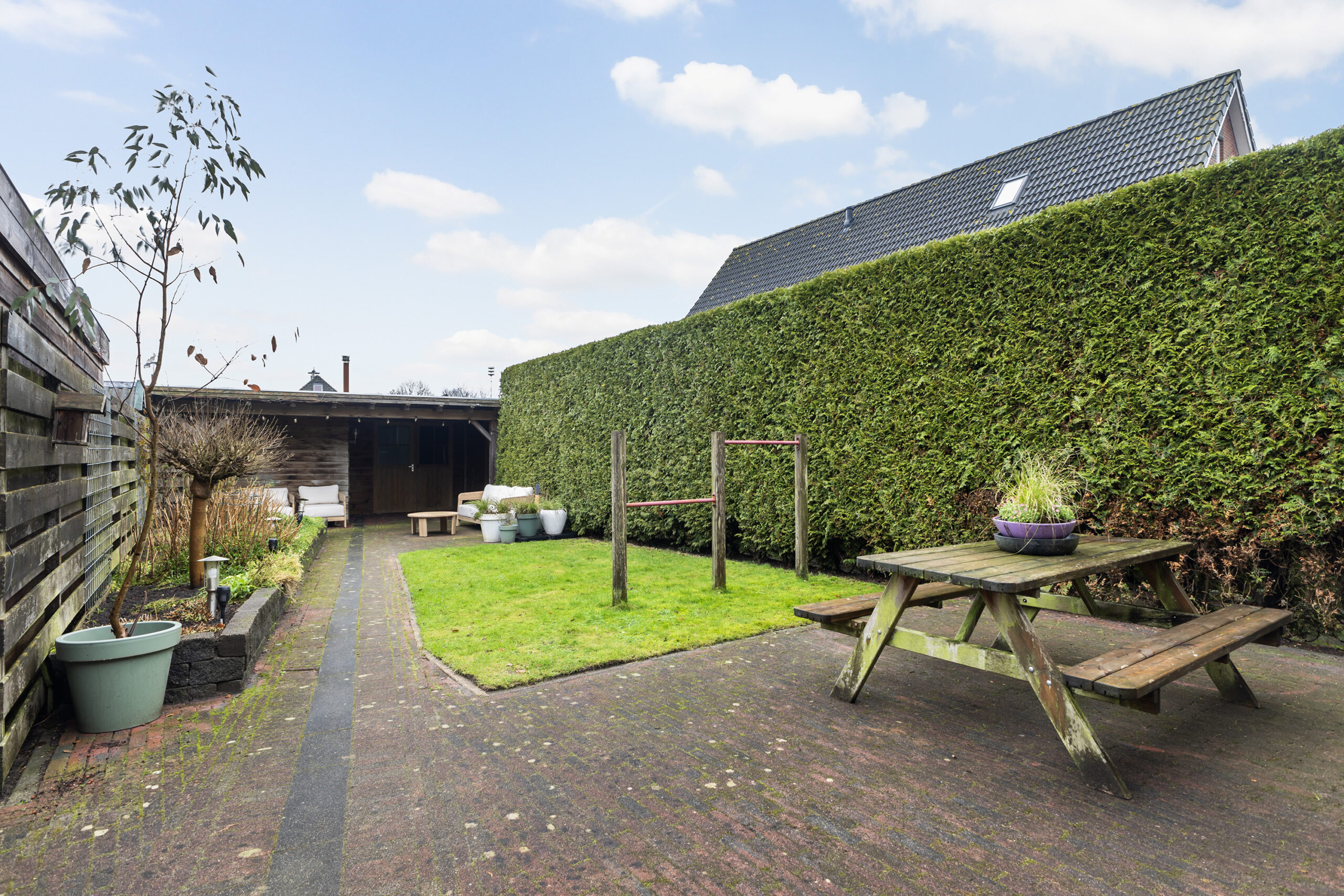 Via de lange oprit, geschikt voor meerdere auto’s, kom je in de zonnige achtertuin met veel privacy en met ruime berging (18 m²). Daarnaast is er nog een patio aanwezig.