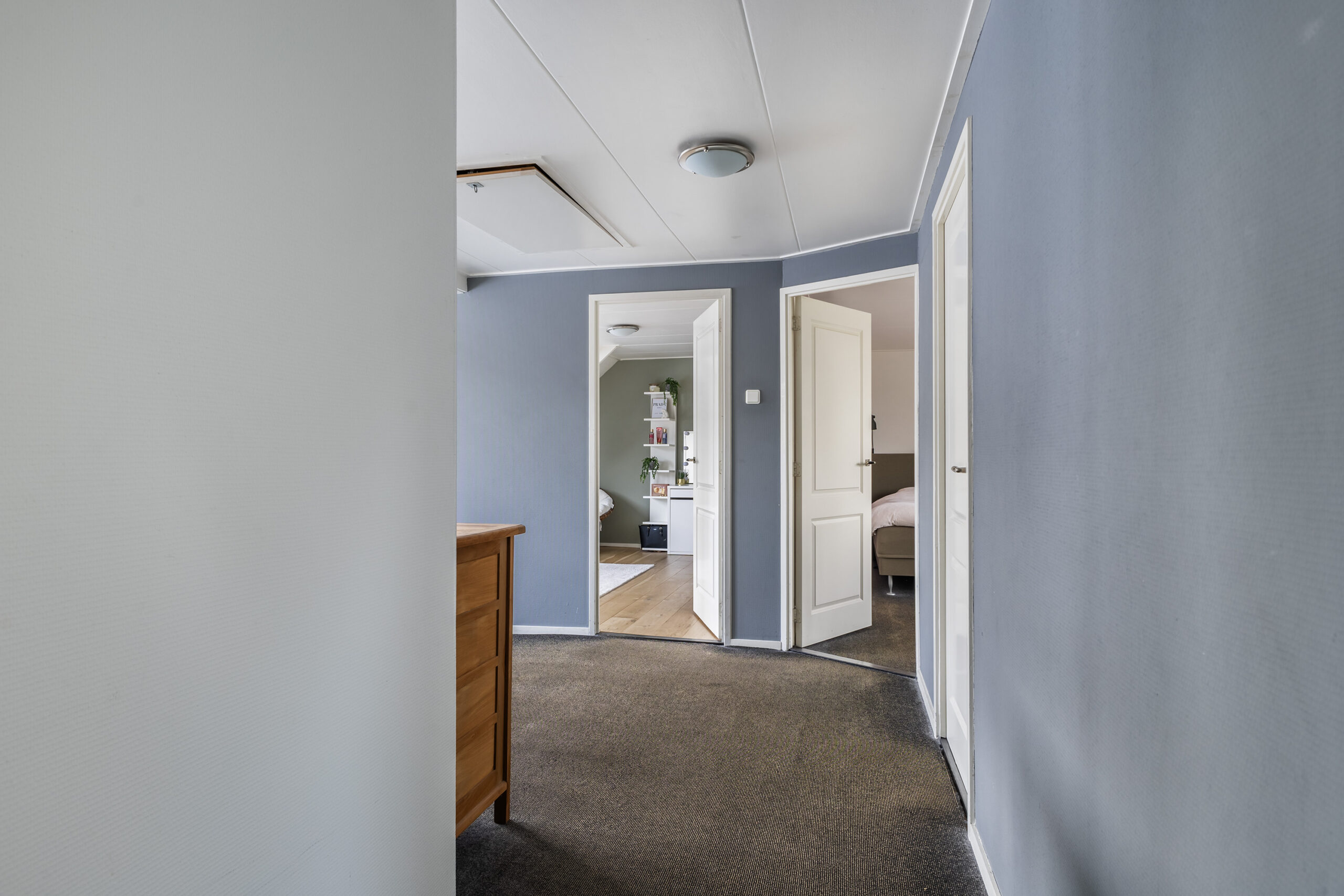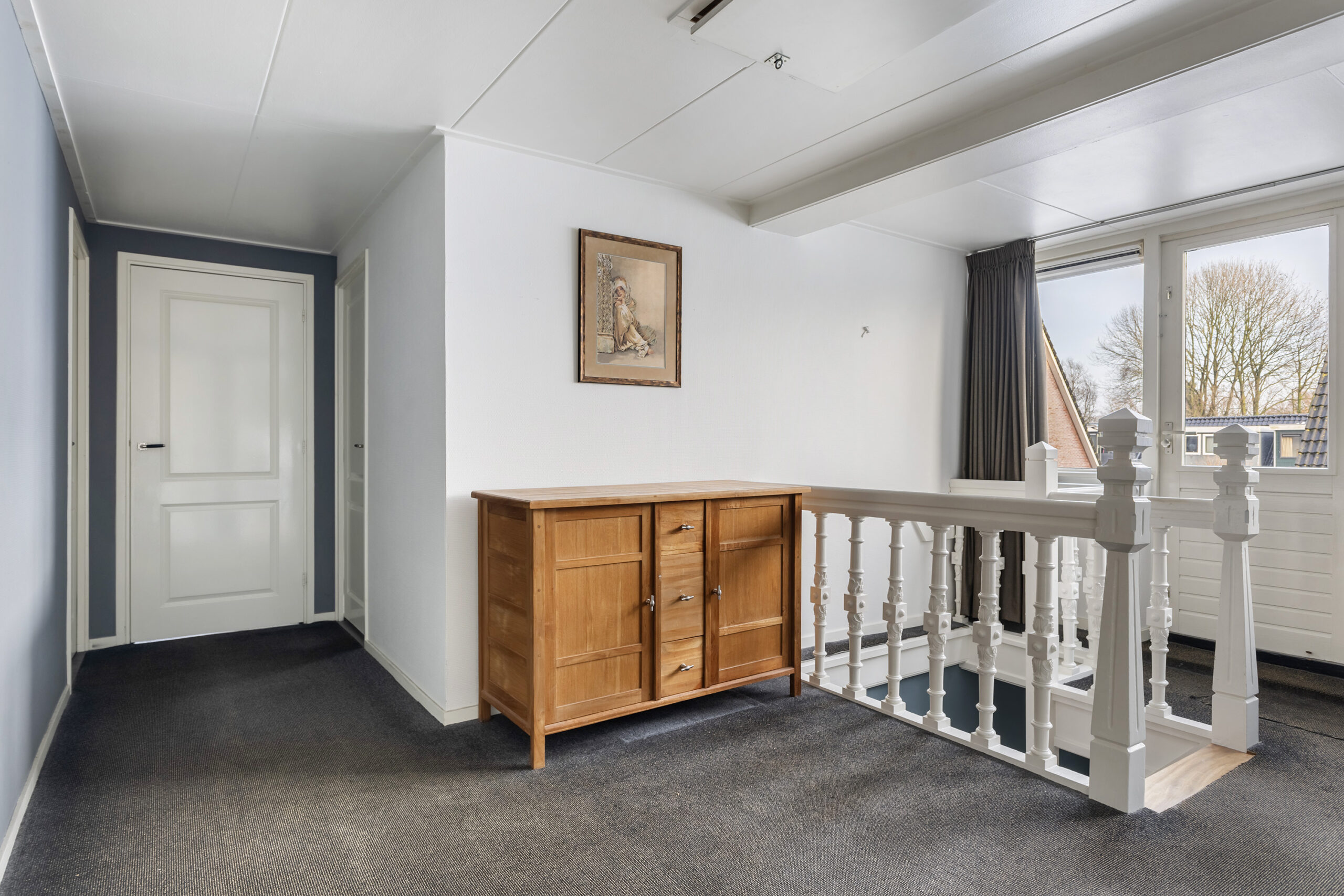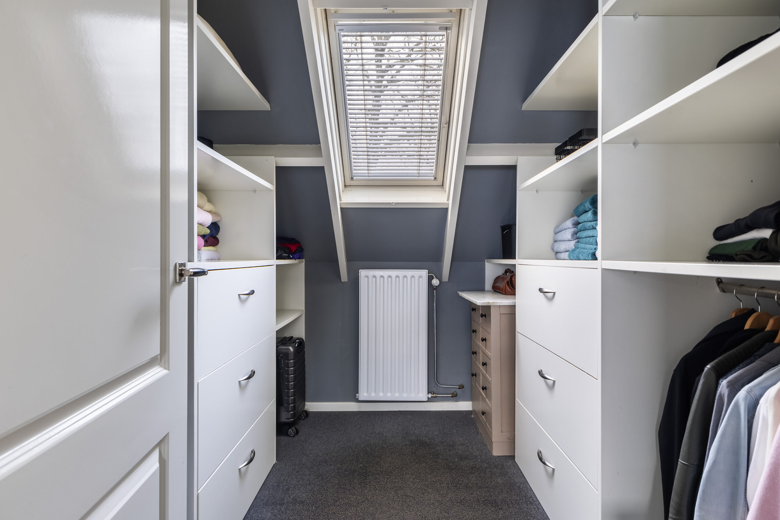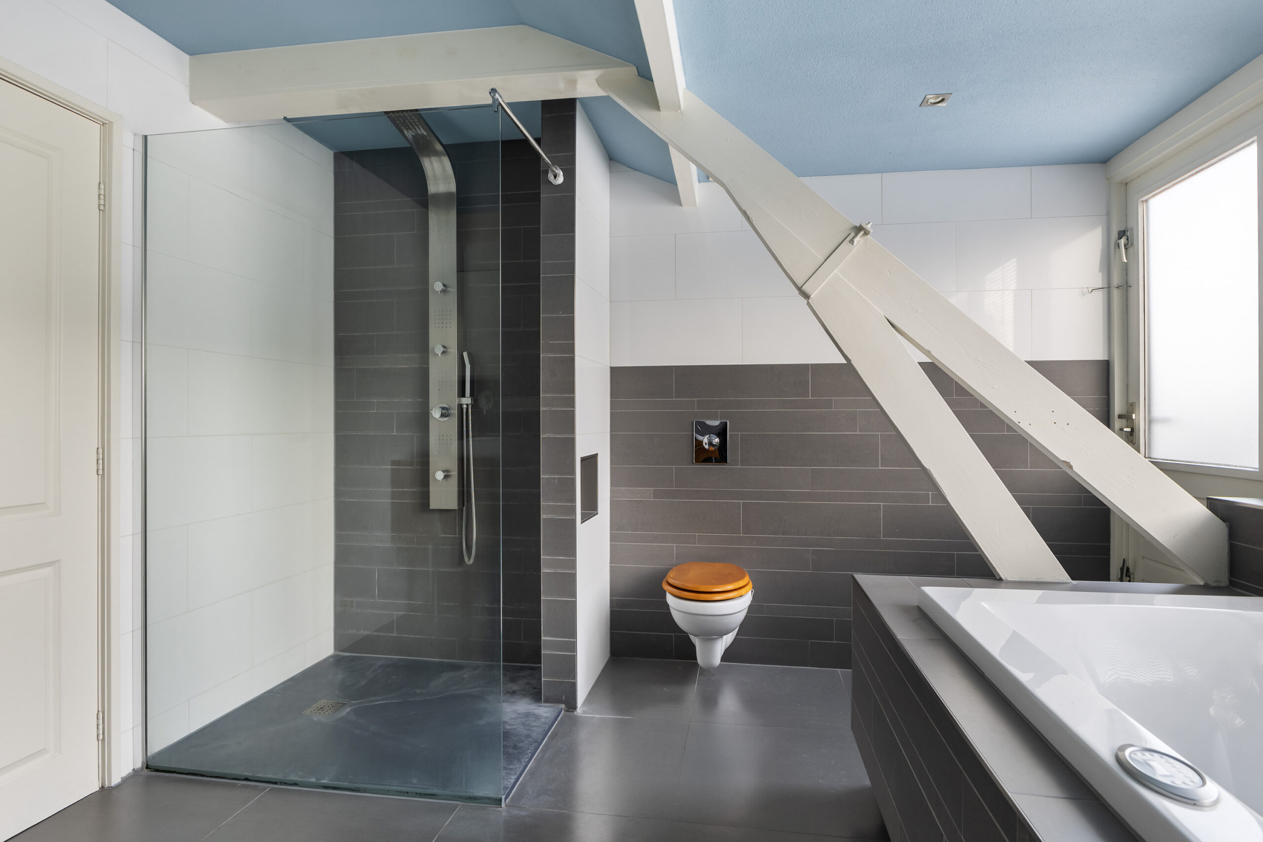 De eerste verdieping telt vier slaapkamers, een inloopkast en een moderne badkamer met bubbelbad, aparte douche, toilet en dubbele wastafel. De bergzolder is bereikbaar via een vlizotrap.