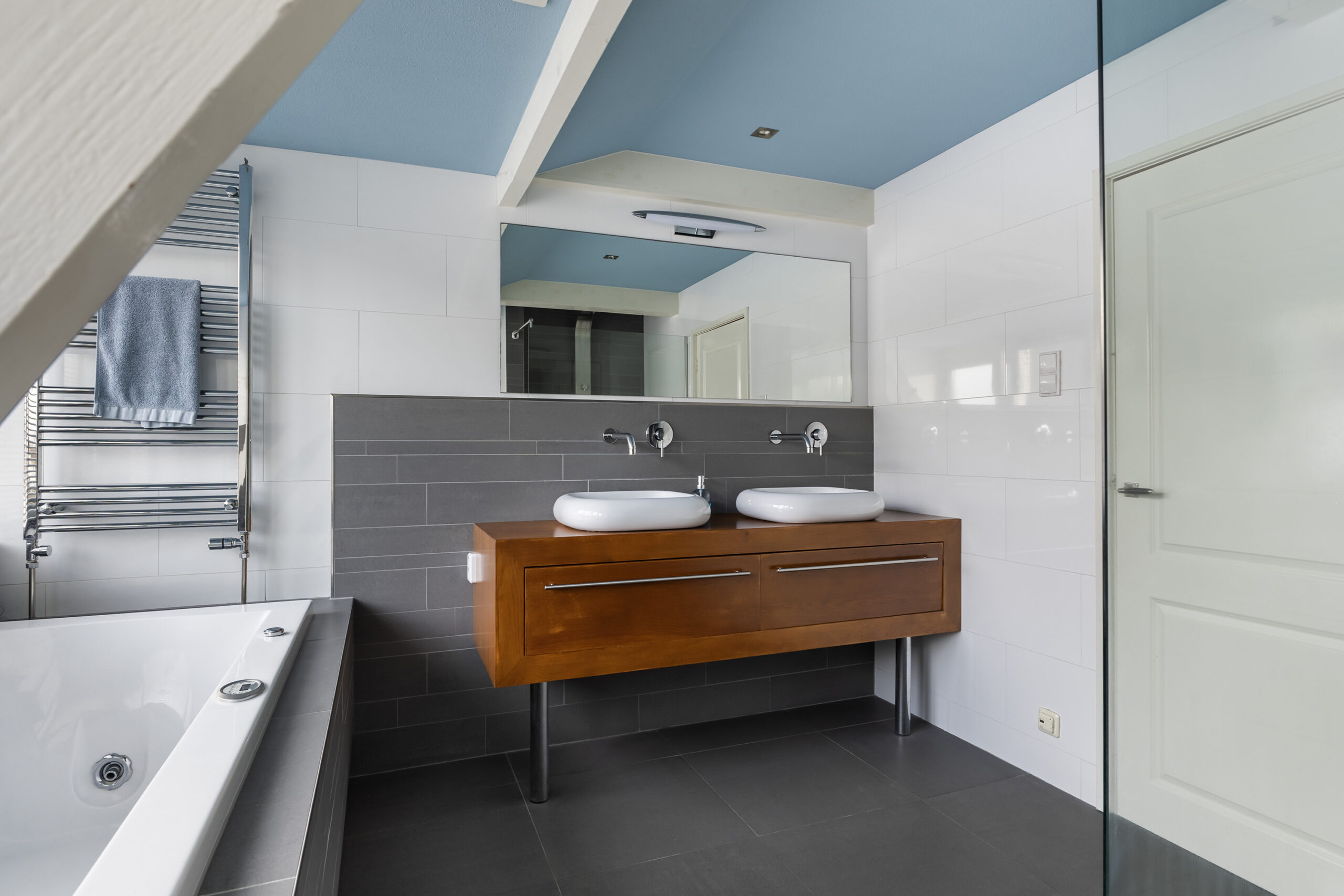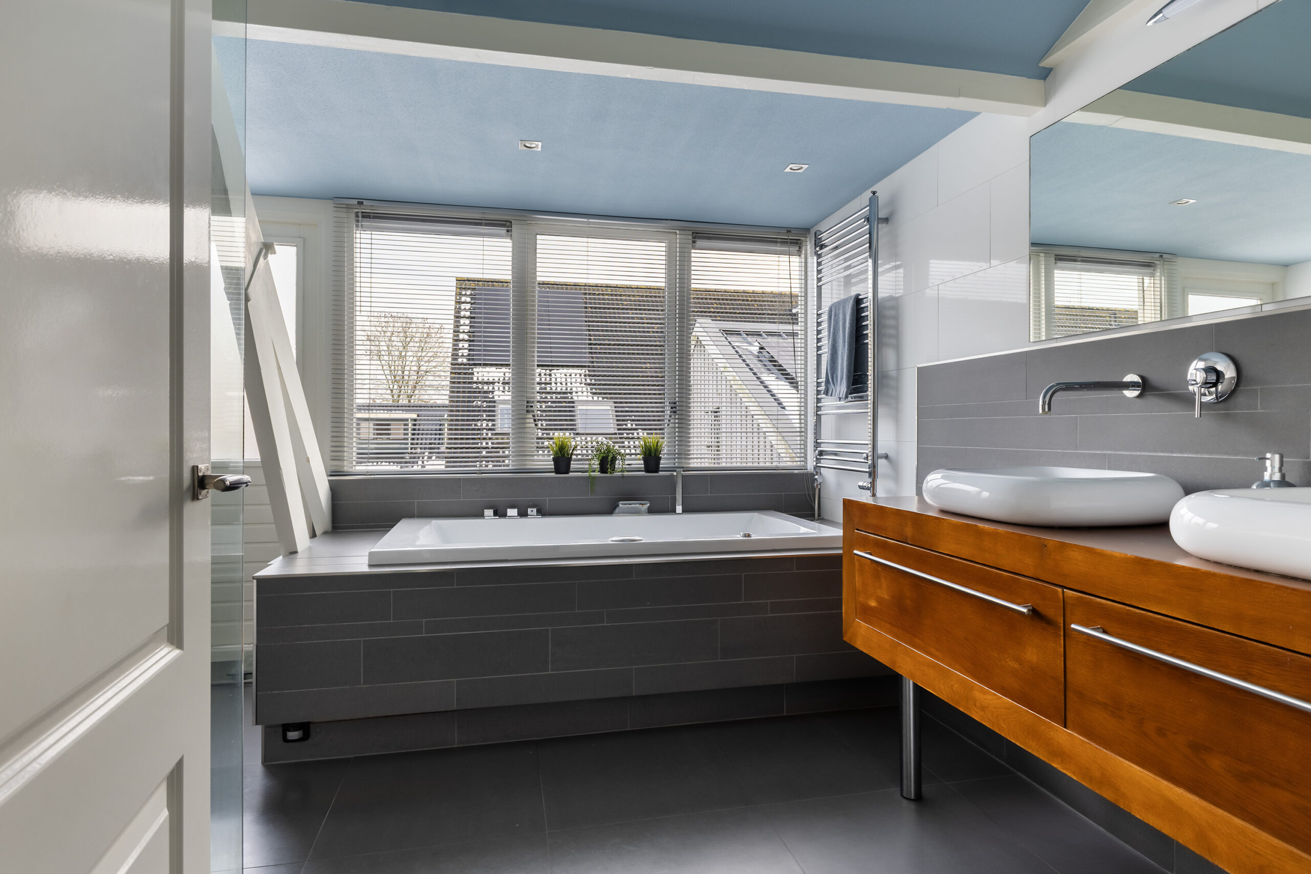 – nette badkamer met diep bubbelbad, inloopdouche, dubbele wastafel met wastafelmeubel en toilet