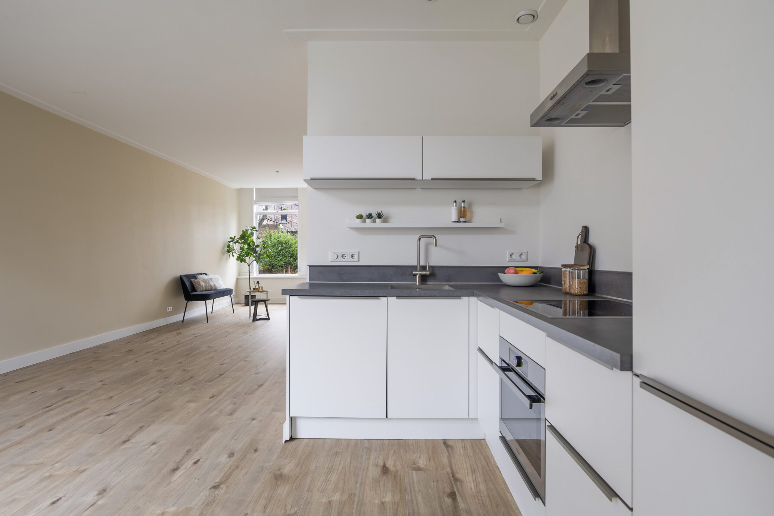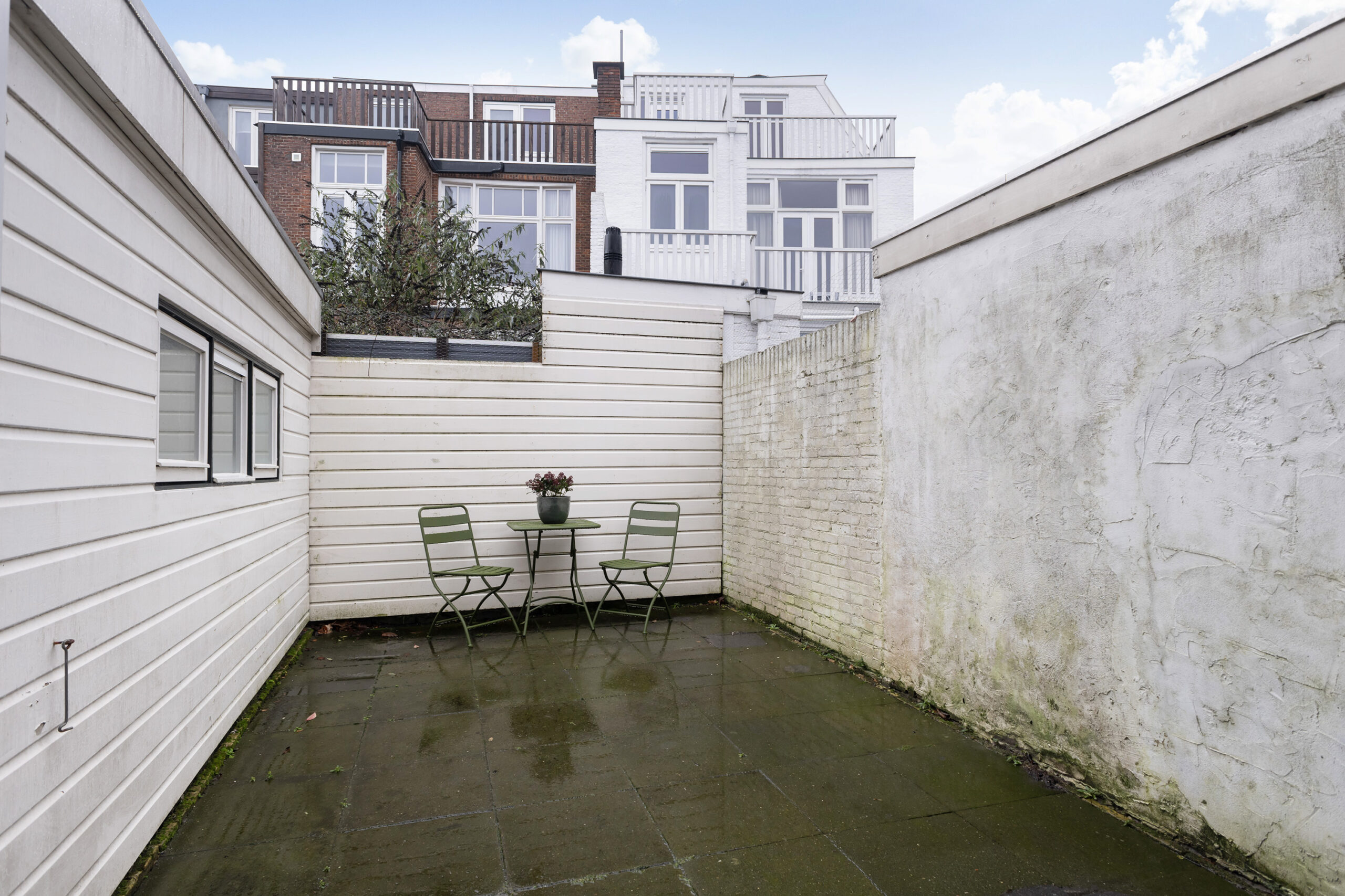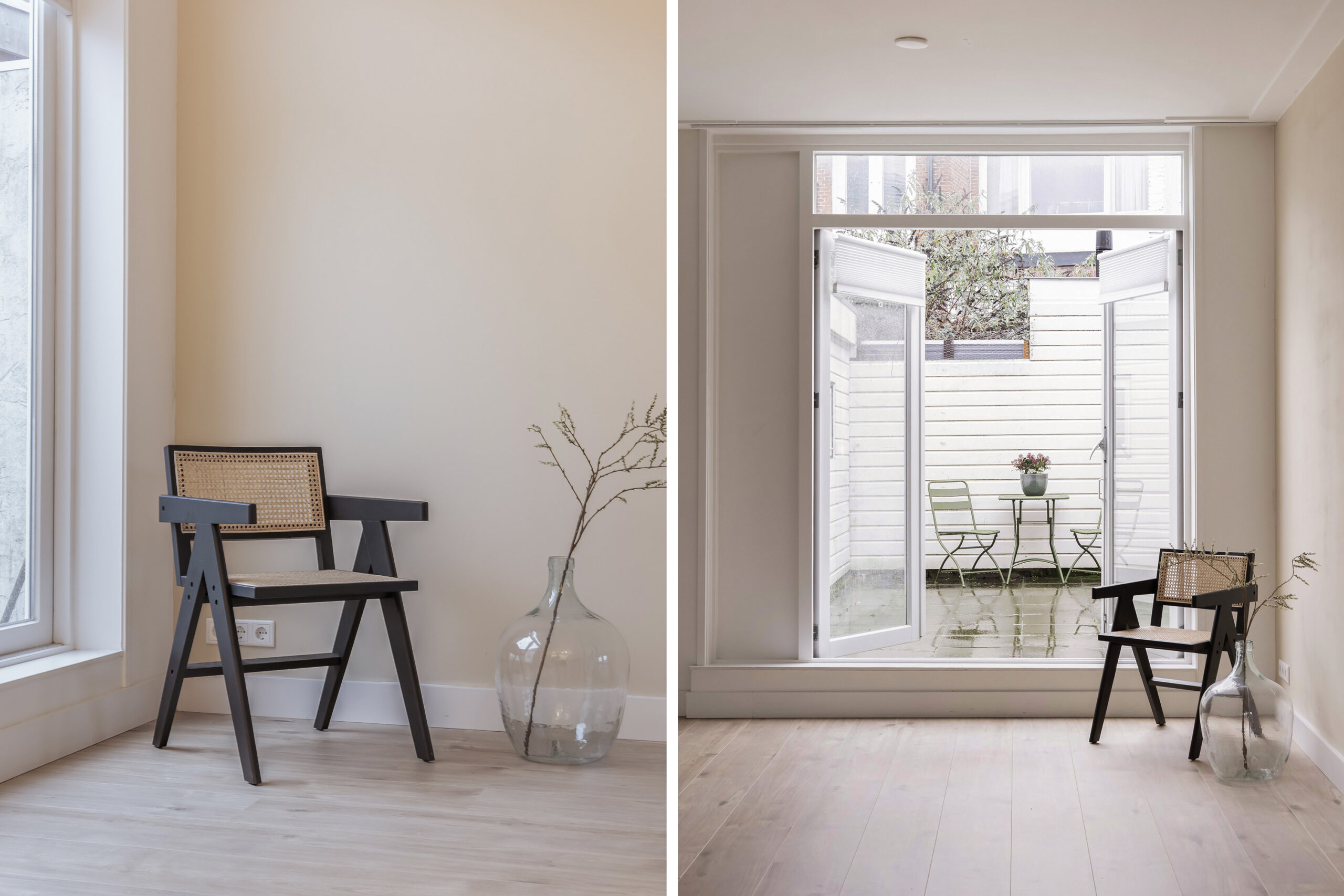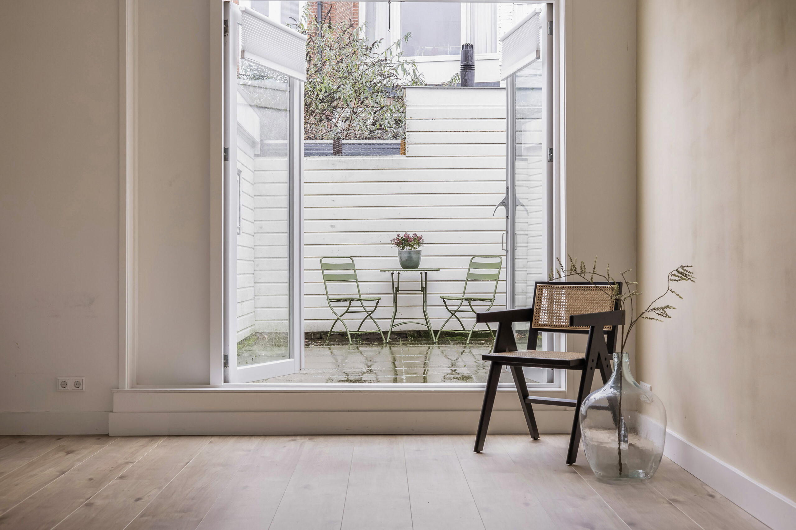 De stadstuin is middels openslaande deuren in de woonkamer en via de ruimte achter de keuken toegankelijk.