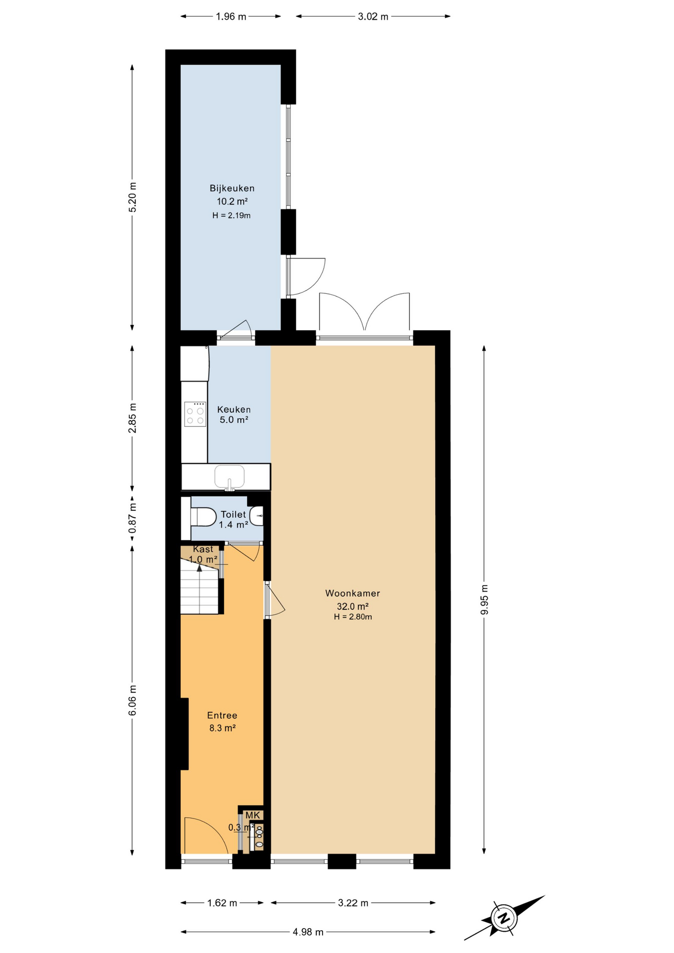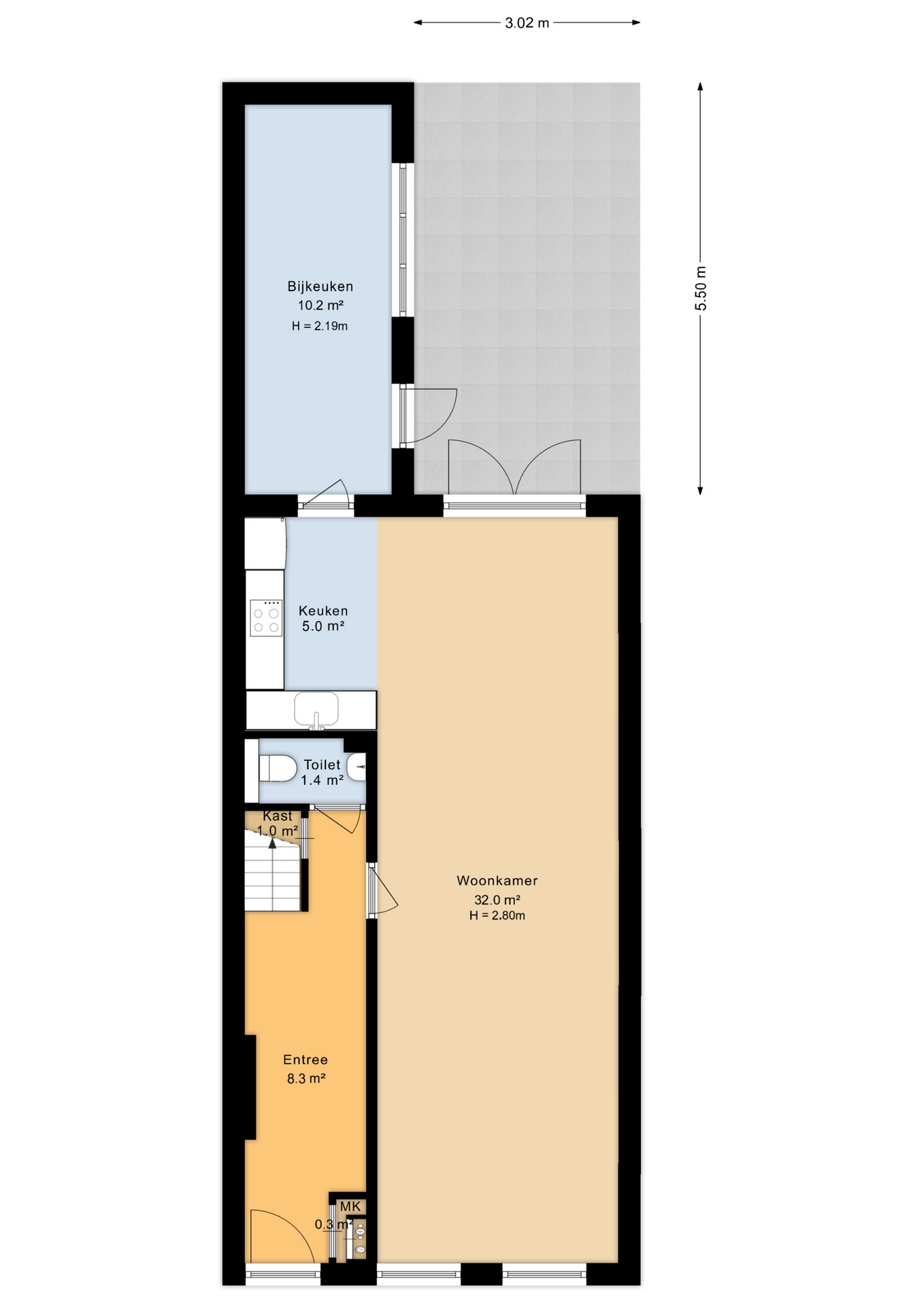 – knusse stadstuin toegankelijk via de openslaande deuren in de woonkamer en vanuit de bijkeuken