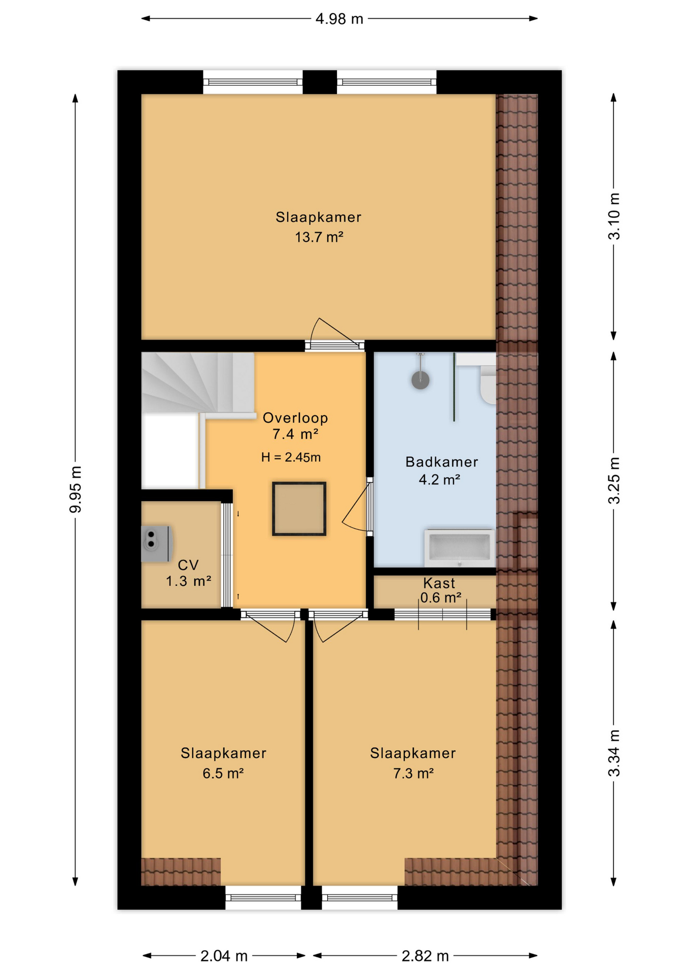 Op de eerste verdieping bevinden zich drie slaapkamers, waarvan één is voorzien van een handige inbouwkast.