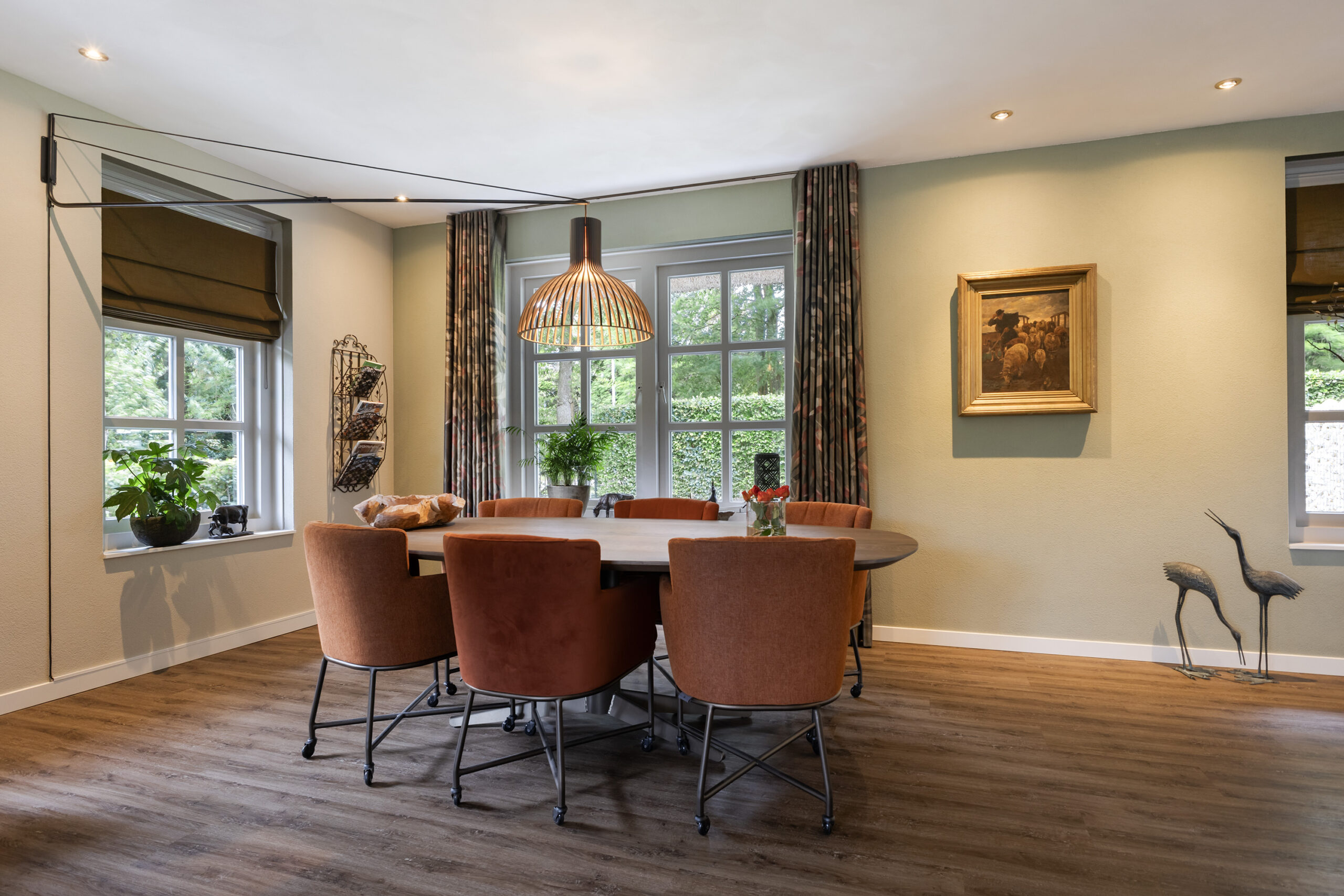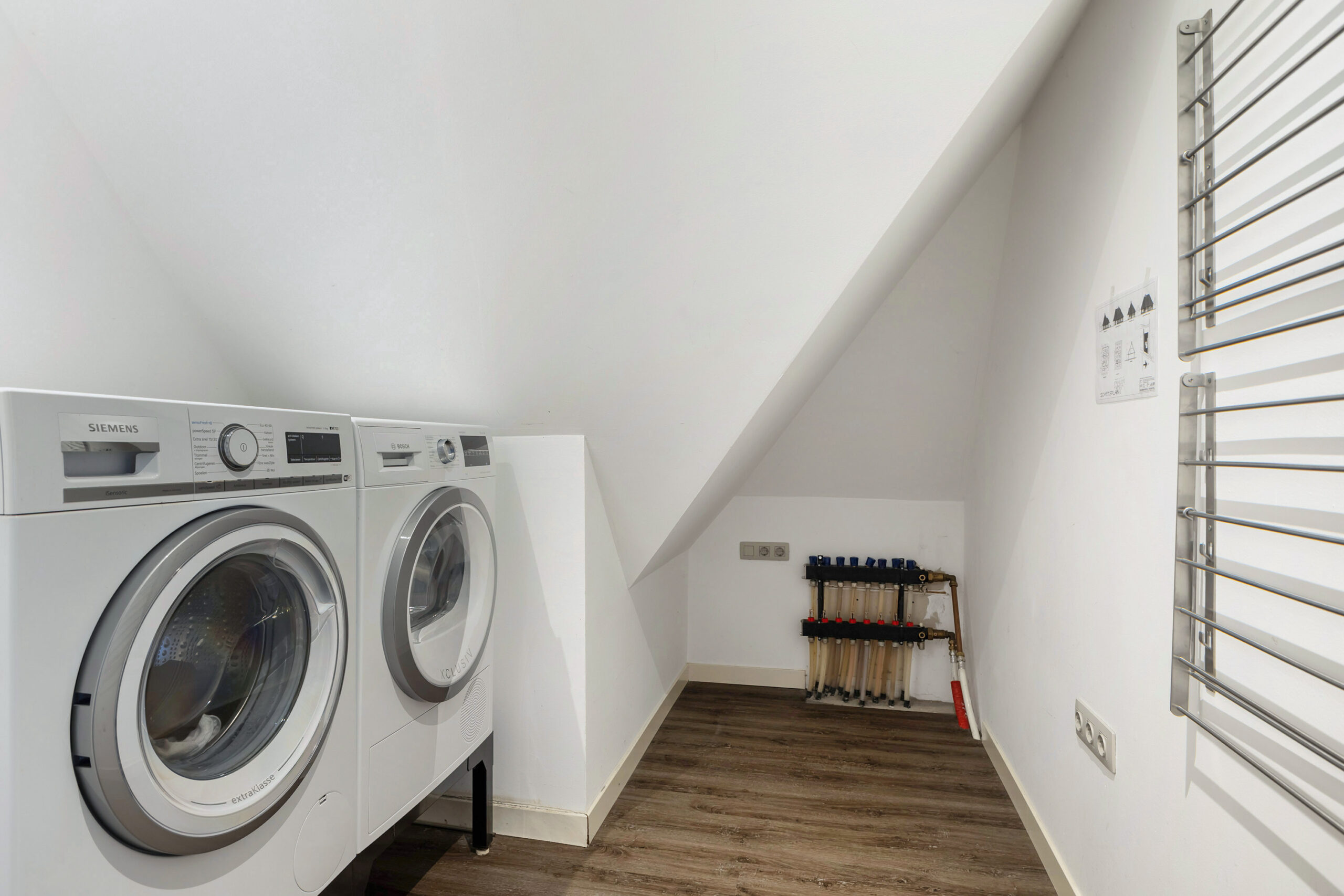 De levensstijl is hier duurzaam en toekomstbestendig, met energielabel A+++, volledige vloerverwarming, twee luchtwarmtepompen en 36 zonnepanelen. Ook het volledig geïsoleerde bijgebouw met toilet en kitchenette beschikt over vloerverwarming en grenst aan een ruime garage met open vide.