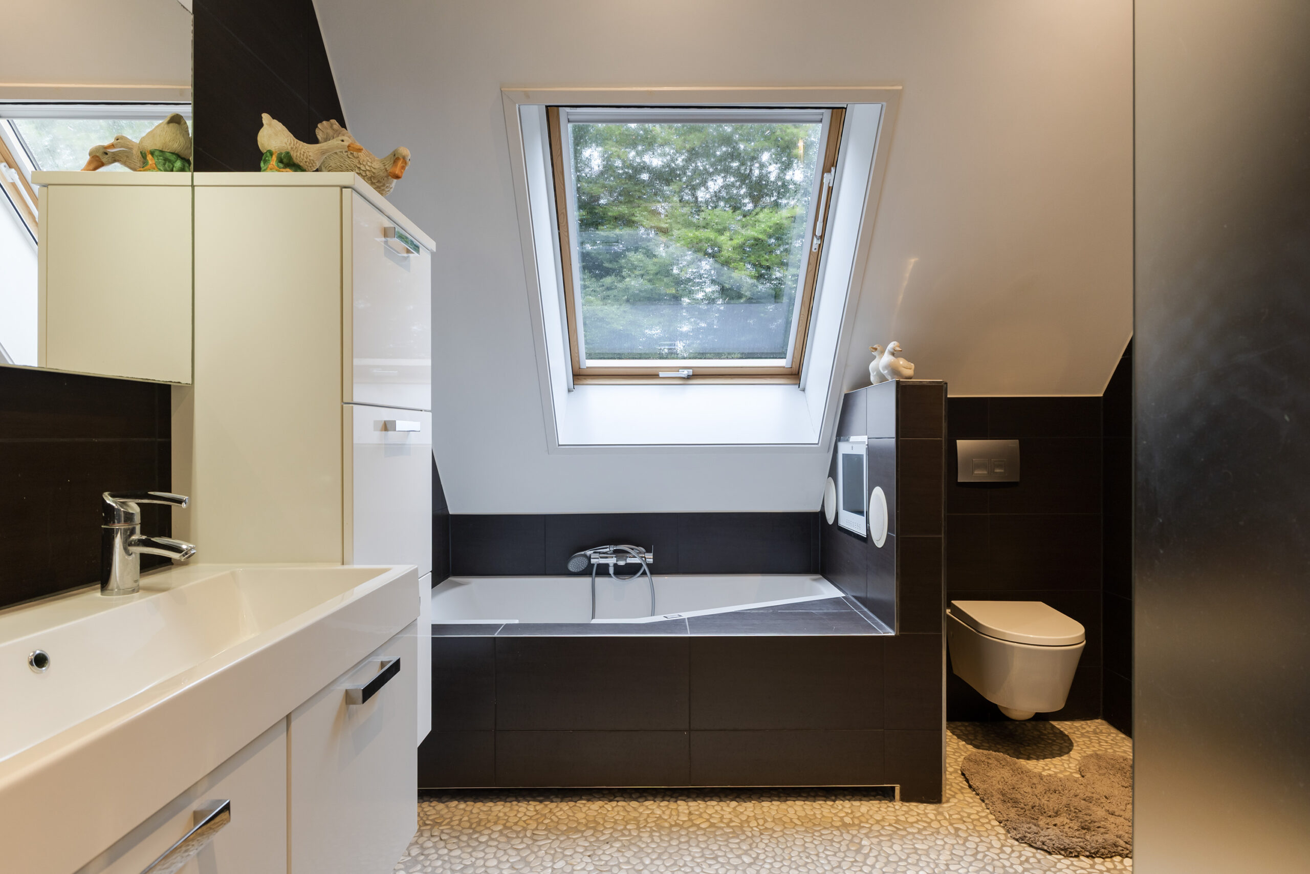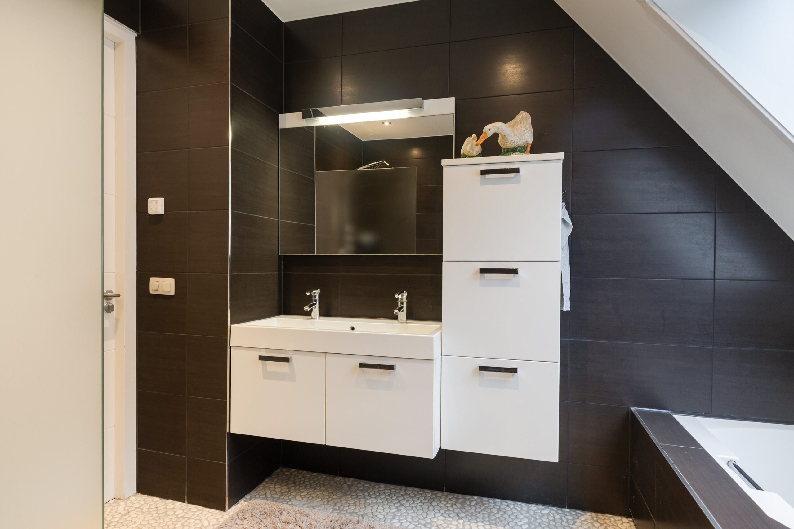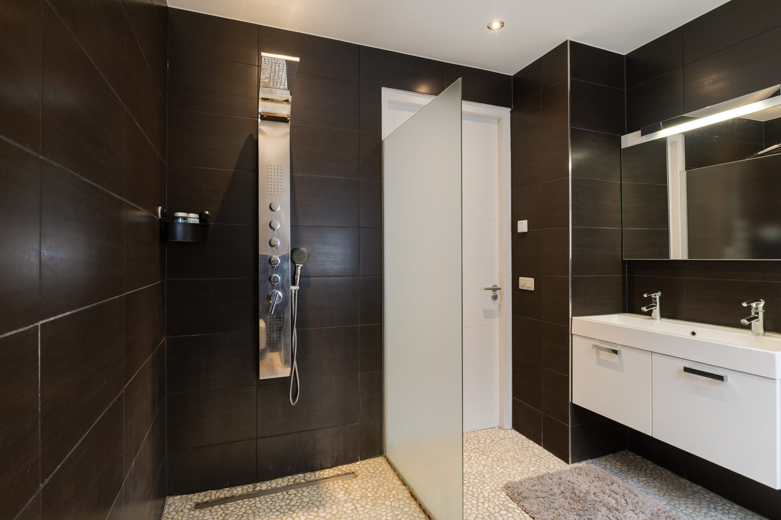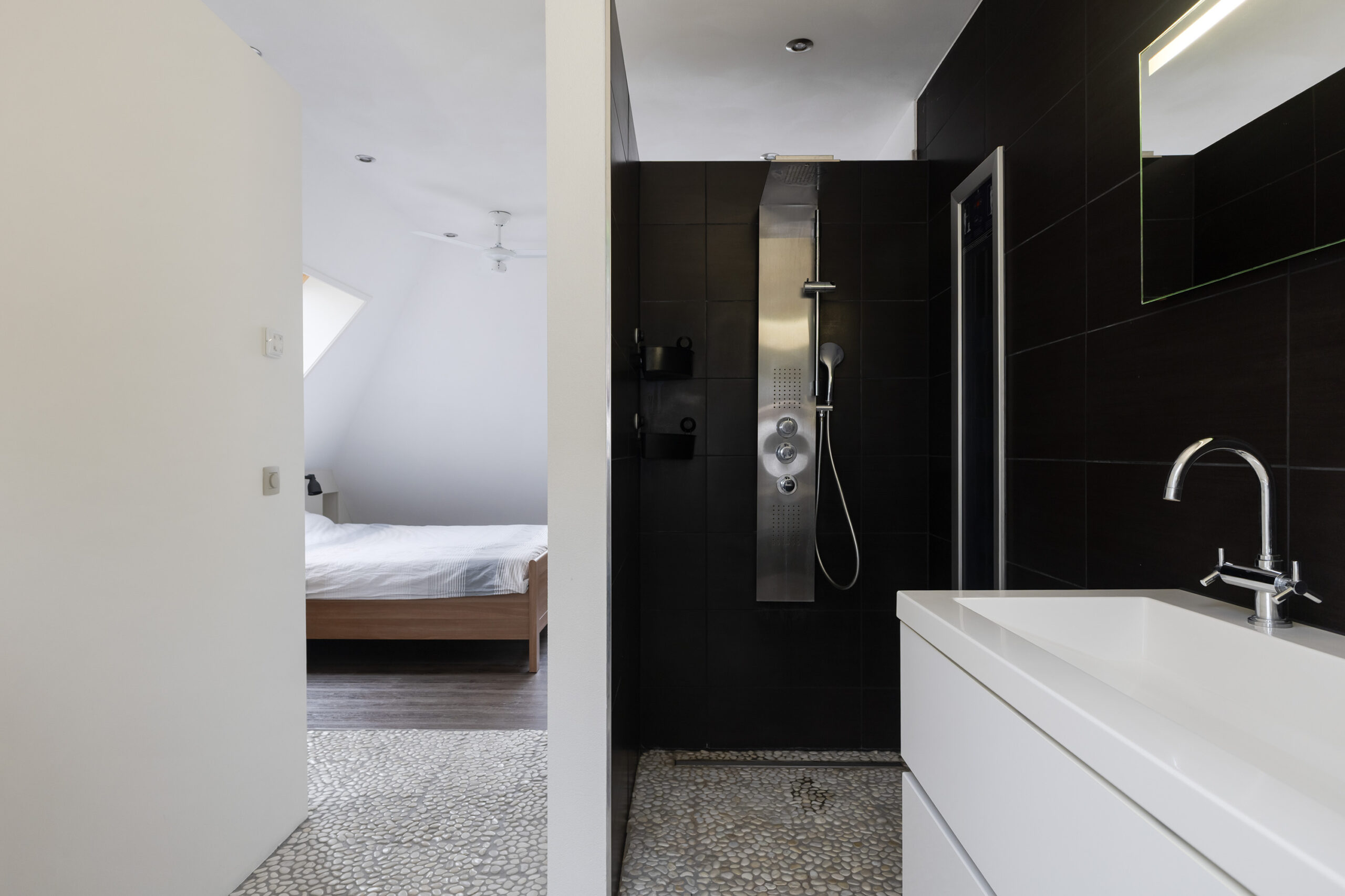 De grootste slaapkamer (15 m²) ligt aan de achterzijde en beschikt over inloopkledingkast een badkamer en-suite, voorzien van een inloopdouche met infraroodpaneel (sun shower), dubbele wastafel met meubel, toiletkast en toilet. De tweede badkamer is bereikbaar via de overloop en beschikt over een ligbad, inloopdouche, dubbele wastafel met meubel, toiletkast en toilet.