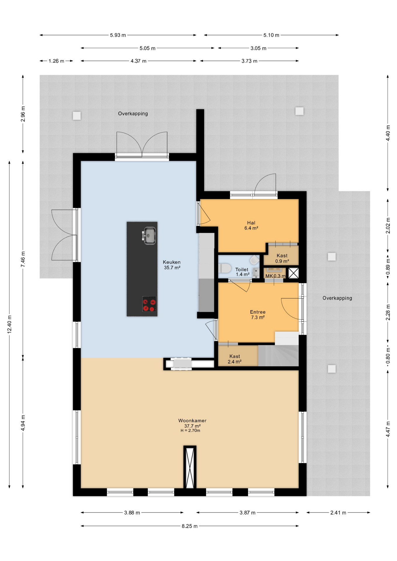 – volledig geïsoleerd bijgebouw met aangrenzende royale garage