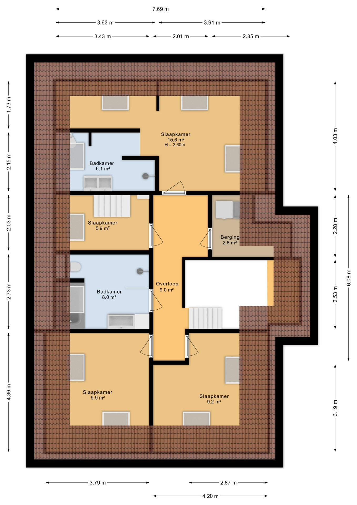 De zolderverdieping heeft een stahoogte van 2,27 meter, is voorzien van een dakraam en biedt volop bergruimte. Dankzij de ruime opzet is deze verdieping ook uitstekend geschikt voor het creëren van een extra slaapkamer.