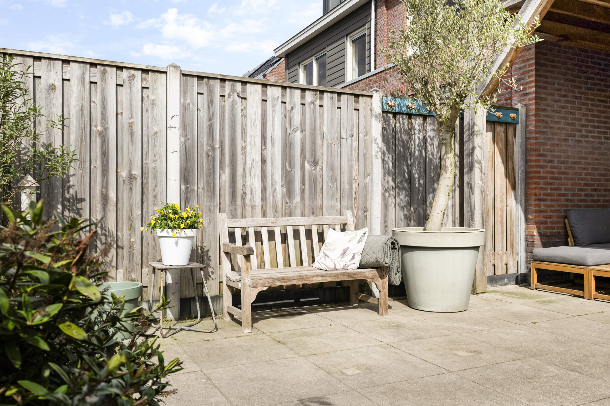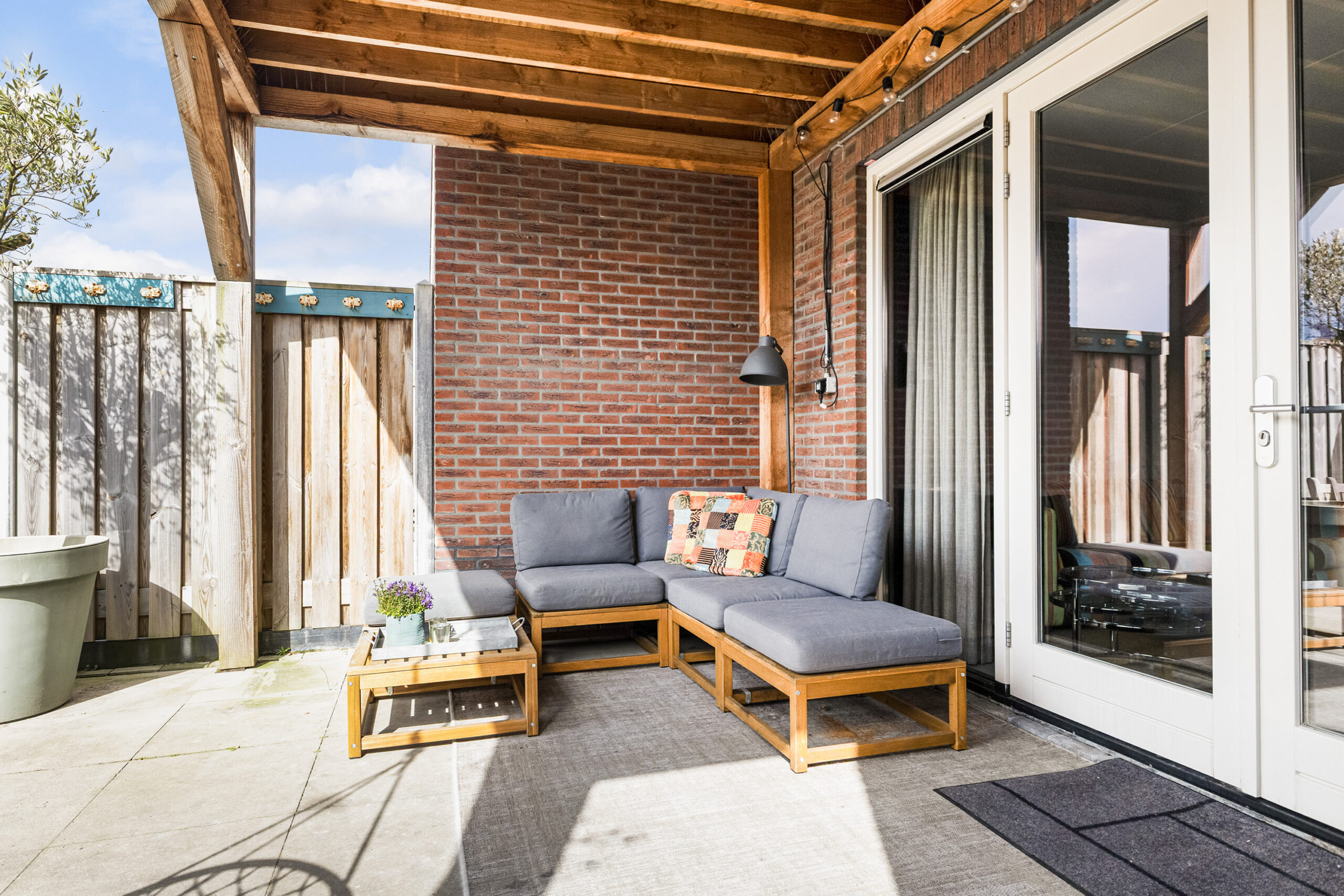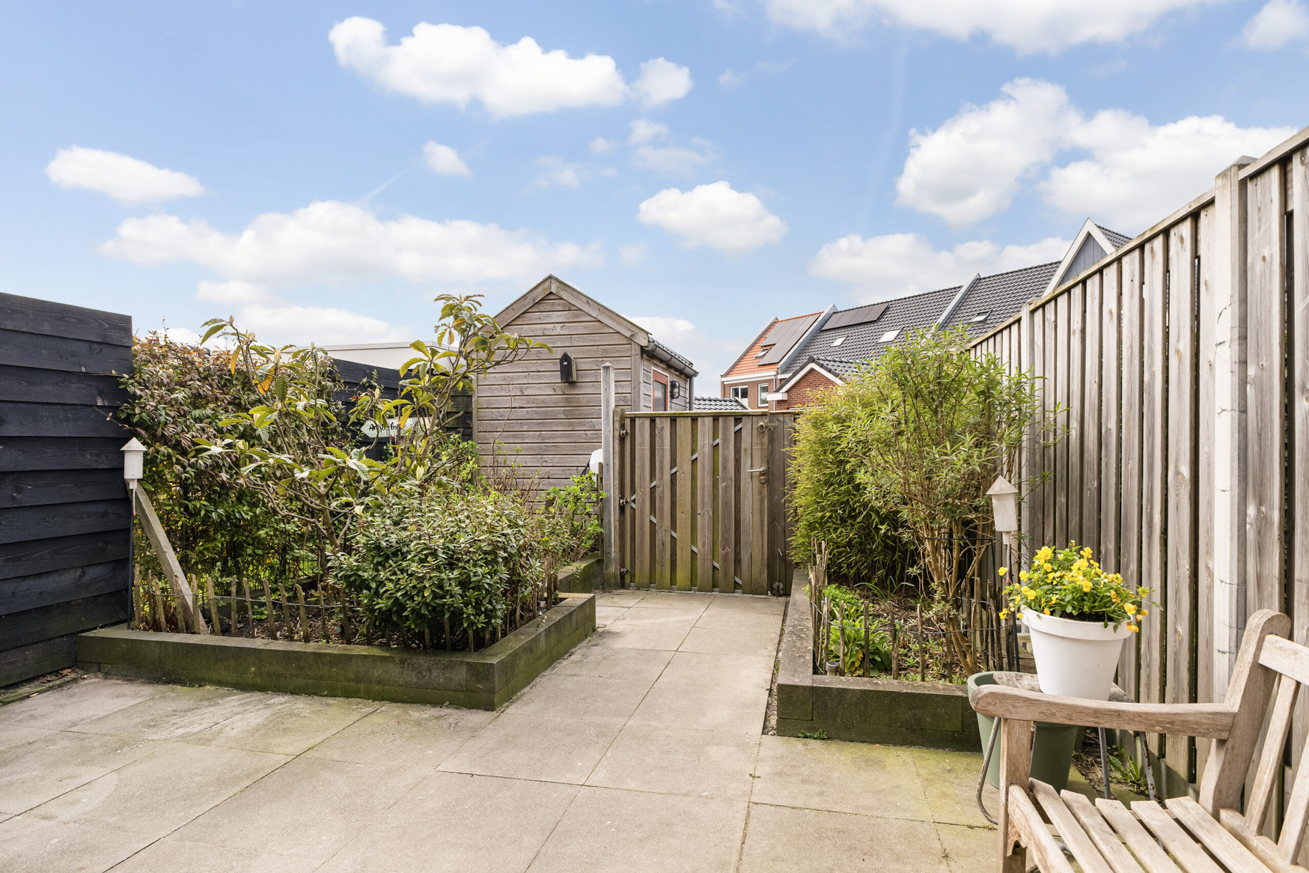 – zonnige achtertuin met royale overkapping, vrijstaande houten berging en een eigen parkeerplaats
