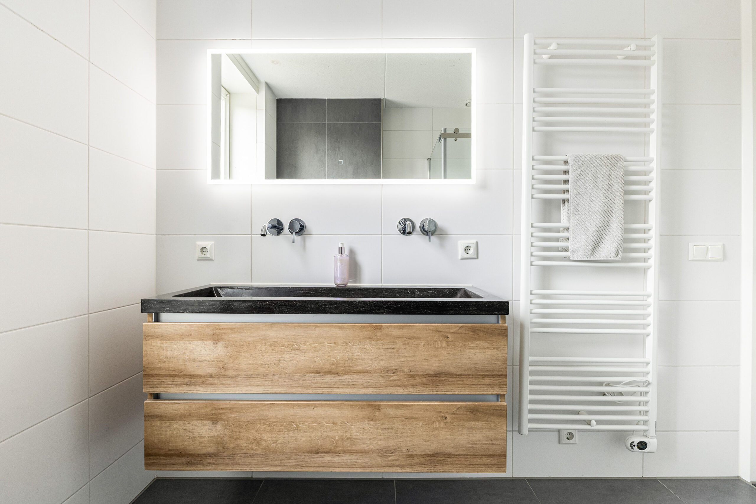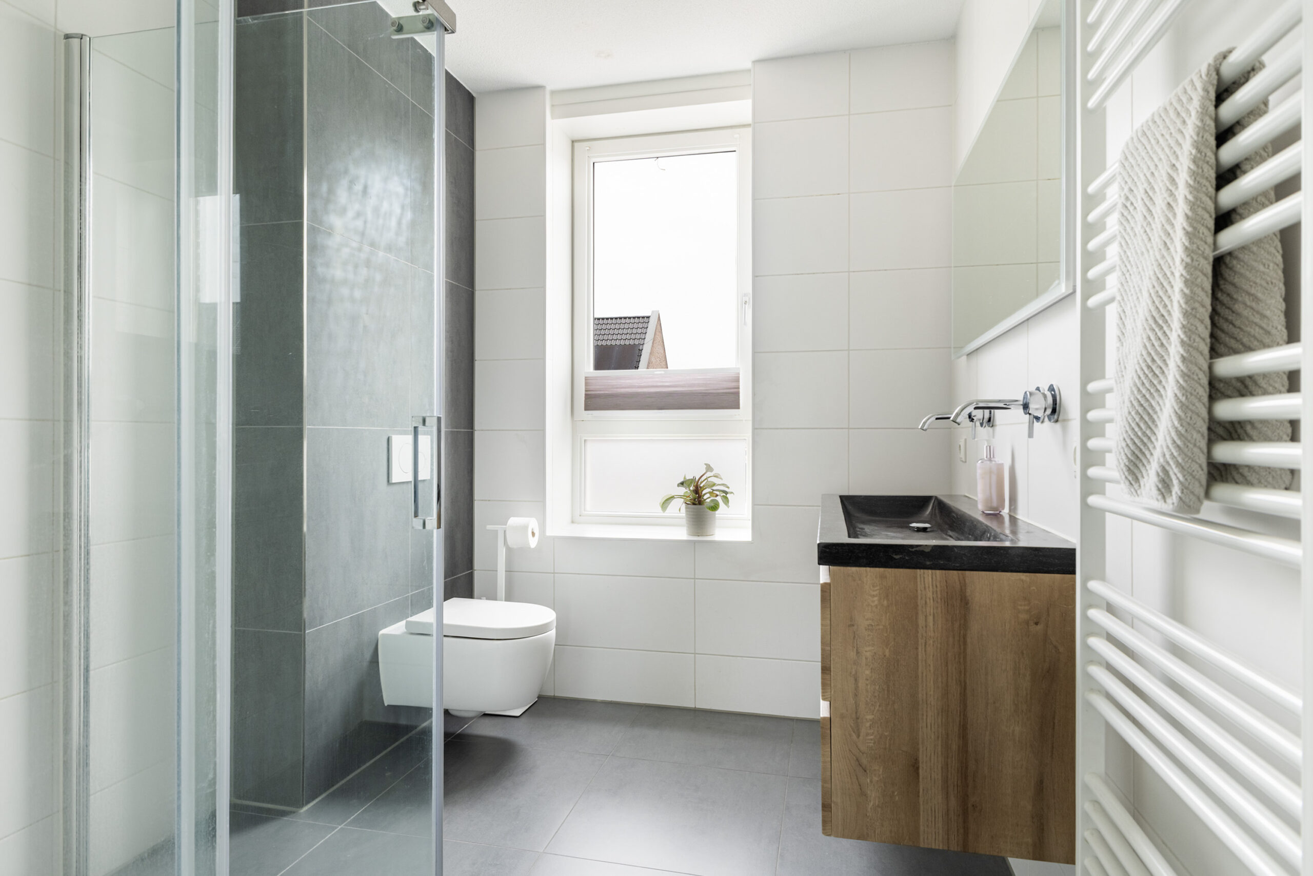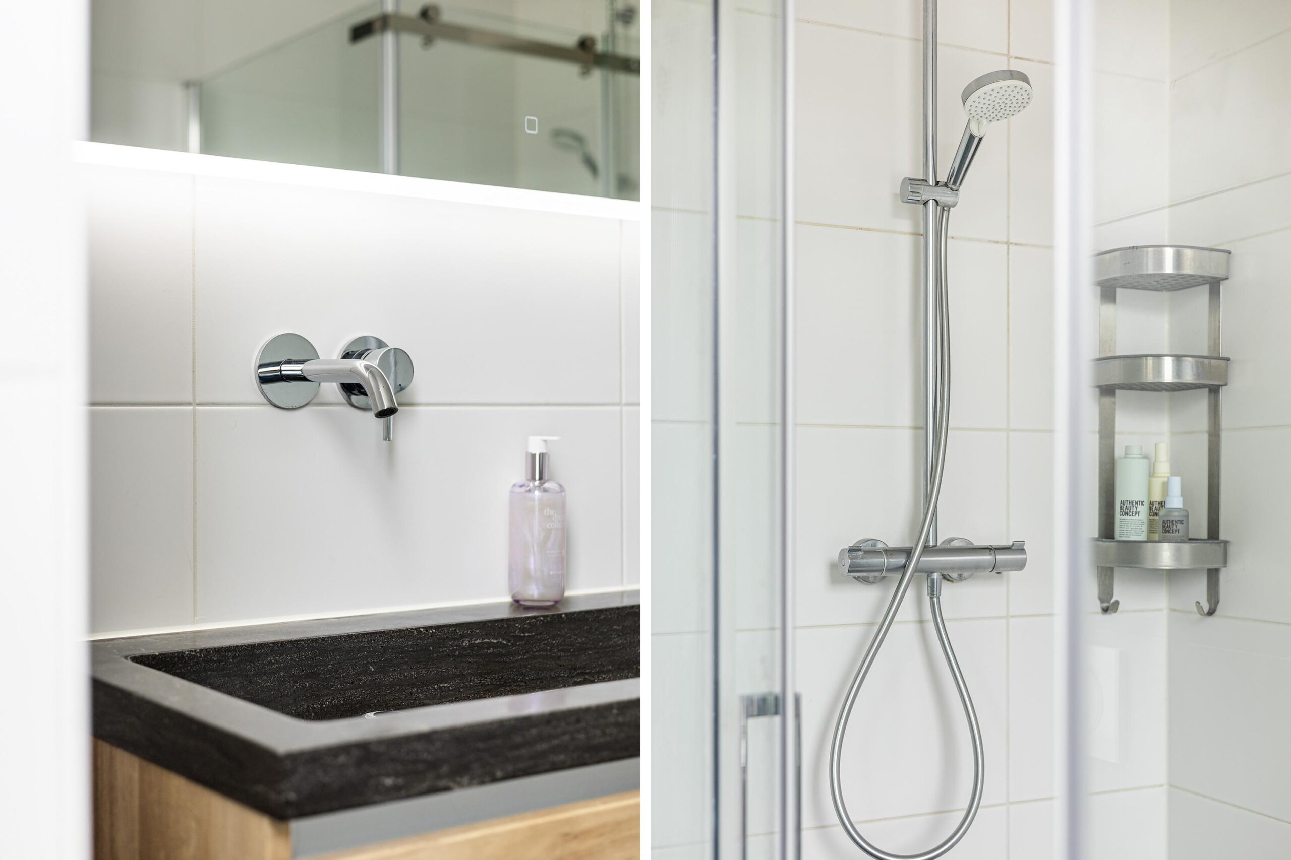 – moderne badkamer met douche, 2e toilet en dubbel wastafelmeubel
