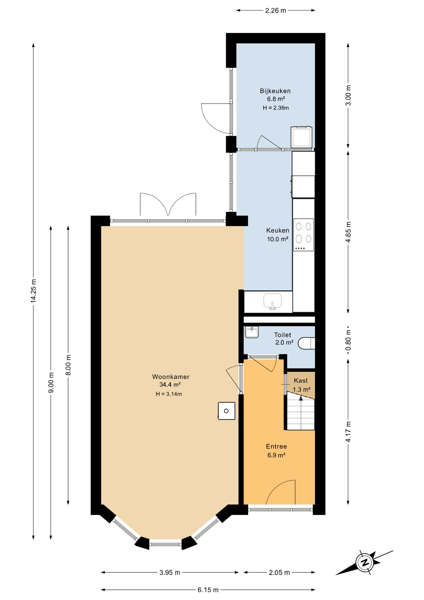 – openkeuken met diverse inbouwapparatuur en achtergelegen bijkeuken