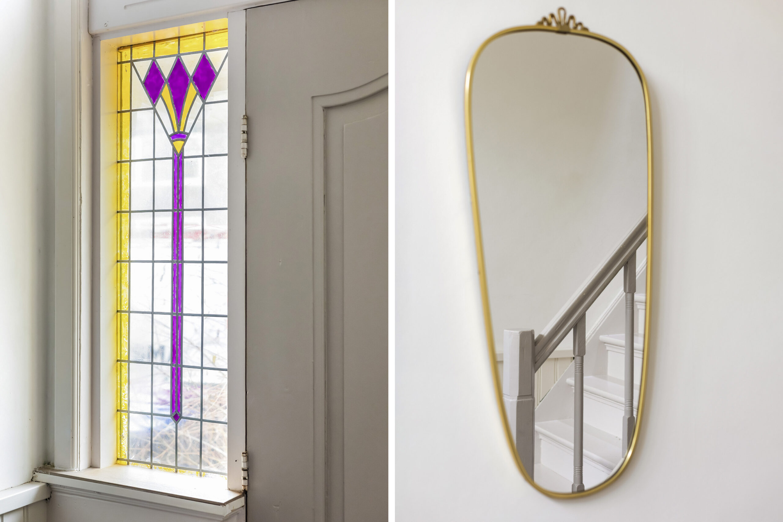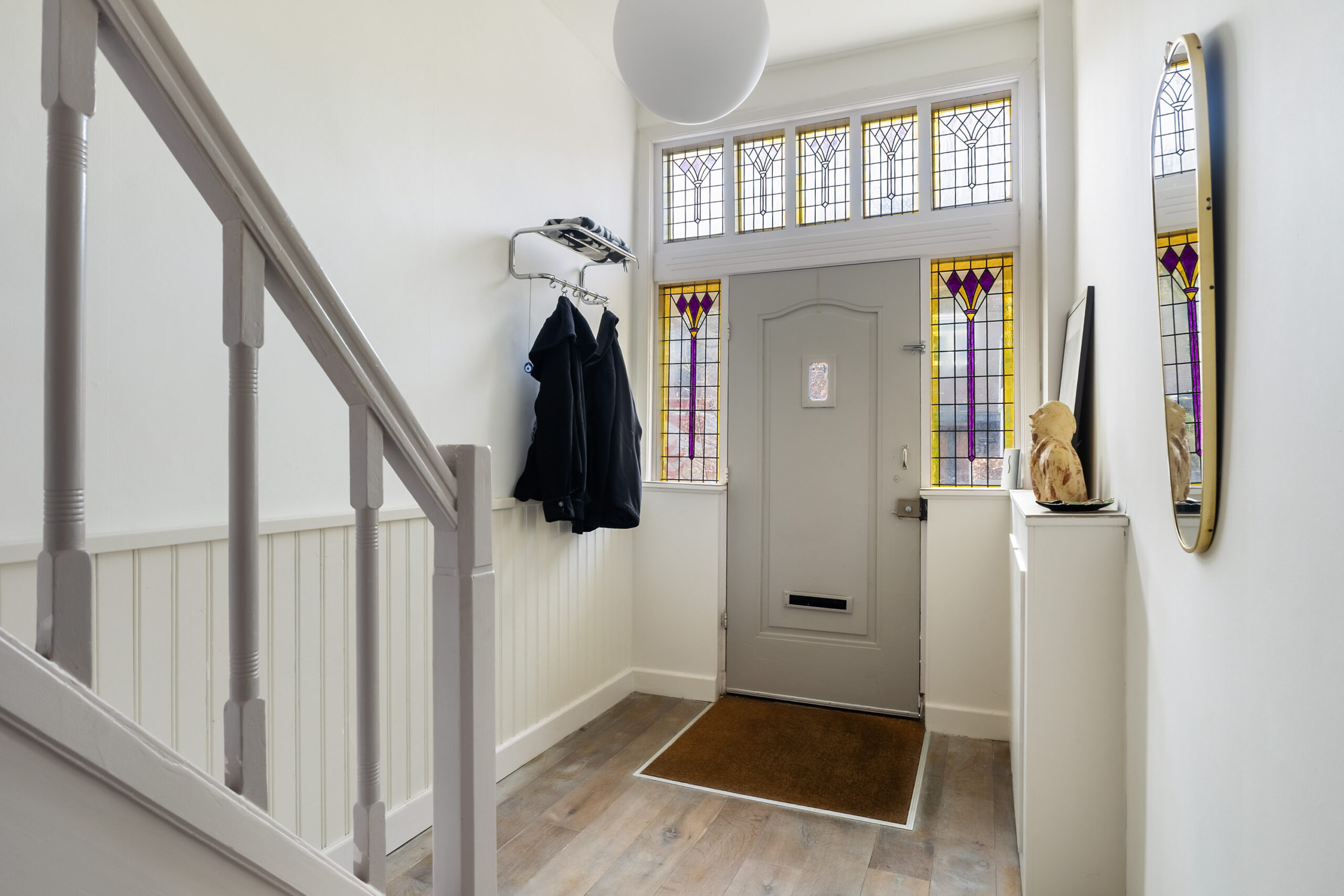 – authentieke glas in lood ramen en paneeldeuren