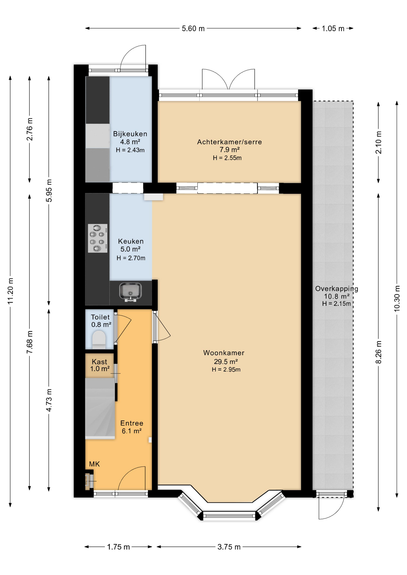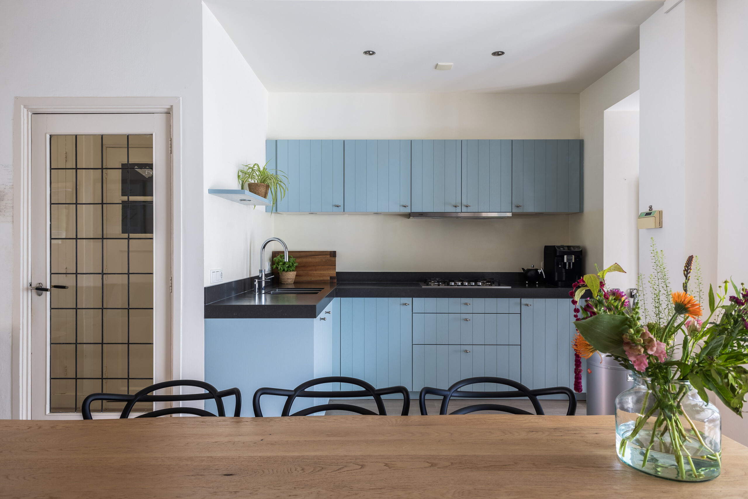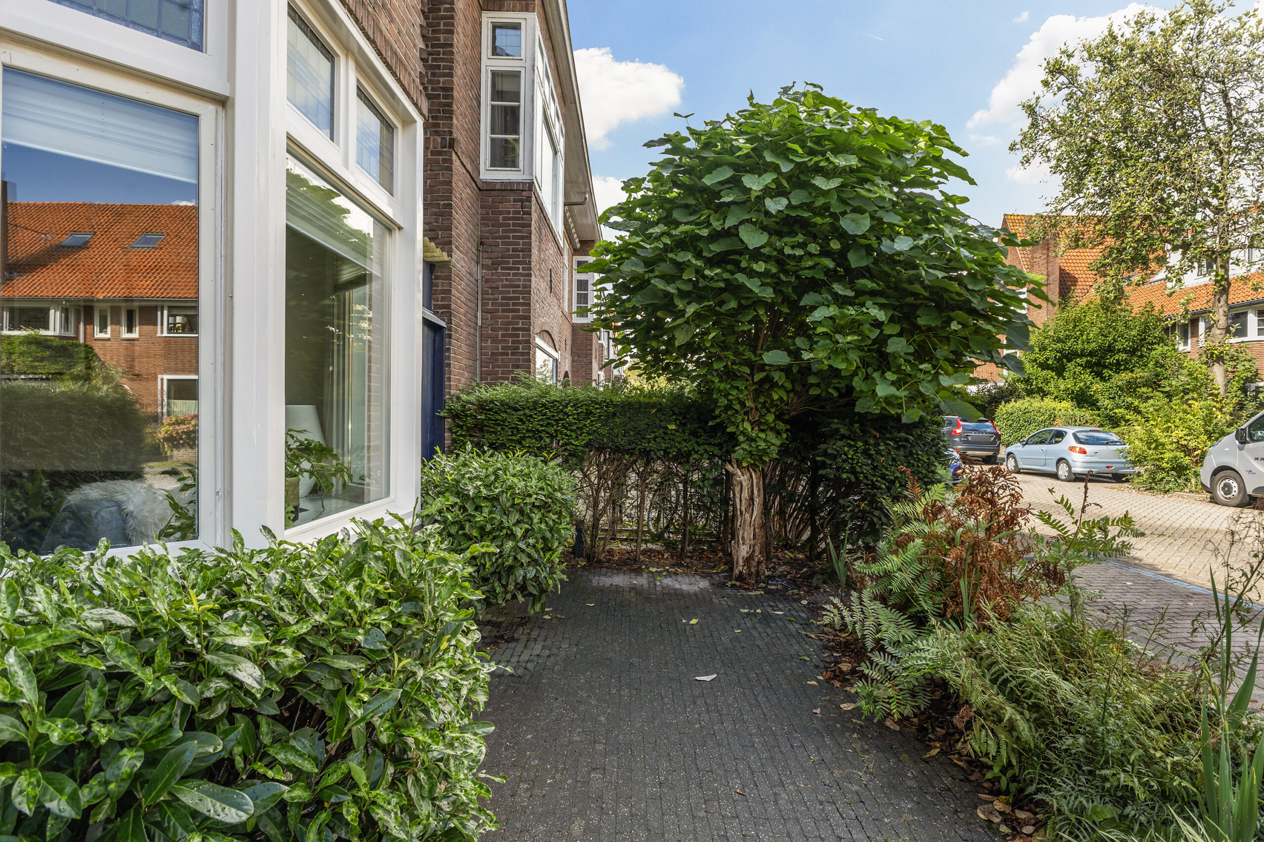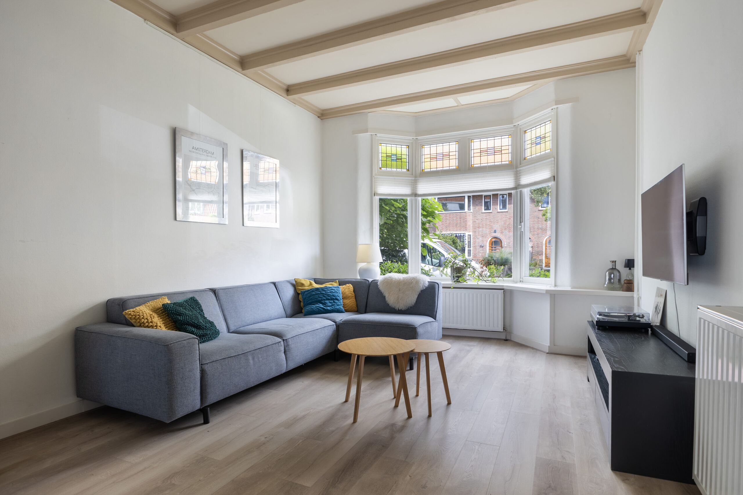 Middels de voortuin bereikbare entree met prachtige glas-in-lood ramen rondom de voordeur. De gang geeft toegang tot de berging onder de trap, het moderne toilet en de woonkamer. De sfeervolle woonkamer beschikt over een balkenplafond en heeft aan de voorzijde een erker met glas in lood ramen. Aangrenzend aan de woonkamer bevindt zich een aangebouwde achterkamer/serre, nu in gebruik als muziek/werkkamer of speelruimte voor de kinderen. De openslaande deuren geven toegang tot de achtertuin. De open keuken in hoekopstelling beschikt over een Quooker, Amerikaanse koelkast, vaatwasser en een gaskookplaat met afzuigkap. Doorloop naar de bijkeuken alwaar ook nog een gedeelte van de keuken, voorzien van een oven, werkblad en kastruimte en een deur naar de achtertuin.