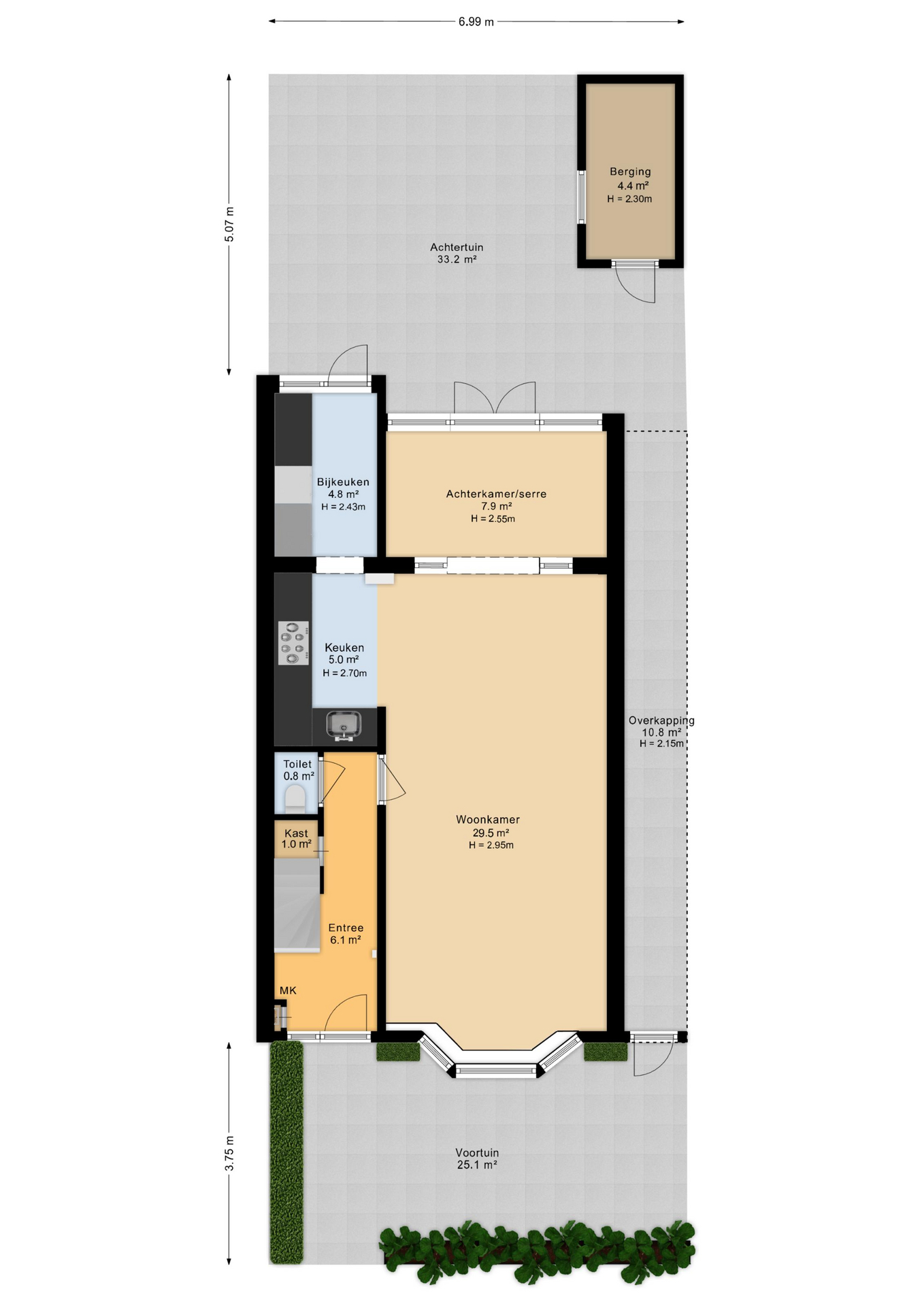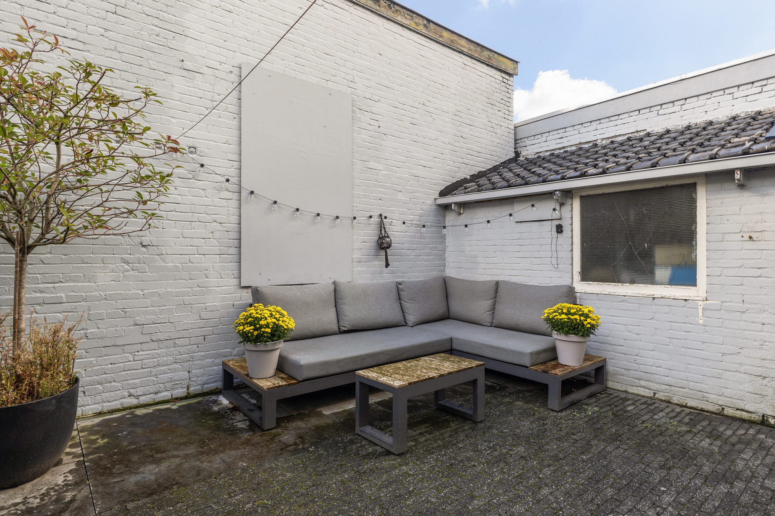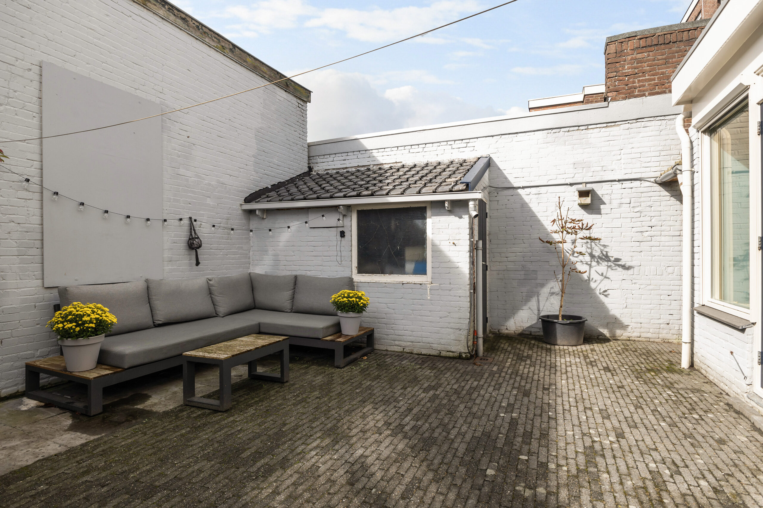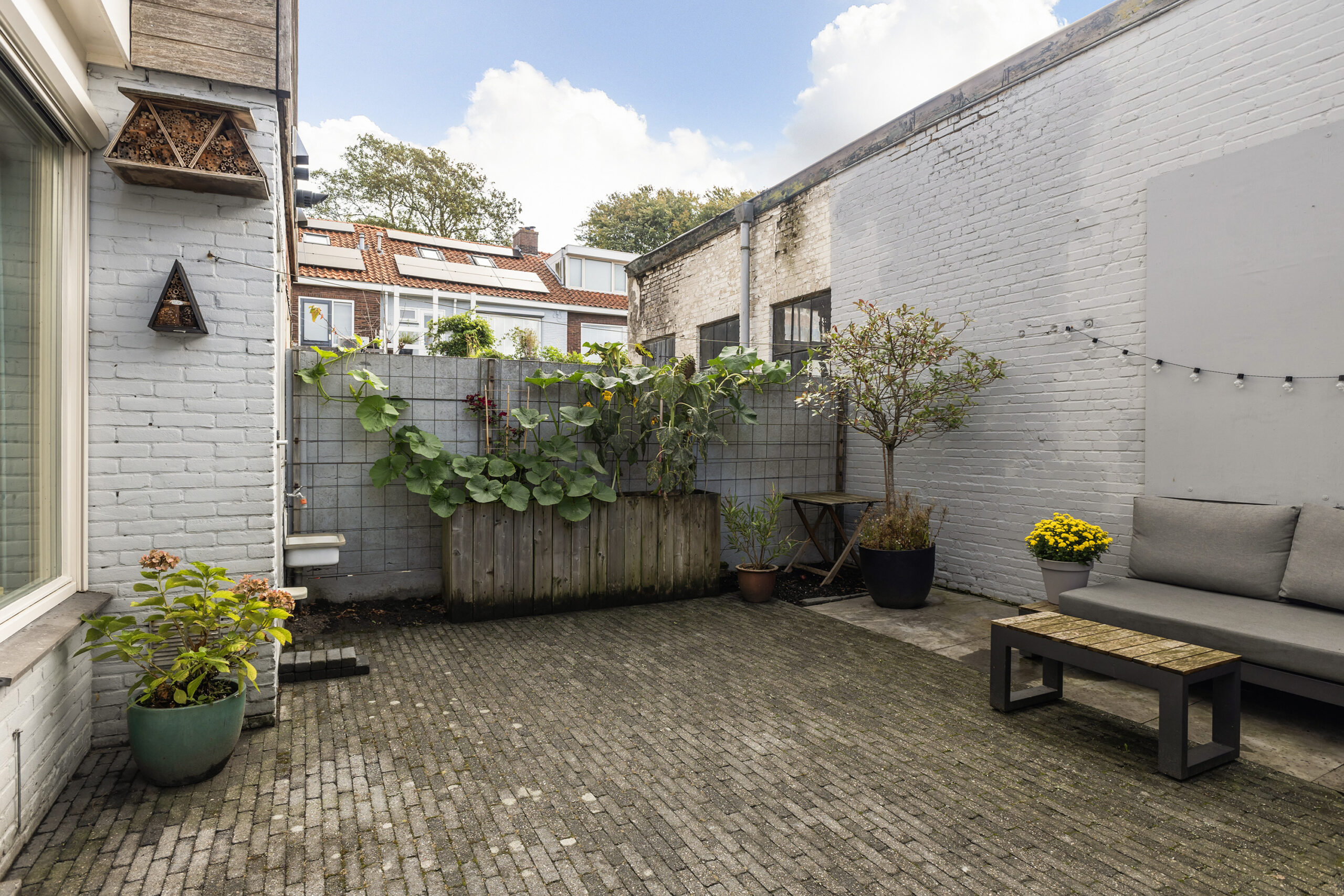 De achtertuin is gesitueerd op het zonnige zuiden en voorzien van een achterom via de eigen overkapte steeg, rechts van de woning. De tuin is volledig bestraat en er is een vrijstaande stenen berging. De tuin is compact, maar geeft voldoende ruimte om hier heerlijk in de zon te zitten of om te tafelen.