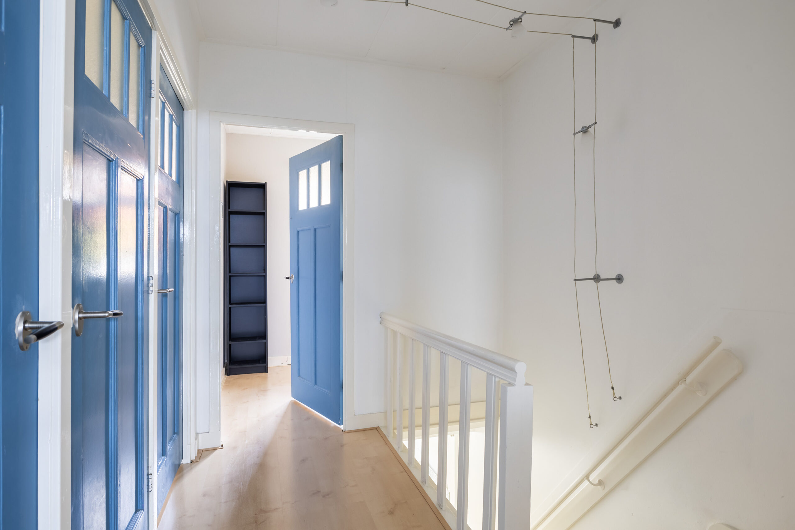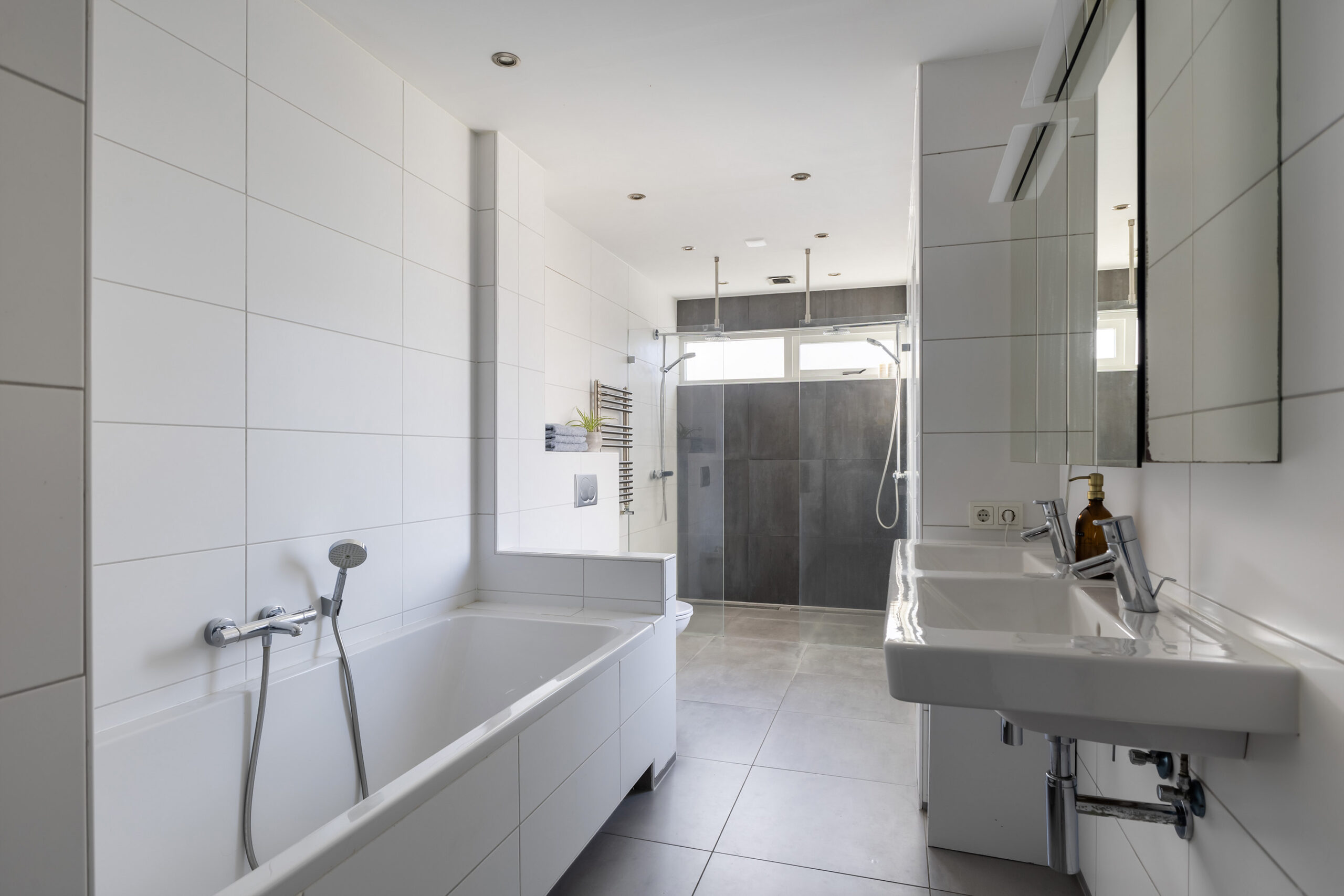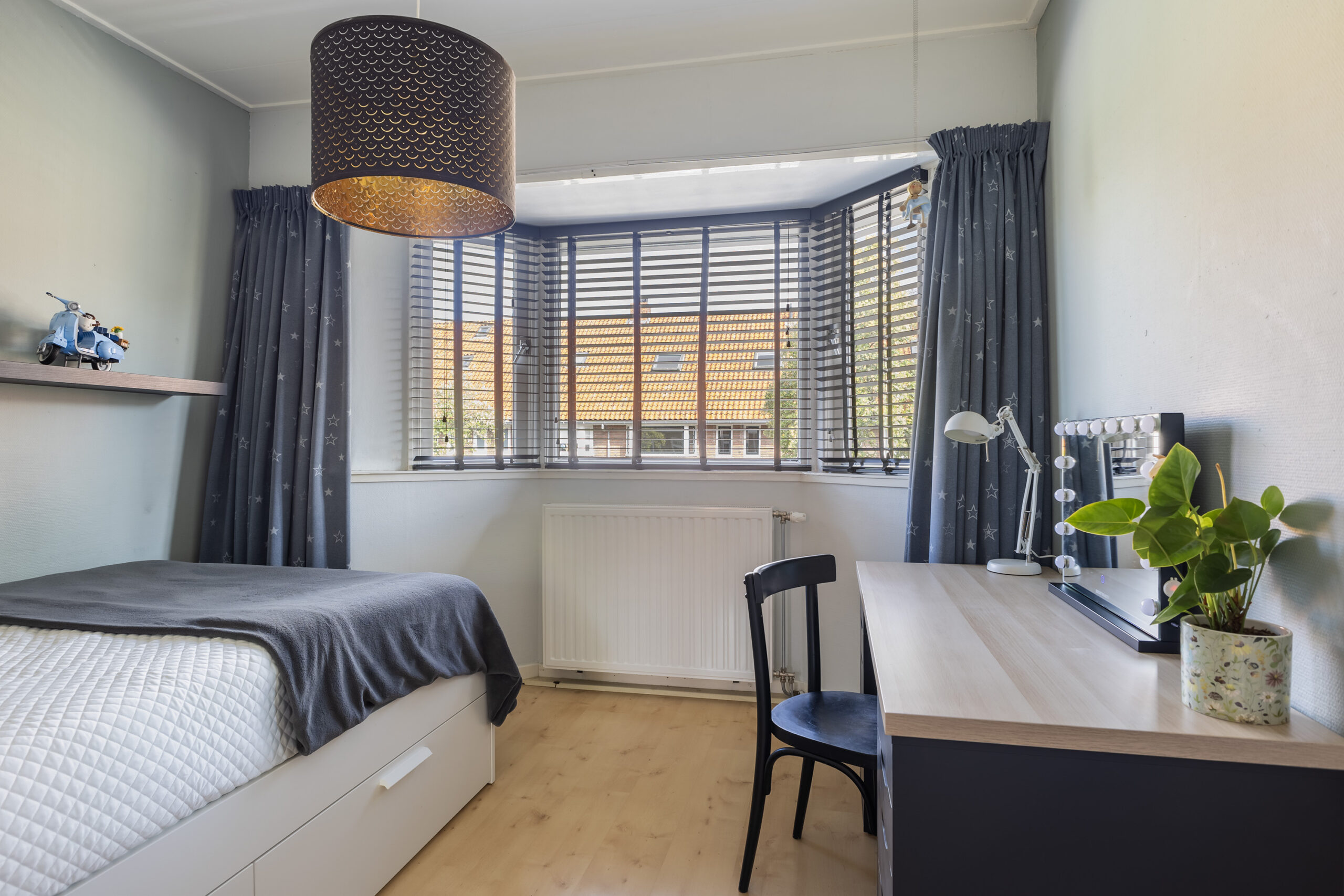 De middels de sierlijke trap bereikbare overloop geeft toegang tot de drie slaapkamers, de badkamer en de trap naar de tweede verdieping. Aan de voorzijde liggen de 1e en 2e slaapkamer van resp. 4,3 m² en een van 11,0 m² waarvan de grootste is voorzien van een erker en vaste kast. De 3e slaapkamer ligt aan de achterzijde, is bijna 12 m² groot en beschikt tevens over een vaste kast. Door het realiseren van een uitbouw is er een zéér ruime badkamer ontstaan. Er is een ligbad, 2e toilet, dubbele wastafel en een ruime inloopdouche met twee aparte douches. Tevens bevindt zich hier de wasmachineopstelling en is er een deur naar het balkon.