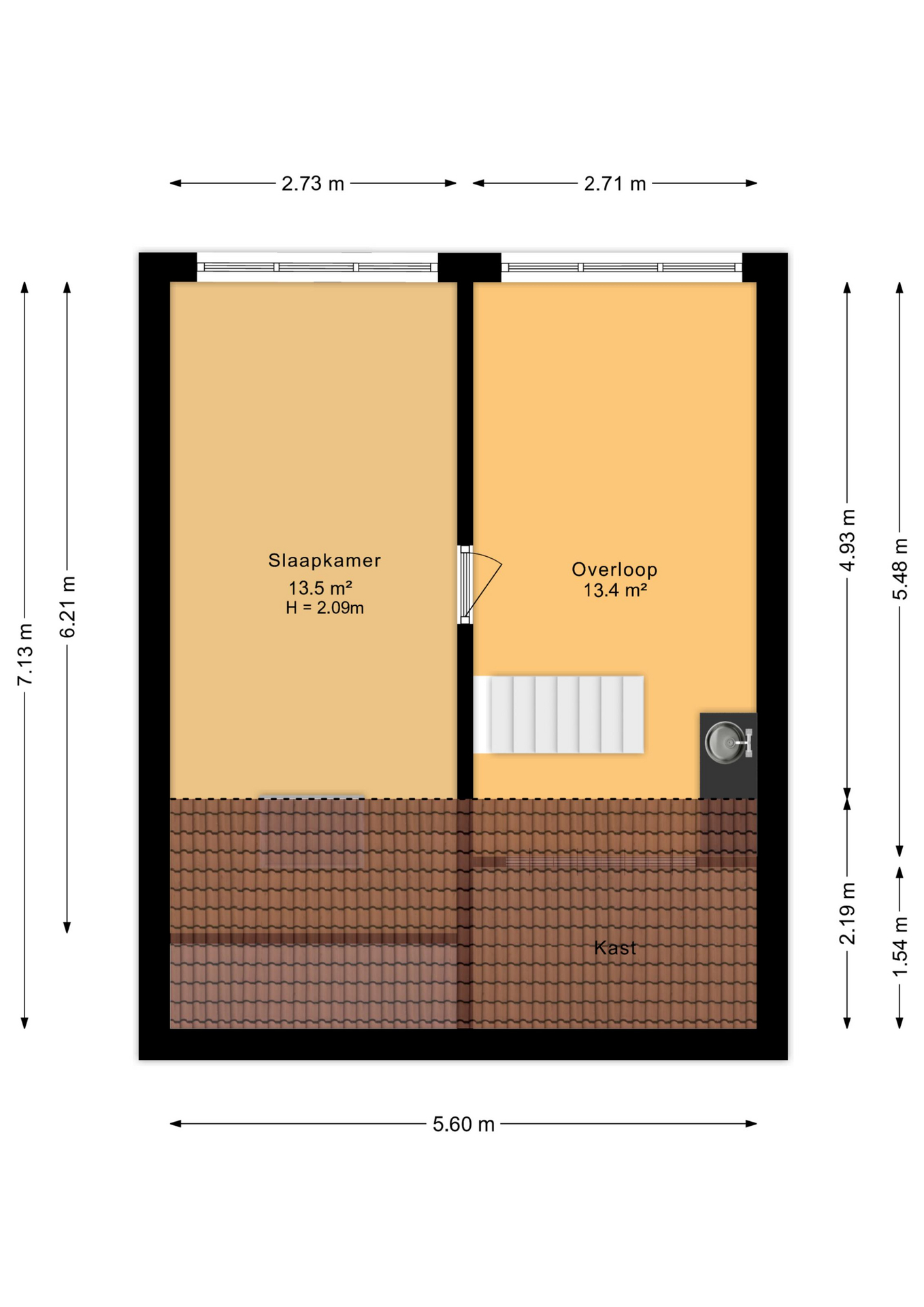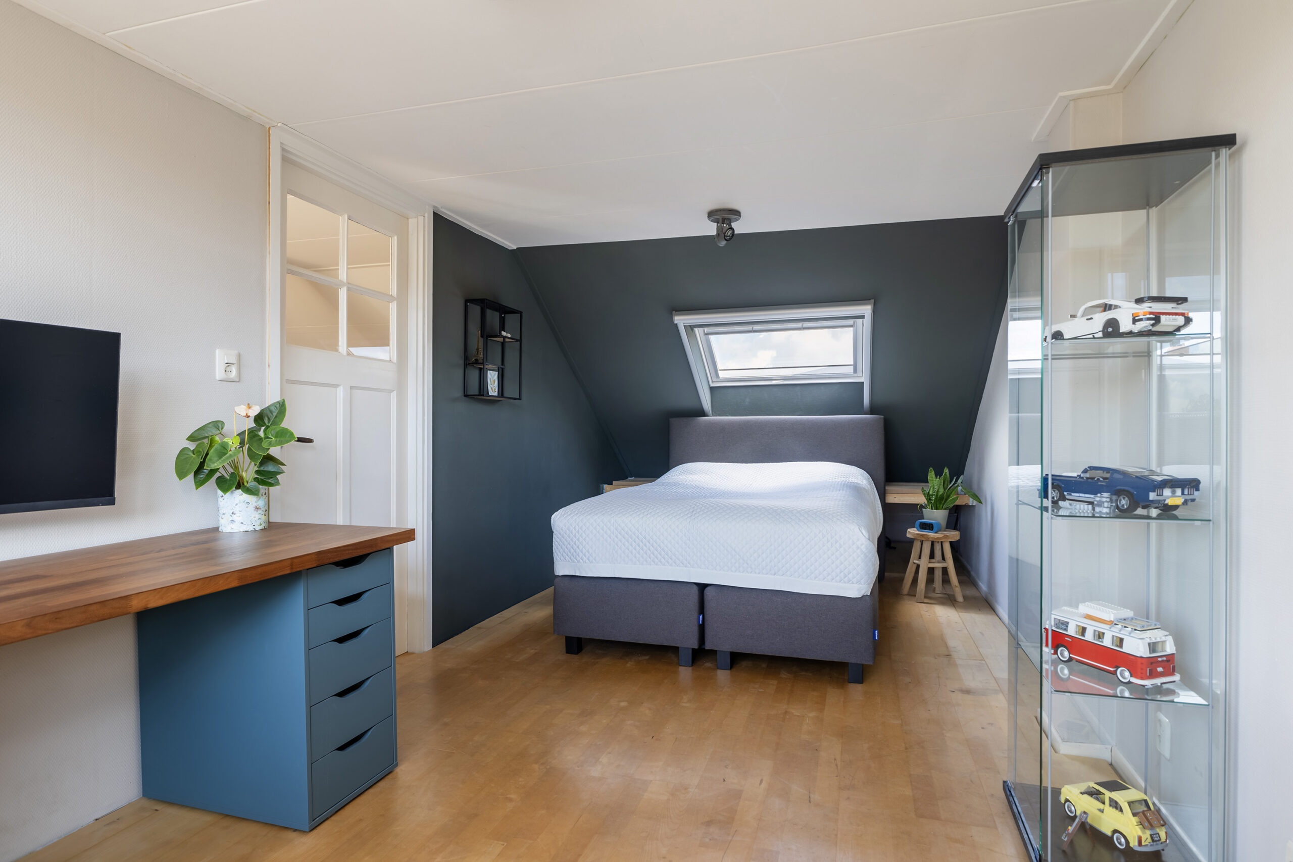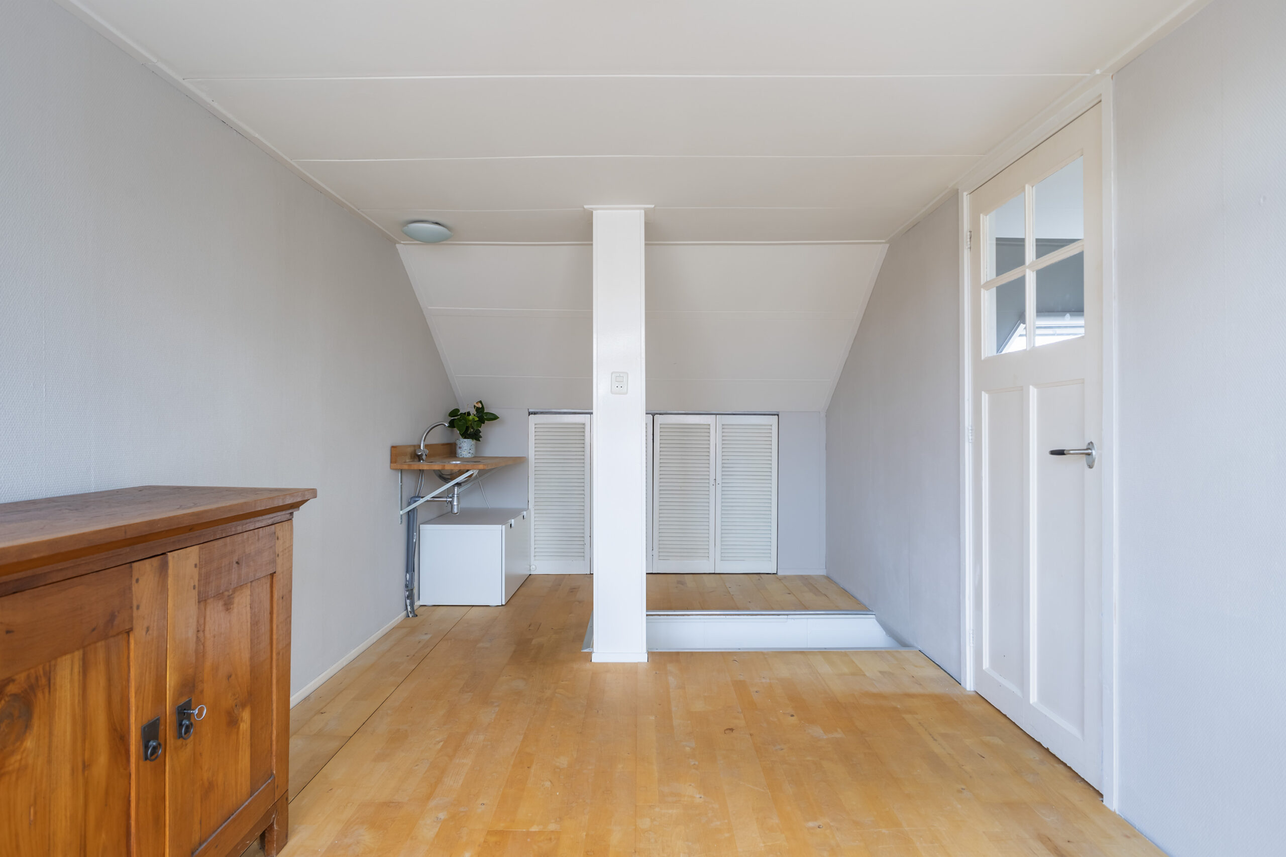 Middels een vaste trap bereikbare zolder. Hier bevindt zich een ruime overloop met wastafel en bergruimte achter de knieschotten en deur naar de 4e slaapkamer. Deze slaapkamer is 13,5m² groot en beschikt over een groot dakraam. De tweede verdieping heeft een dakkapel over de gehele breedte van de woning.