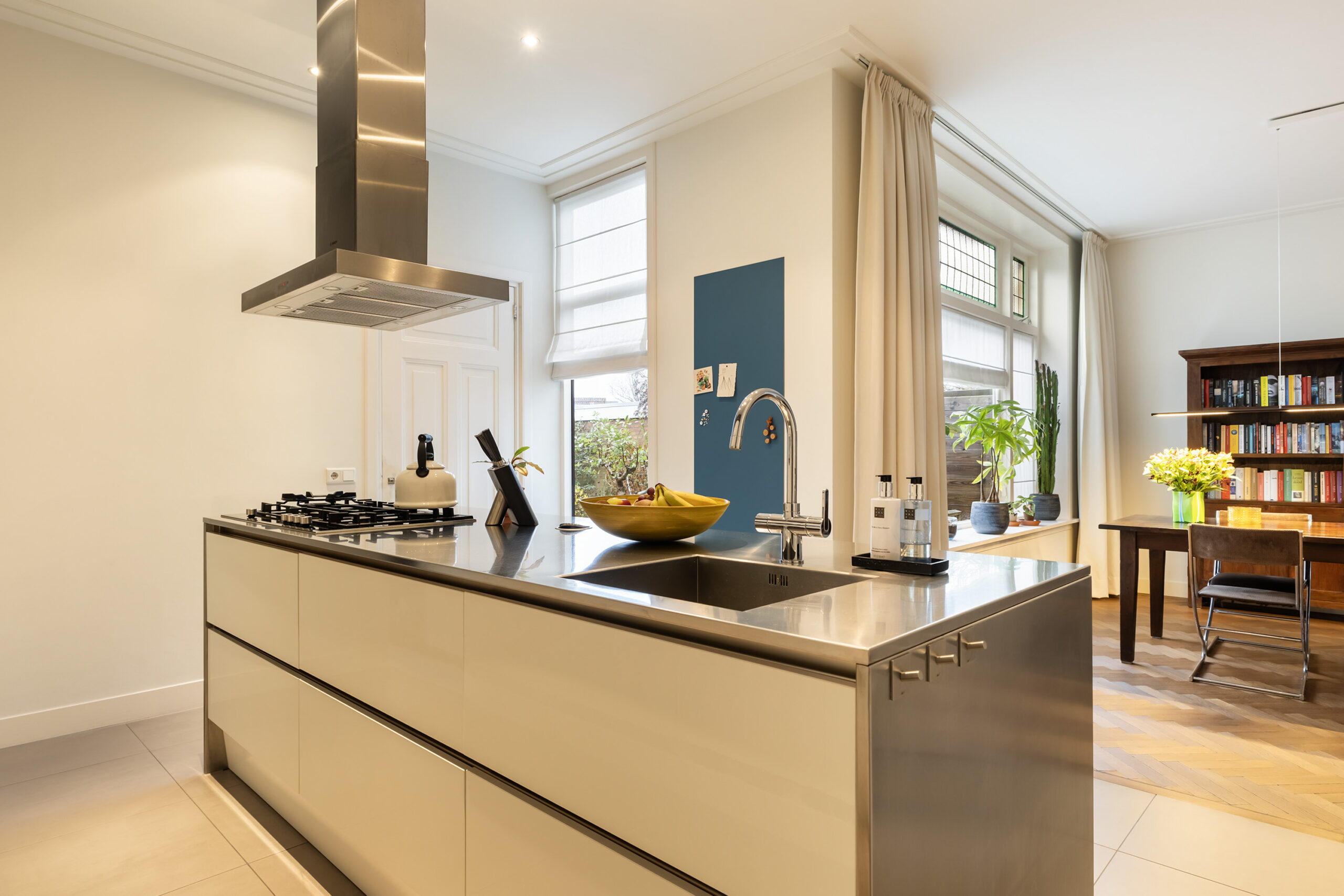 – ruime open keuken met kook-en spoeleiland en diverse inbouwapparatuur