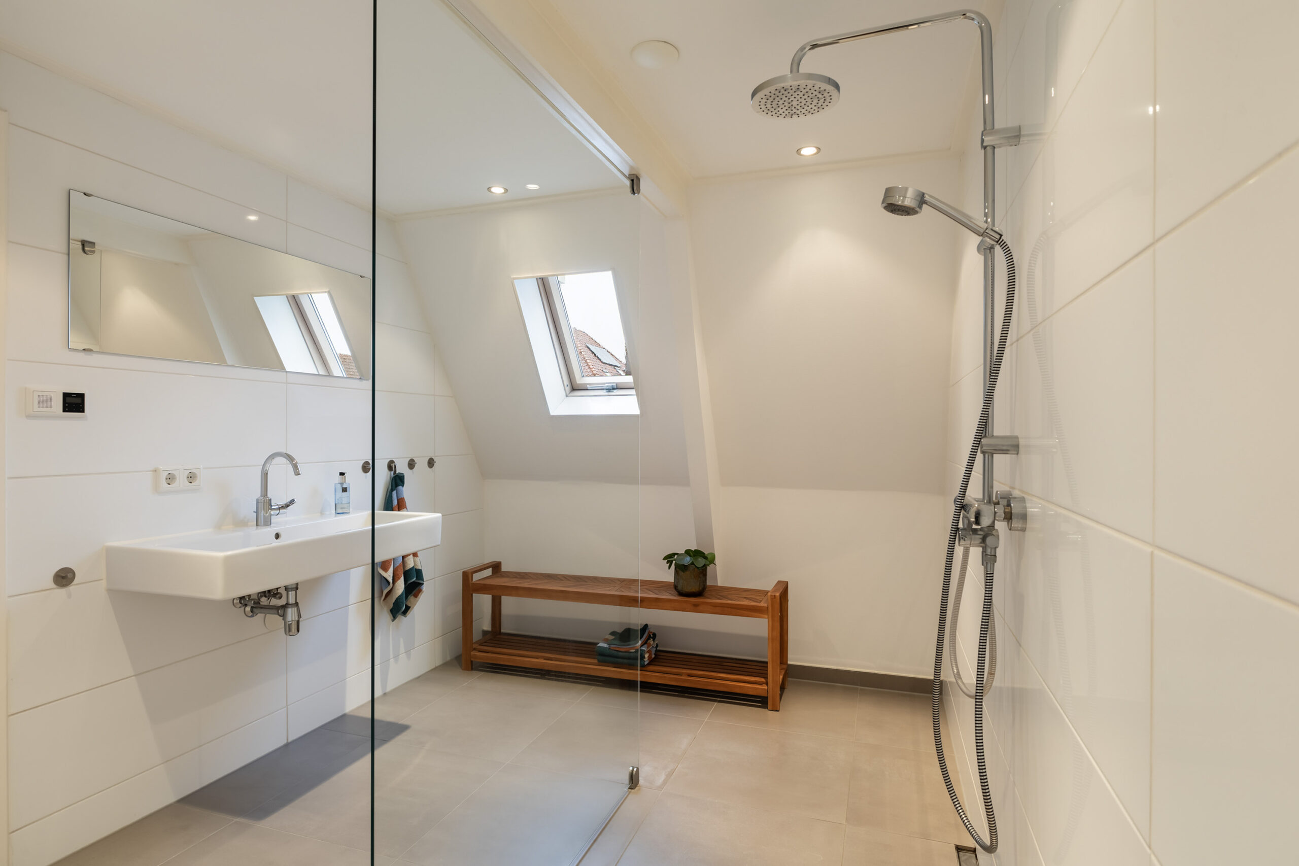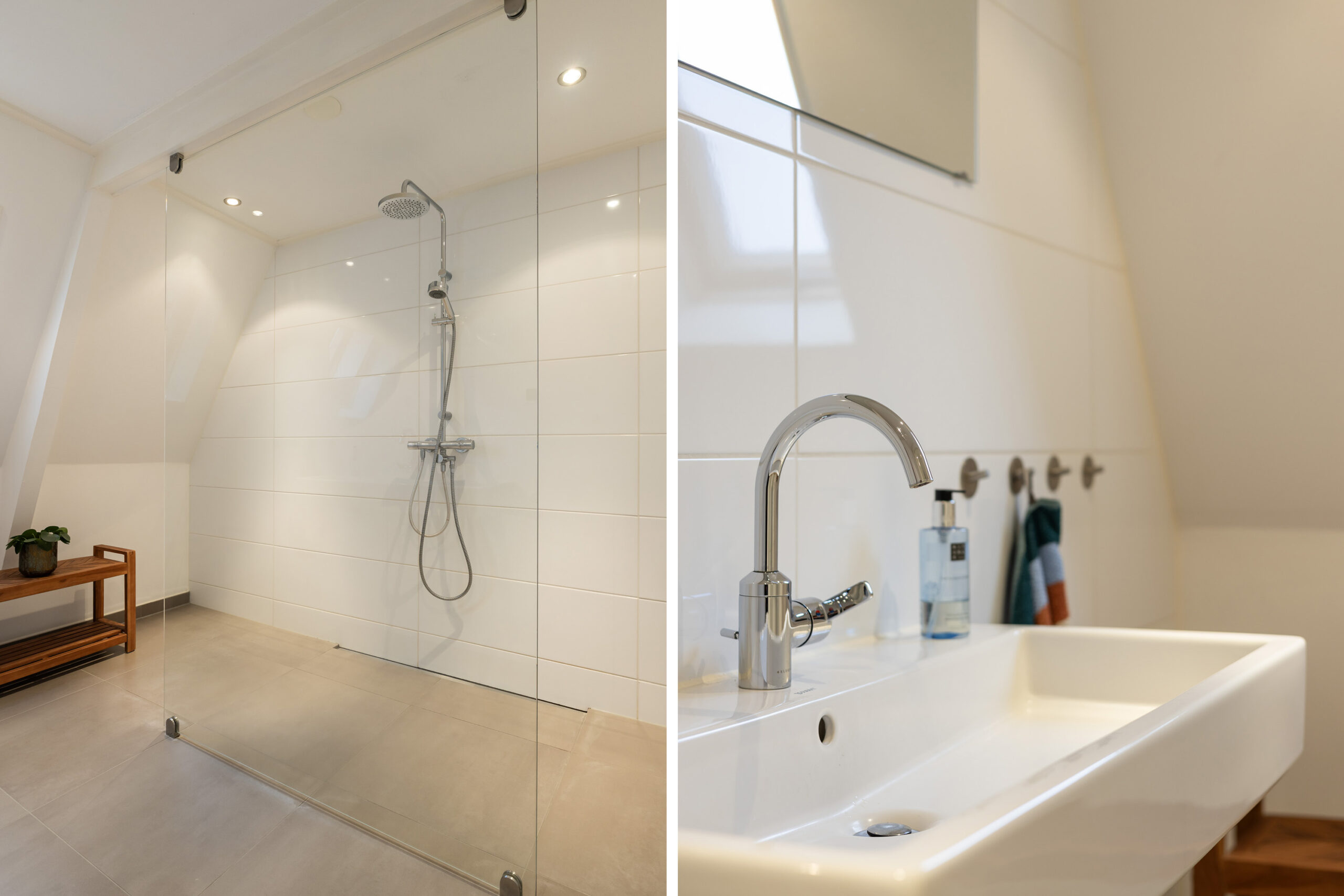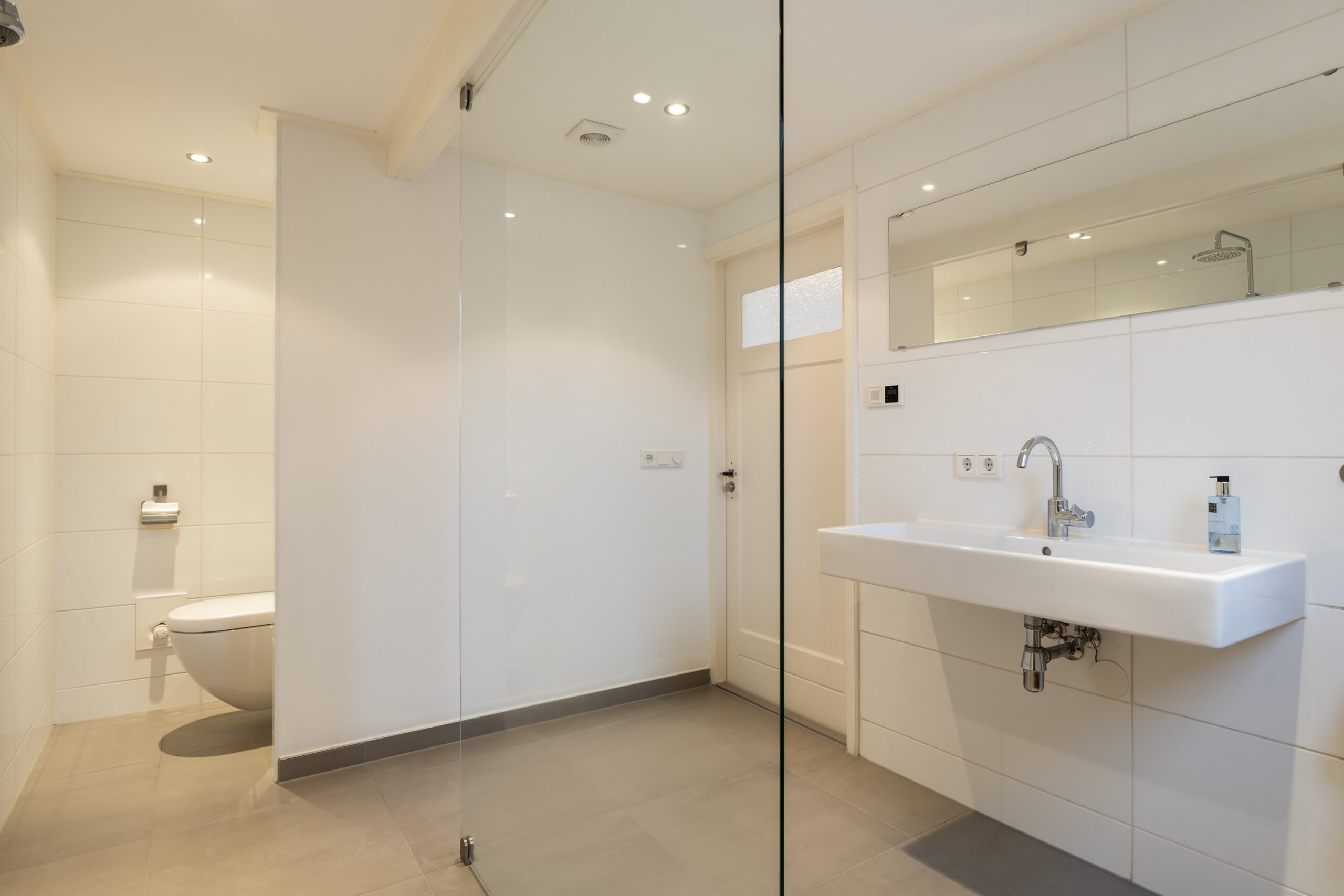 – badkamer met vloerverwarming, inloopdouche, wastafel en toilet