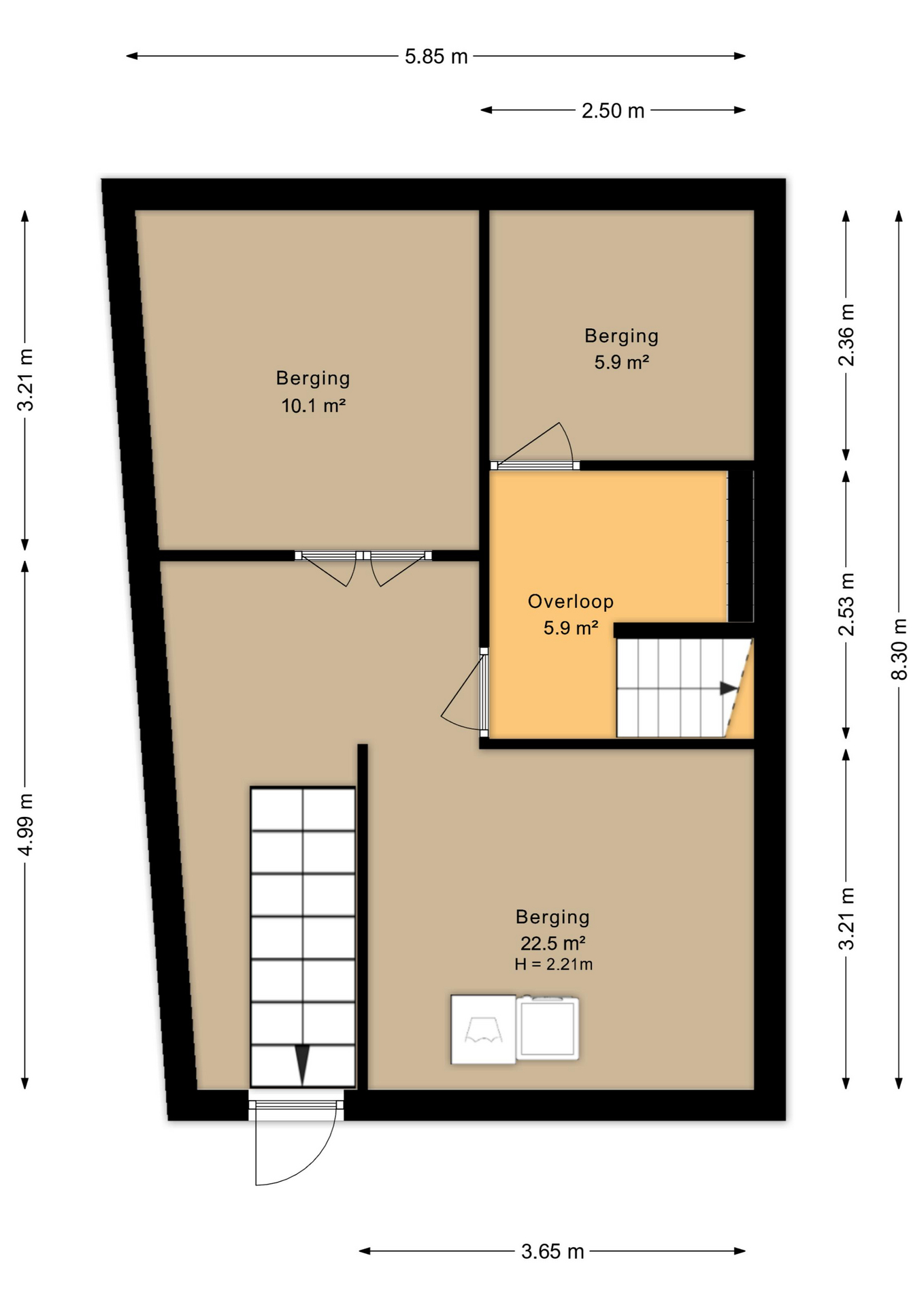 – Ruime kelder op stahoogte met 3 ruime vertrekken, inclusief ruimte voor de fietsen, drie ruime ruimtes, verwarmd. Nu als opslag, klusruimte en wasruimte in gebruik.