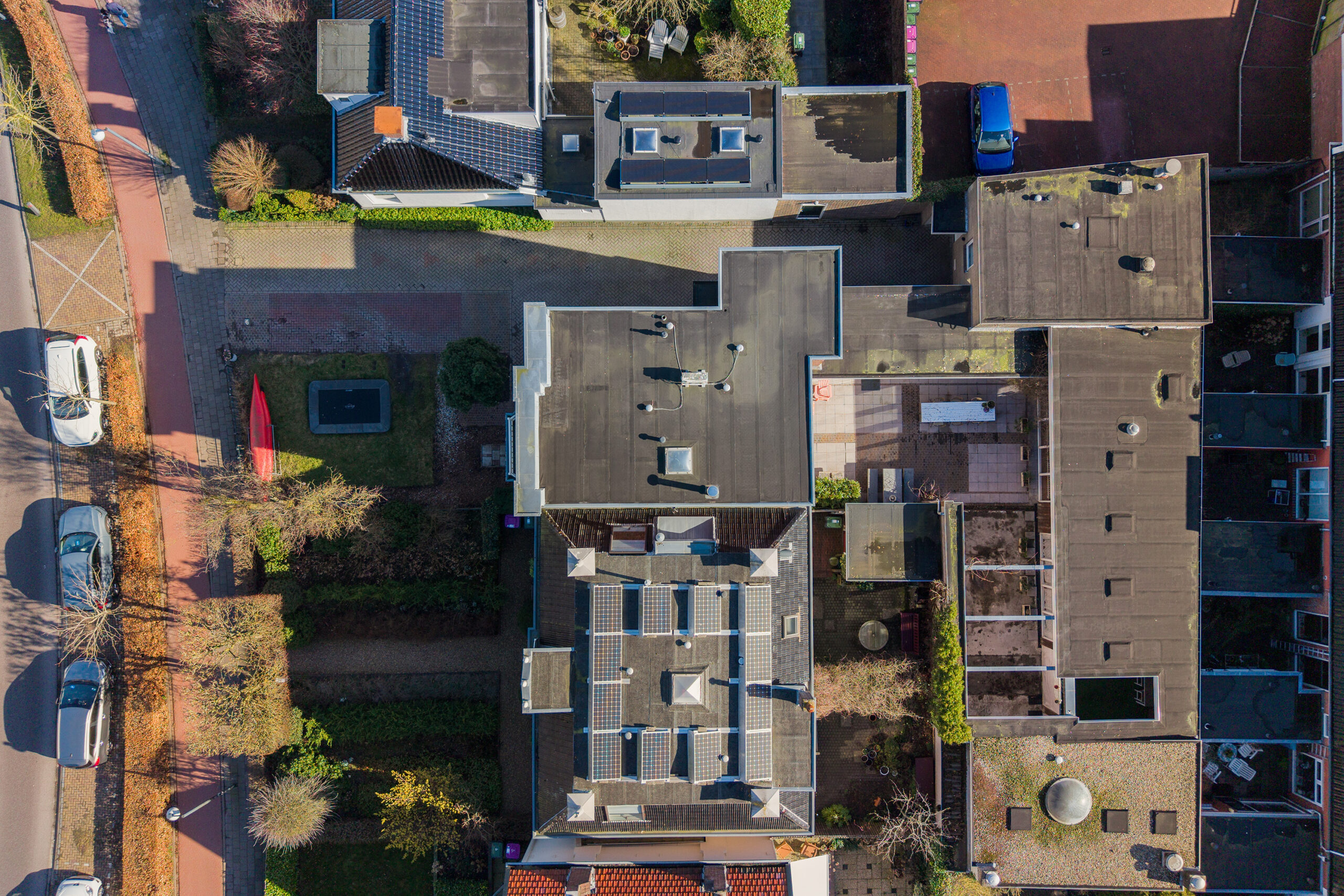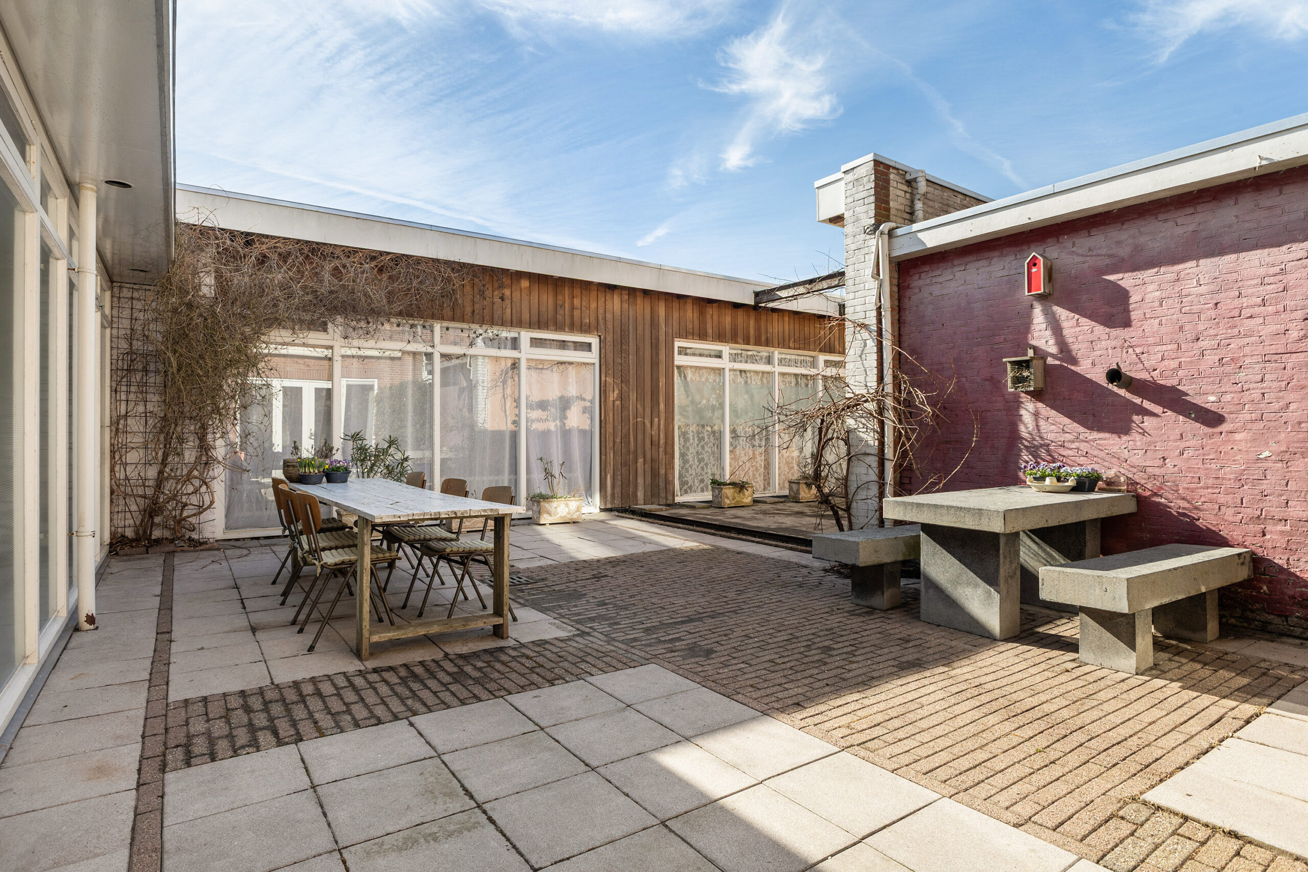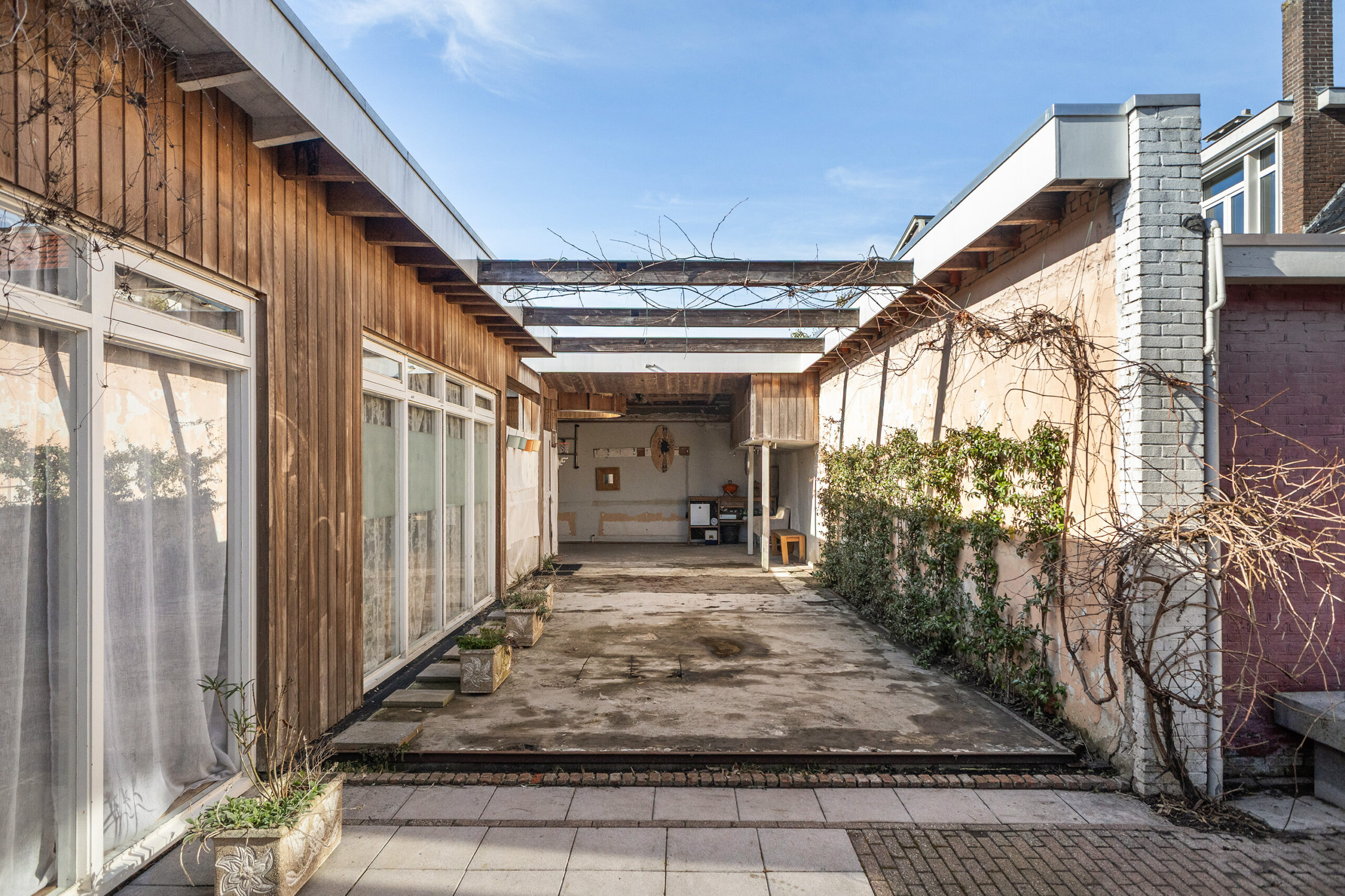 De volledig bestraatte achtertuin is gesitueerd op het zonnige zuiden en is vanuit de woonkamer, de keuken én vanuit het gastenverblijf toegankelijk. Er zijn diverse zithoekjes en daarnaast is er een royale overkapping (ruim 42m²). Voor het gastenverblijf is er een knusse ‘eigen’ tuin.