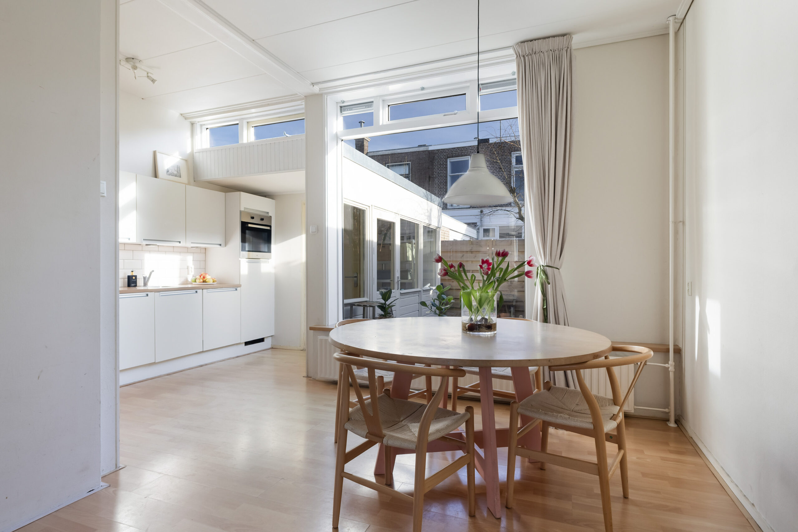 De lichte woonkamer van ca. 31 m² met open keuken vormt het hart van de woning en biedt een prettige, open leefruimte. Vanuit de woonkamer is er toegang tot de aangebouwde bijkeuken met witgoedopstelling, wat extra gemak en functionaliteit biedt. Op de praktisch ingedeelde eerste verdieping vindt u een U-vormige overloop met dakkoepel, vier slaapkamers en een moderne badkamer, vernieuwd in 2020. De beschutte achtertuin ligt op het zuidoosten en is een heerlijke plek om in alle rust van de zon te genieten.