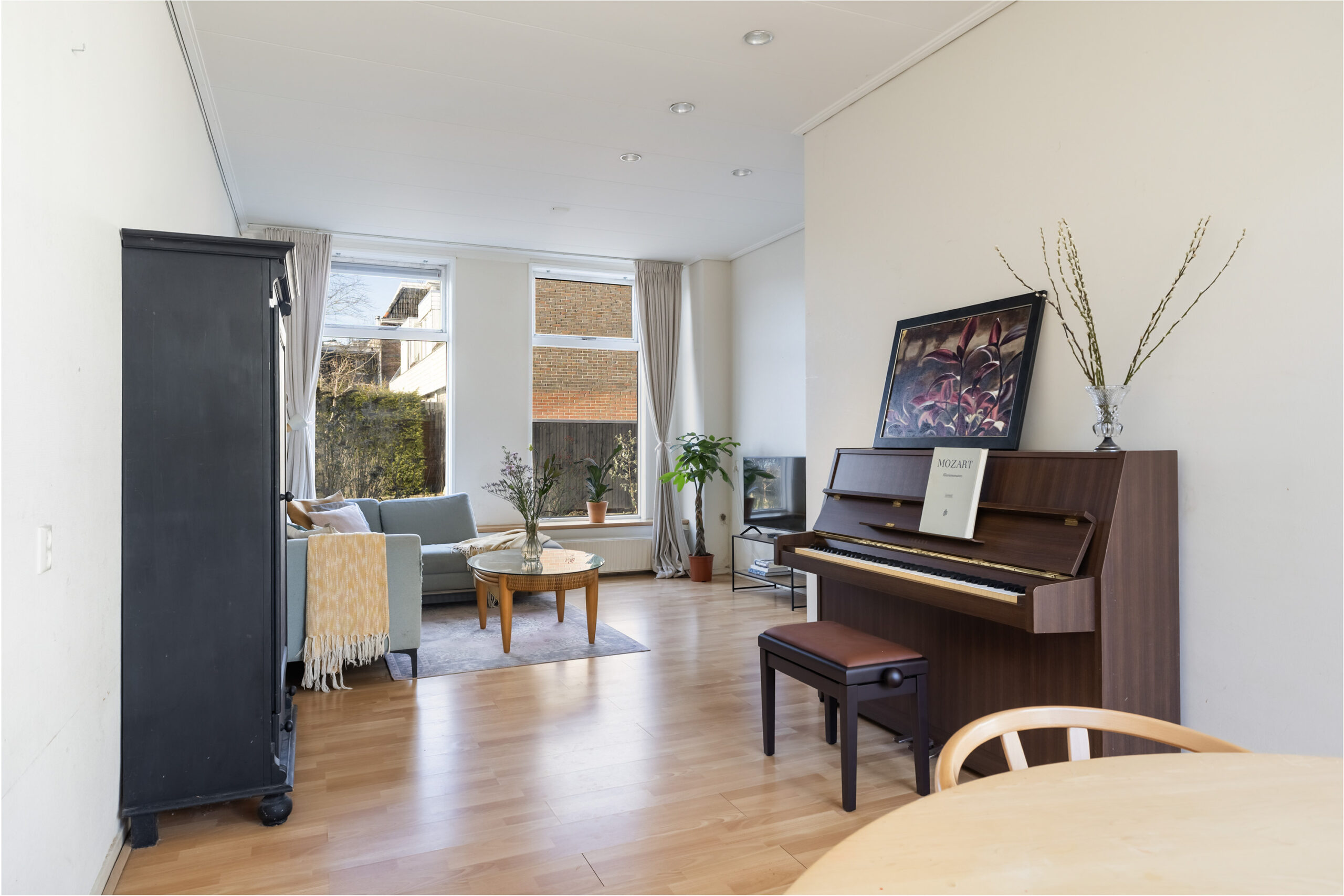 – woonkamer met open keuken (2011), onder andere voorzien van vaatwasser, koelkast en oven