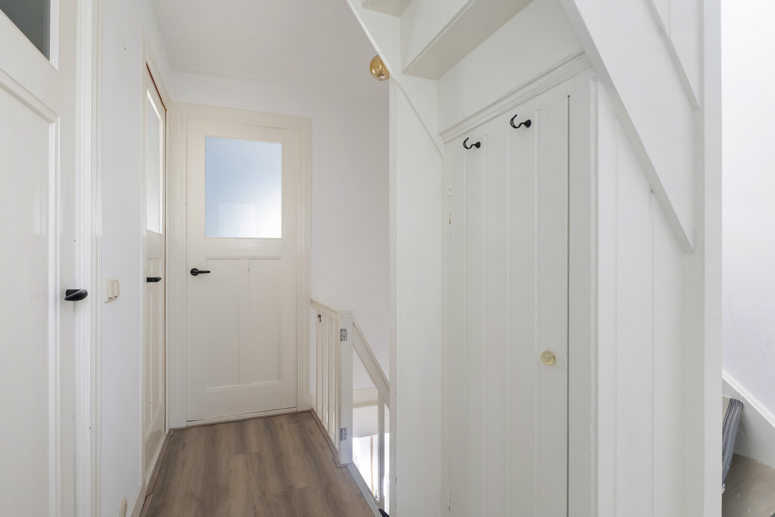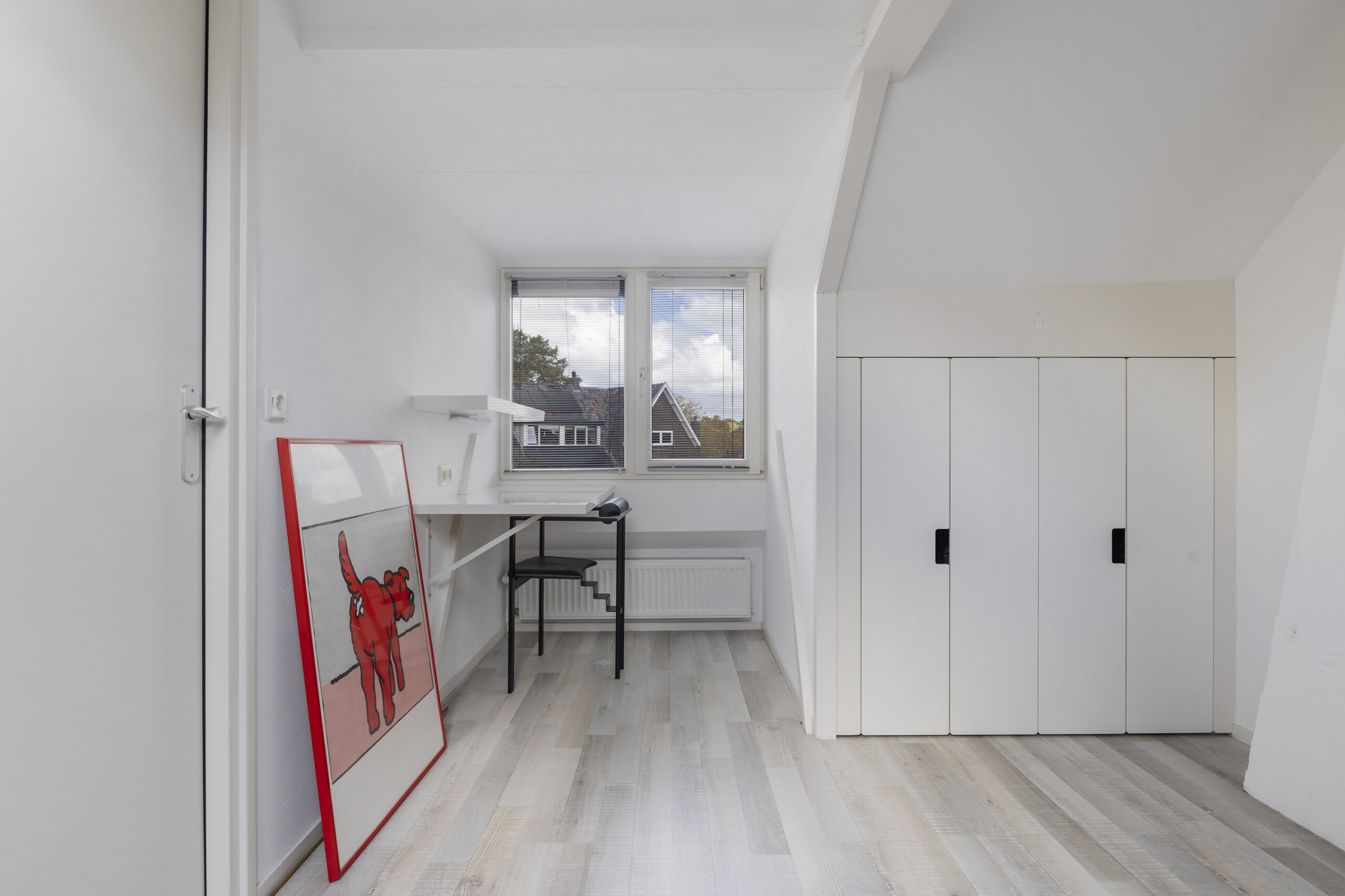 De tweede verdieping beschikt over een ruime overloop van circa 6,6 m², voorzien van een dakraam dat zorgt voor prettig daglicht. De overloop biedt mogelijkheden voor een werkplek en beschikt over bergruimte onder het schuine dak.