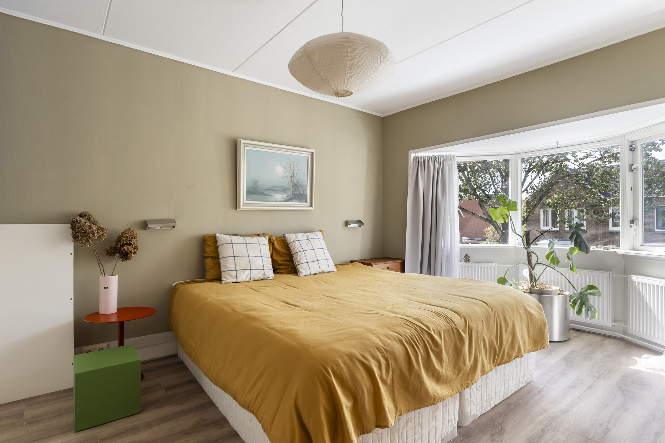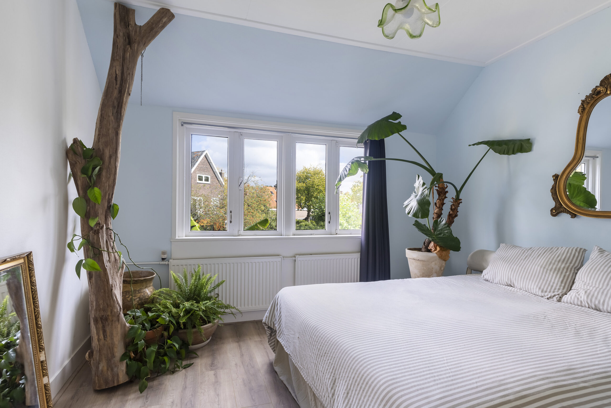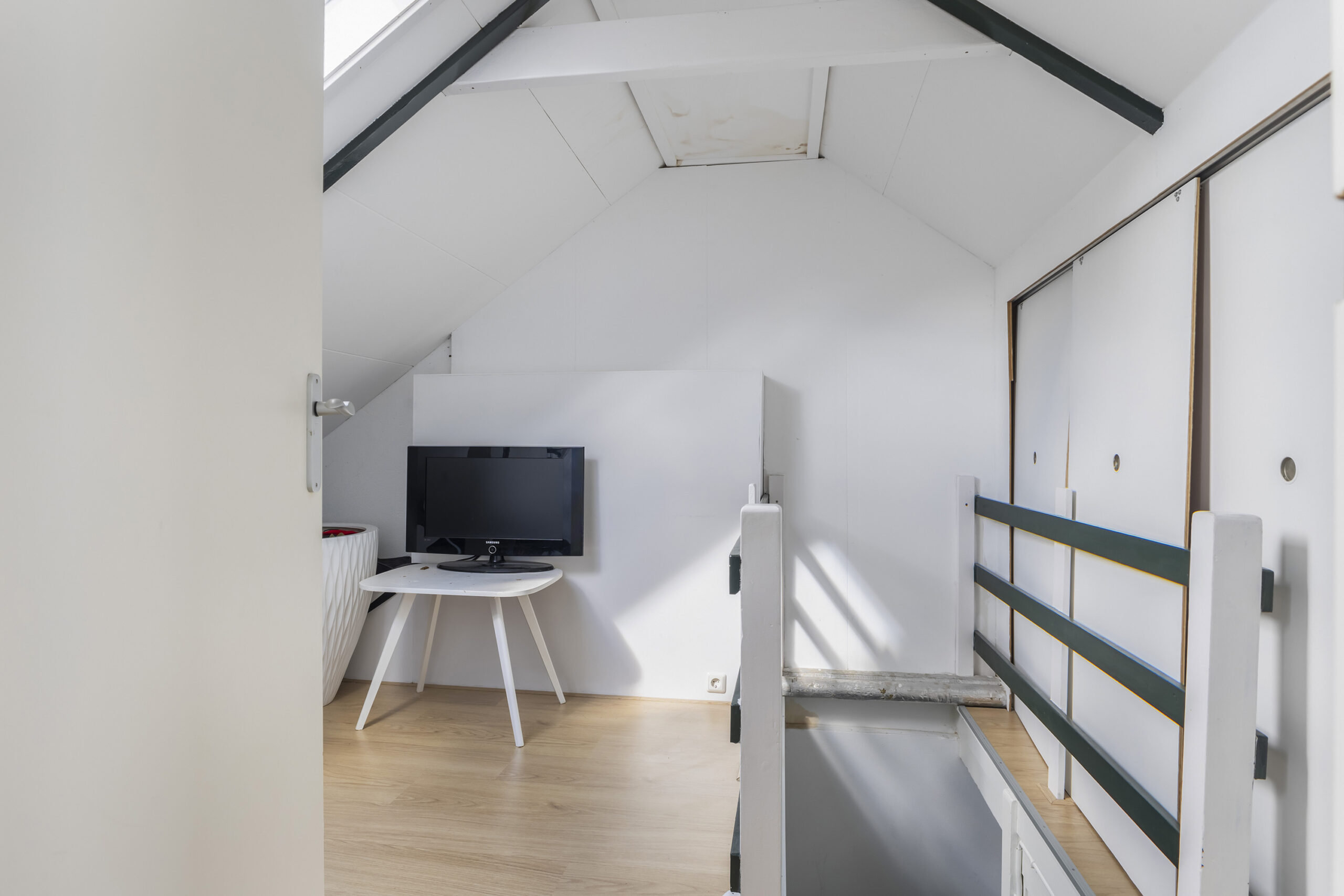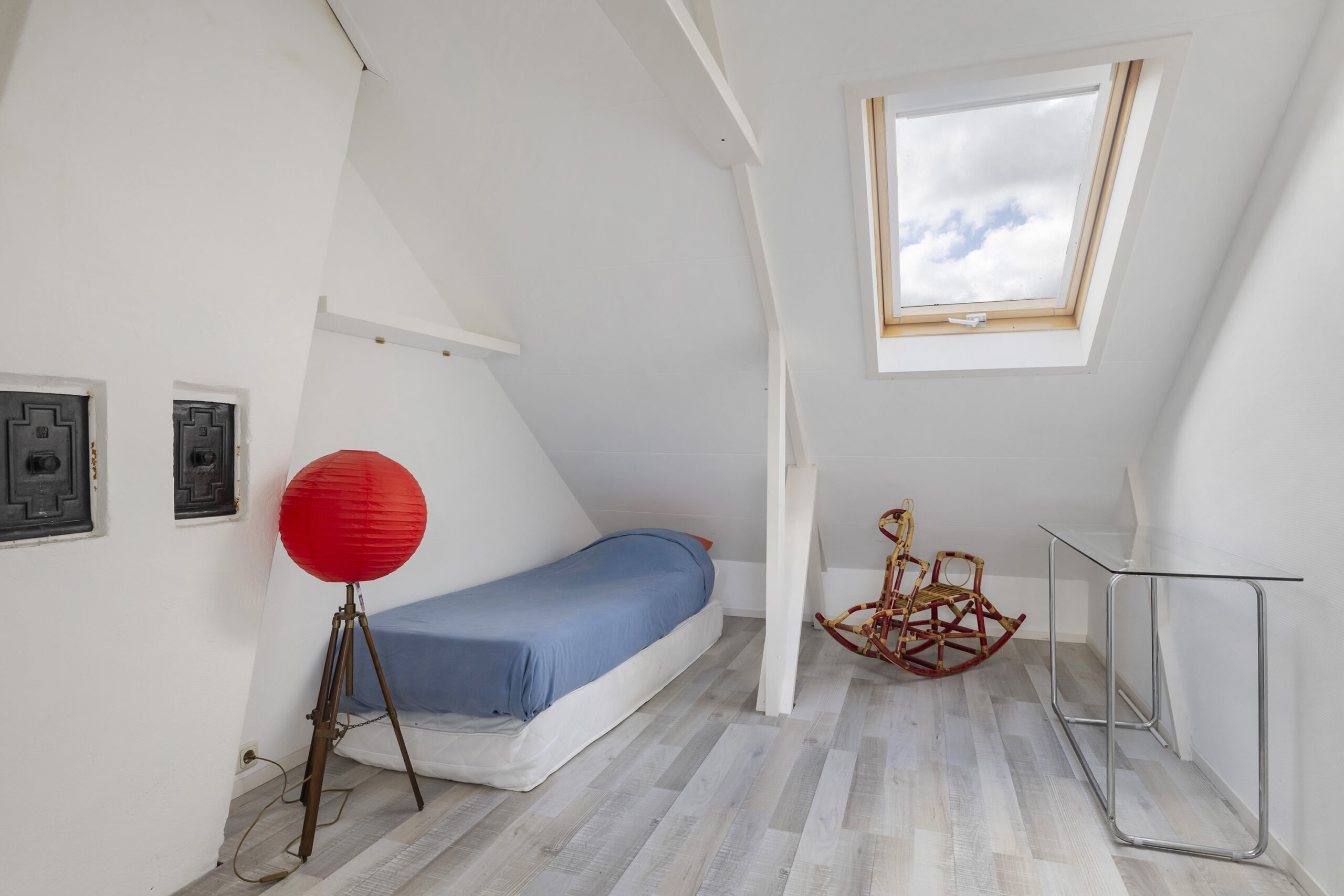 De ruime slaapkamer is voorzien van een dakkapel en een extra dakraam. Ook deze kamer beschikt over bergruimte onder het schuine dak.