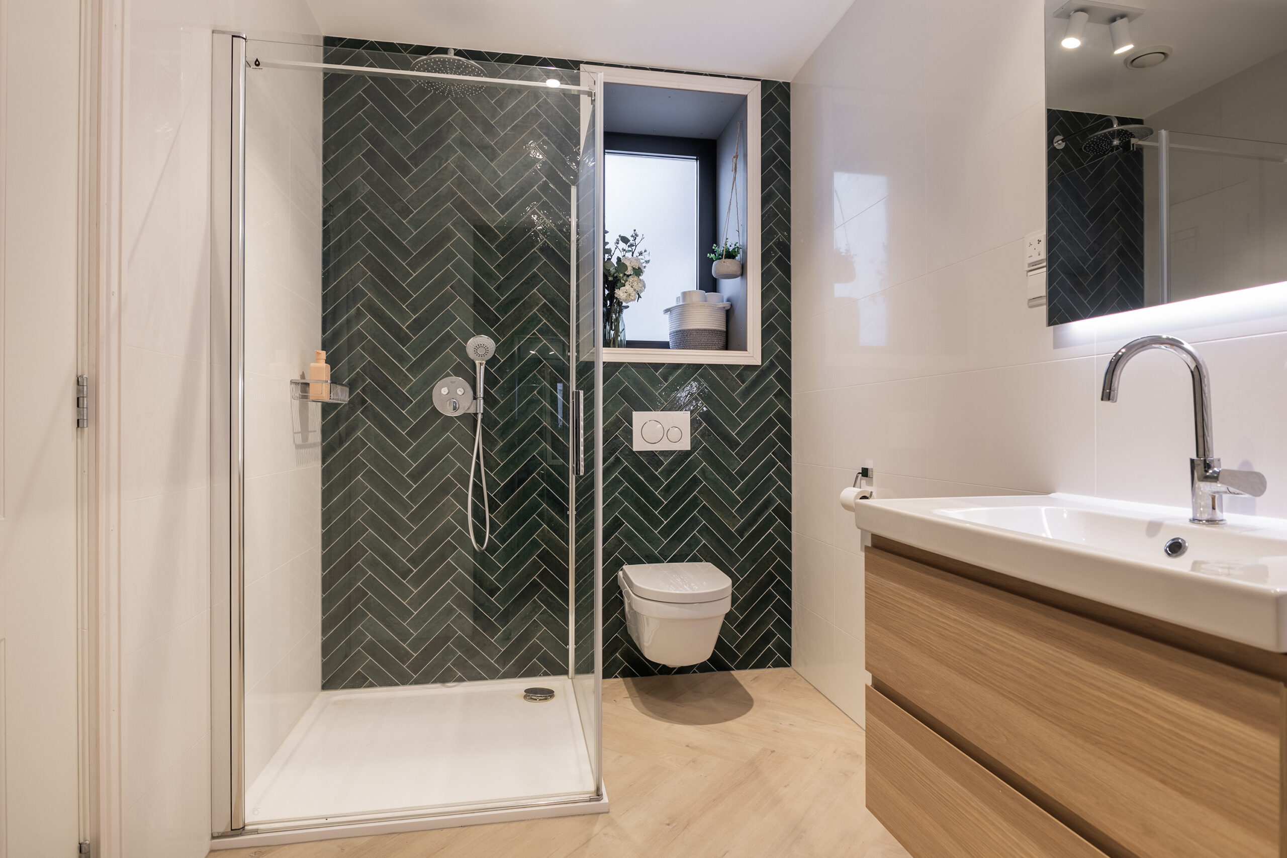 • Huisnummer 36 B: 77 m², met woonkamer, keuken, slaapkamer, badkamer en dakterras