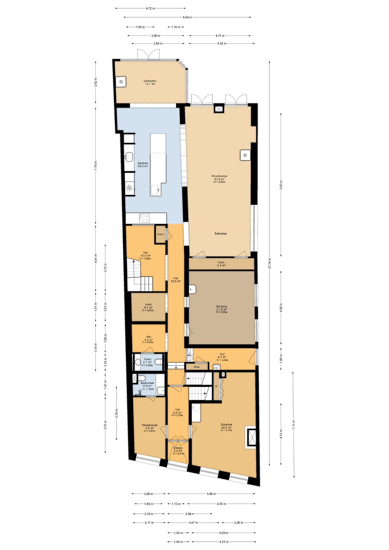Achter de monumentale gevel ontvouwt zich een royale luxueuze woning die zowel indrukwekkend als verrassend veelzijdig is. Het pand beschikt over twee royale woonverdiepingen, een zolder met vliering én een souterrain, waar zich een complete wijnkelder met wijnmakerij bevindt — een unieke vondst die het huis extra allure geeft.