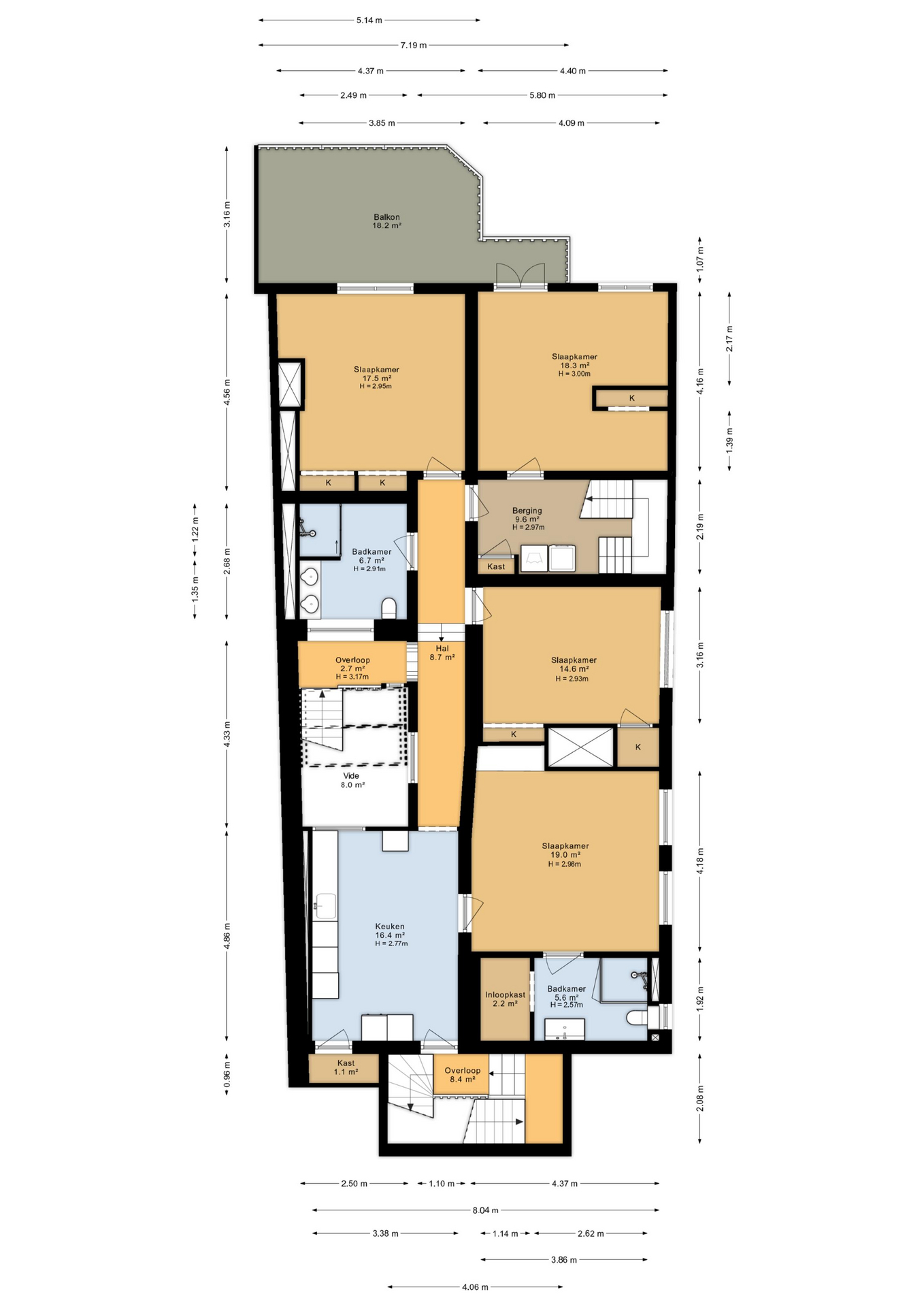 • Huisnummer 36A: 55 m², authentieke ruimte met pantry en badkamer.