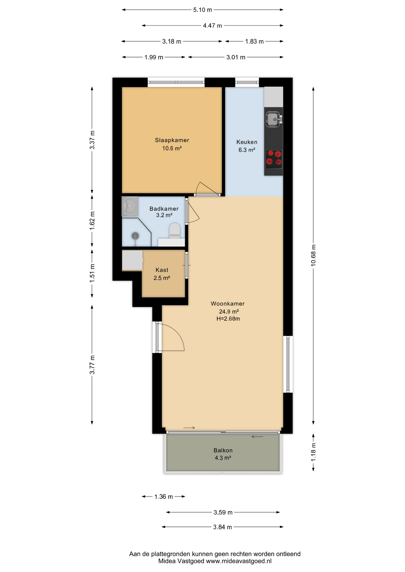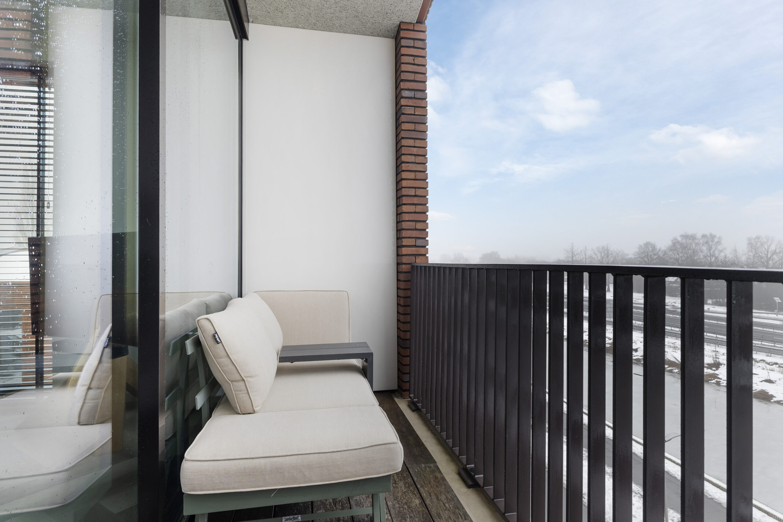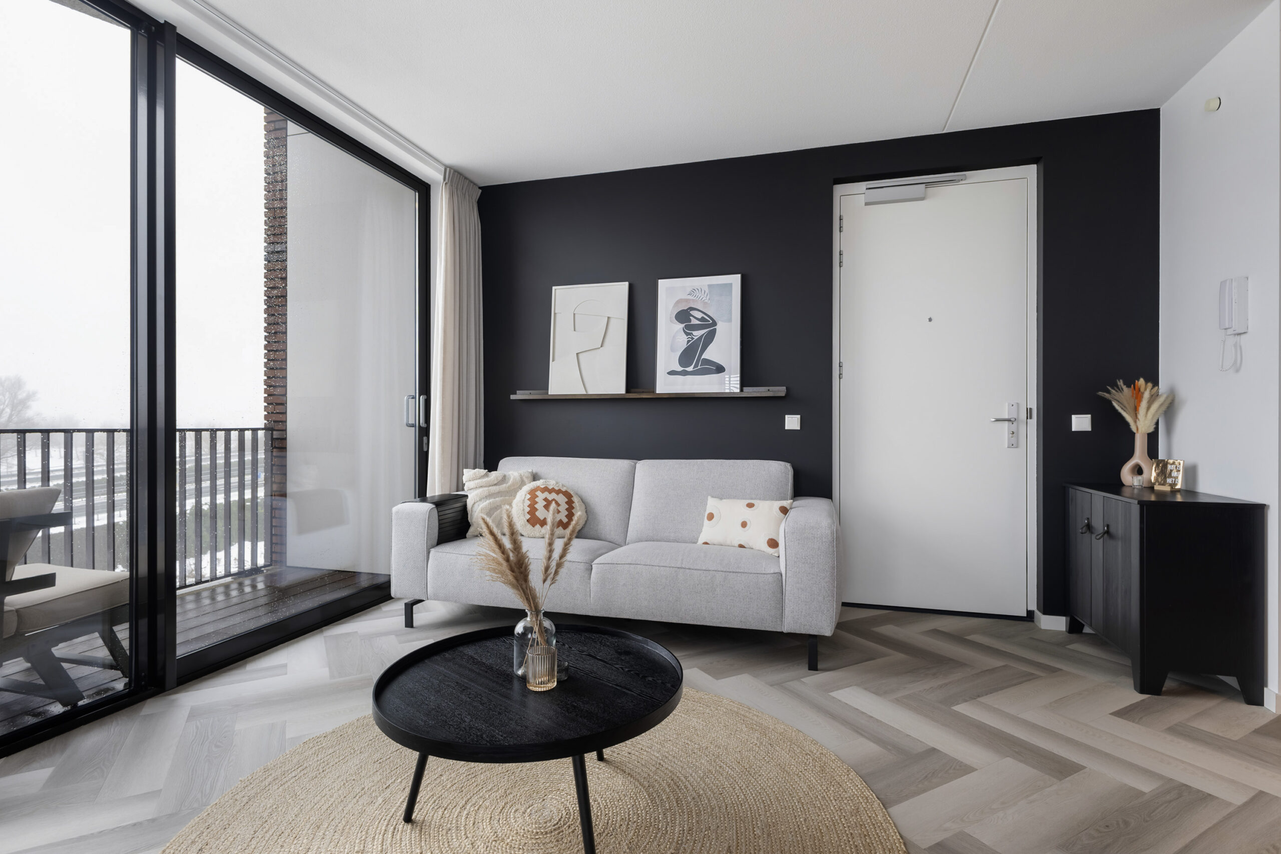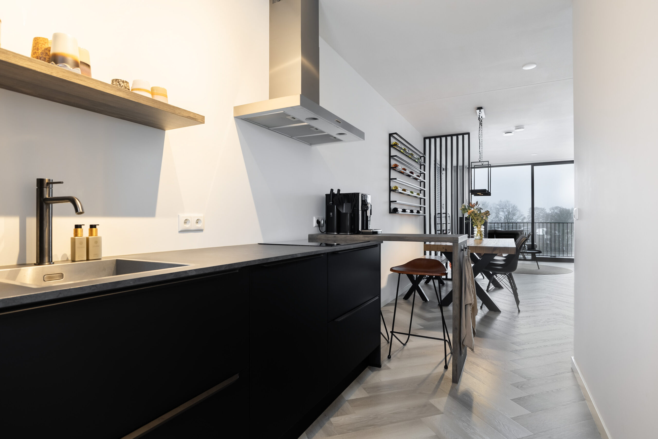 Het appartement beschikt over een sfeervolle woonkamer met een groot zijraam, waardoor er veel natuurlijk daglicht binnenvalt en een prachtig uitzicht wordt geboden. Via de schuifpui is het op het zuiden gelegen balkon bereikbaar. Daarnaast is er één slaapkamer, een moderne keuken en een moderne badkamer. Op de begane grond bevindt zich een gezamenlijke fietsenberging en parkeren is mogelijk op het achter het complex gelegen parkeerterrein.