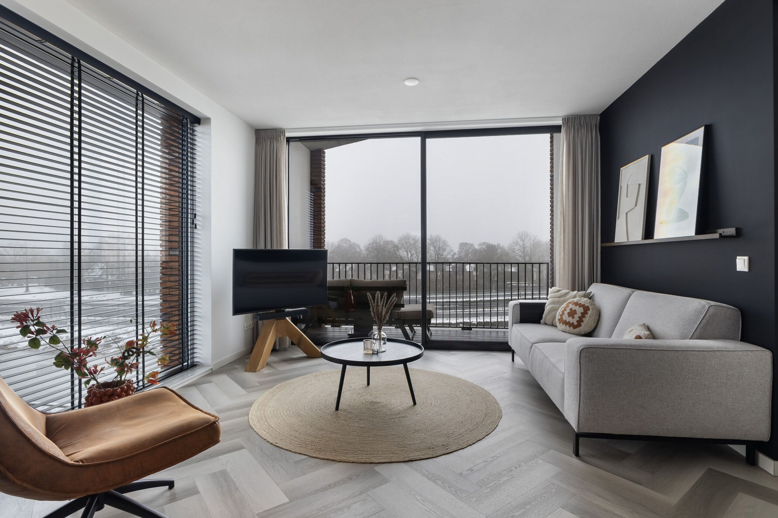– sfeervolle woonkamer met schuifpui naar het aan de voorzijde gelegen balkon gesitueerd op het zonnige zuiden